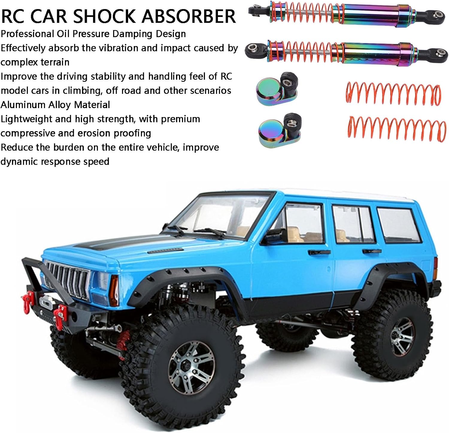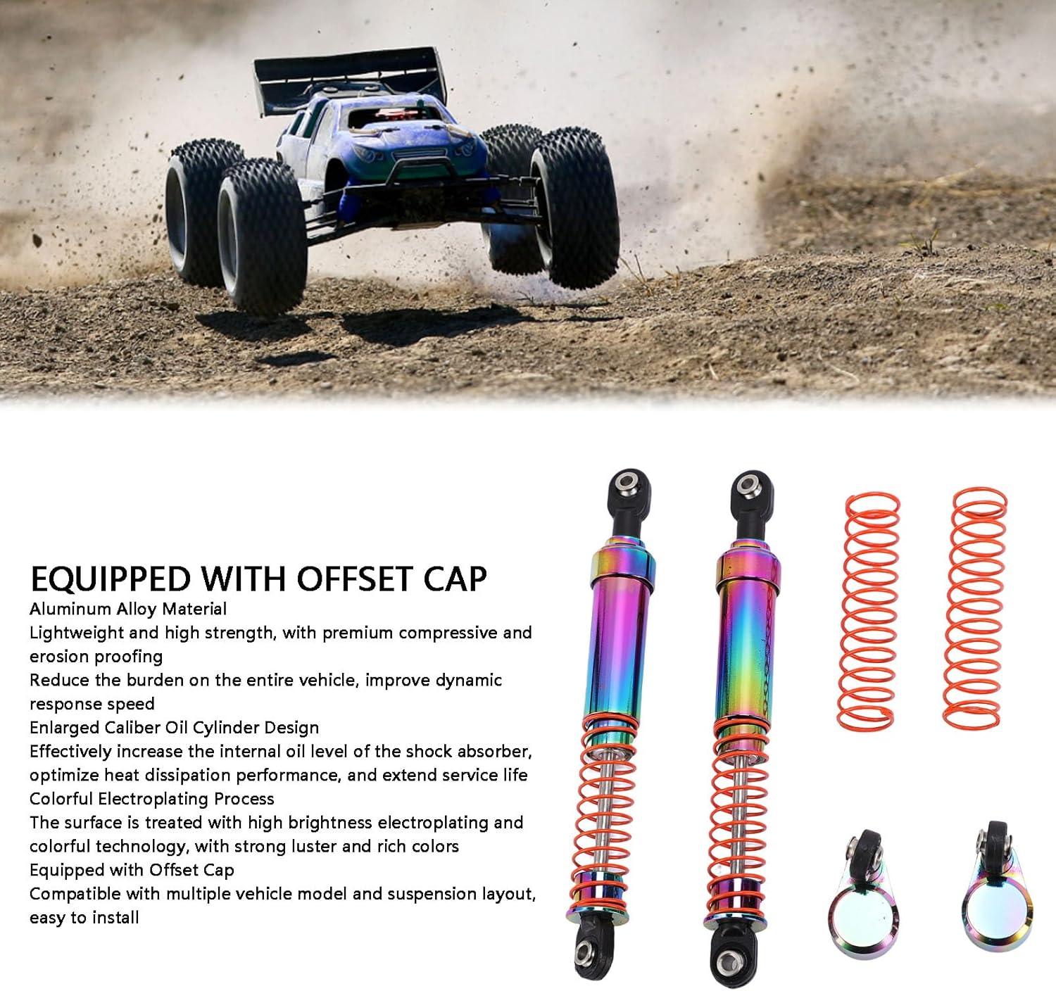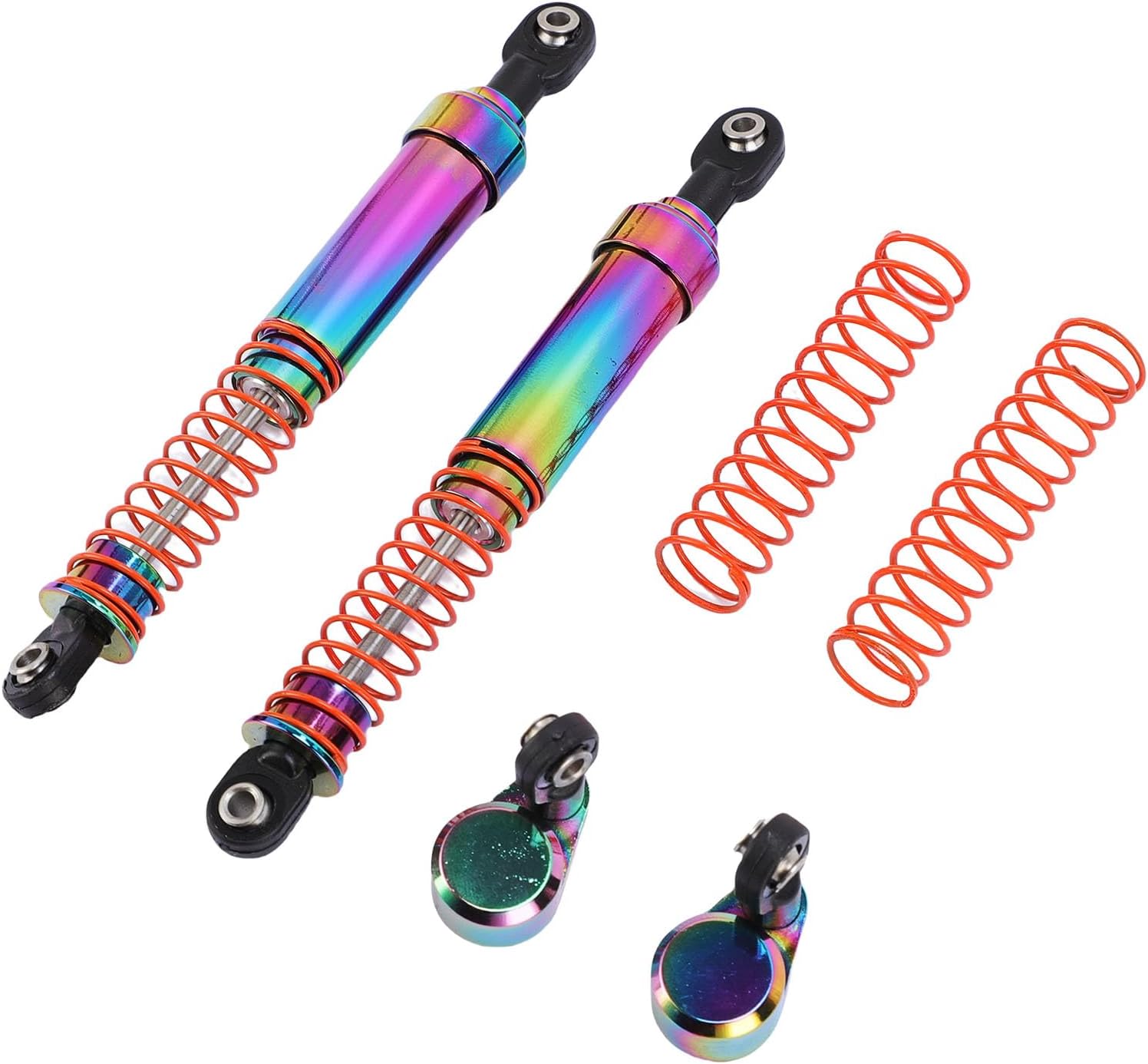 Materiale in lega di alluminio: questi ammortizzatori in lega di alluminio forniscono un'eccezionale resistenza alla compressione e anti-resistenza pur mantenendo un profilo leggero. Il peso ridotto migliora la risposta dinamica e la capacità del tuo veicolo RC. La struttura robusta garantisce una lunga durata, rendendolo ideale per intense avventure fuoristrada e scenari di corsa competitivi. Design migliorato: con un design del cilindro più grande che aumenta la capacità dell'olio per una dissipazione del calore superiore, questi ammortizzatori forniscono prestazioni costanti. Il design ottimizzato prolunga la durata del prodotto mantenendo un funzionamento stabile e affidabile durante l'uso prolungato ad alta intensità. Ideale per gli appassionati che richiedono grandi prestazioni dai propri veicoli RC in tutte le condizioni. Compatibilità versatile: progettato con un cappuccio sfalsato adattabile per una facile installazione su vari tipi di modelli e layout di molle. Il design intuitivo rende questi ammortizzatori eccellenti sia per i principianti che per gli appassionati RC esperti. Che tu stia aggiornando il tuo veicolo o costruendolo da zero, questi ammortizzatori offrono la straordinaria combinazione di prestazioni e fascino estetico. PRESTAZIONI PROFESSIONALI: sperimenta una manovrabilità e una stabilità senza pari con il nostro ammortizzatore idraulico ad alte prestazioni. Questi ammortizzatori sono progettati per assorbire gli urti intensi provenienti da terreni accidentati. L'avanzato sistema idraulico garantisce un funzionamento regolare anche in condizioni estreme, offrendoti il controllo completo sui movimenti del tuo veicolo. Estetica sorprendente: questi ammortizzatori hanno una finitura elettrica vibrante e lucida che aggiunge un tocco visivo audace al tuo modello RC. Il design colorato, combinato con l'esclusivo tappo offset, trasformerà l'aspetto del tuo veicolo e si distinguerà e si distinguerà su qualsiasi pista o terreno. Non solo funzionale ma anche un aggiornamento di stile per la tua preziosa collezione RC.