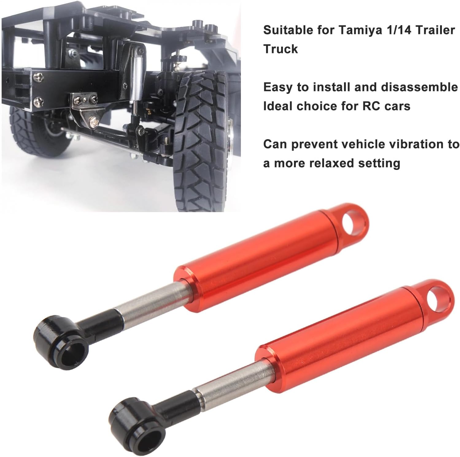 Aggiornamento ammortizzatore RC: migliora le prestazioni del tuo camion con rimorchio con questo ammortizzatore in lega di alluminio per smorzamento migliorato e una guida fuoristrada più Prestazioni fuoristrada migliorate: sperimenta una guida fuoristrada più e stabile con capacità di assorbimento degli urti migliorate. Porta il tuo camion con rimorchio al livello successivo di prestazioni e manovrabilità. Installazione semplice: l'installazione di questo ammortizzatore è gioco da ragazzi, grazie al suo design semplice e alla compatibilità con i camion con rimorchio. Aggiorna il tuo camion e rendilo pronto per partire in pochissimo tempo. Materiale in lega di alluminio: realizzato in robusta lega di alluminio, questo ammortizzatore è costruito per resistere ai rigori della guida di camion RC, garantendo prestazioni di lunga durata anche in condizioni difficili. Lunghezza ottimale: con una lunghezza di mm, questo ammortizzatore è progettato specificamente per camion con rimorchio in scala 1/14, fornendo una vestibilità e migliore controllo delle sospensioni.