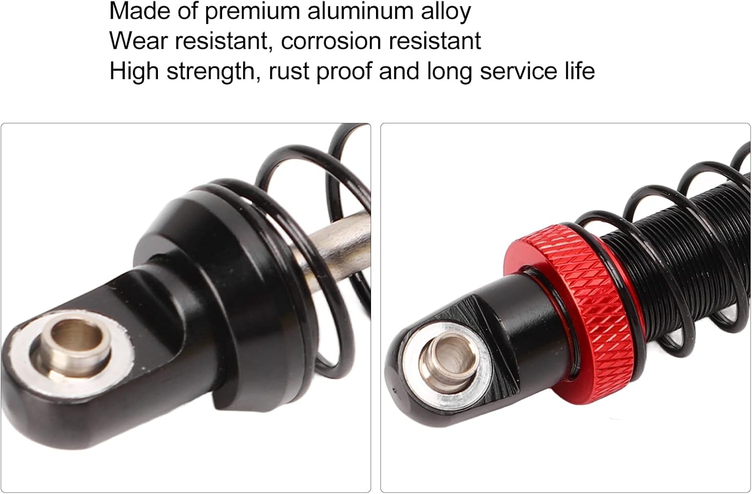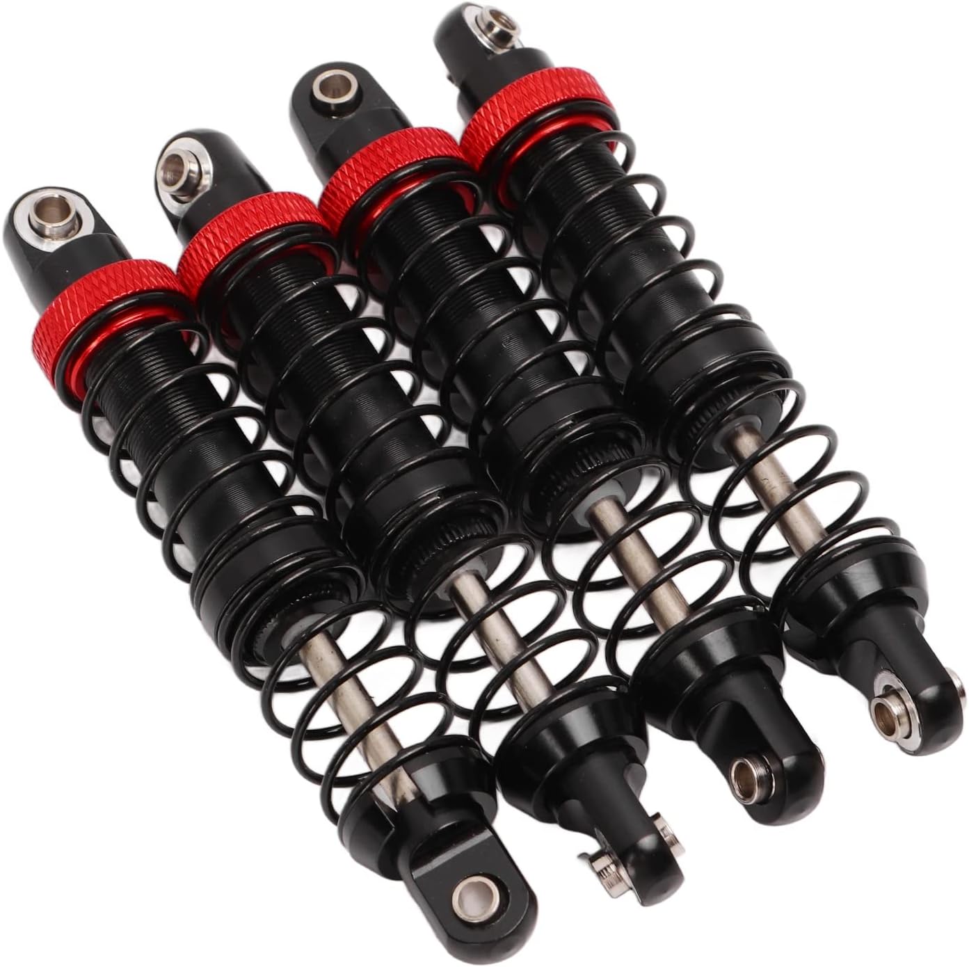 [Lega di alluminio resistente] Questi ammortizzatori RC premium sono realizzati in lega di alluminio di alta qualità per resistenza e durata eccezionali. Il materiale resistente alla corrosione resiste ai terreni accidentati pur mantenendo un battistrada leggero, garantendo che il tuo veicolo RC rimanga agile durante le intense avventure fuoristrada. [Design a doppia molla regolabile] Dotati di un innovativo sistema a doppia molla con regolazione del precarico filettato, questi ammortizzatori consentono una messa a punto precisa per le diverse condizioni di guida. I componenti realizzati con CNC forniscono prestazioni costanti sia che tu stia strisciando su rocce o su piste da corsa. [Assorbimento degli urti ottimizzato] Costruito con un sistema di smorzamento ad alta elasticità e riempito d'olio, riducendo efficacemente al minimo le vibrazioni e l'impatto. Il movimento fluido del pistone garantisce una manovrabilità stabile e una migliore trazione su superfici irregolari. [Controllo migliorato del veicolo] Questi ammortizzatori sono progettati specificamente per ridurre le vibrazioni del telaio e il rollio della carrozzeria, fornendo equilibrio e controllo superiori. Le proprietà di smorzamento progressivo aiutano a mantenere il contatto del pneumatico durante le manovre tecniche per una migliore aderenza. [Compatibilità universale] Perfetta per i famosi crawler RC in scala 1/10, inclusi i modelli Axial SCX10, CC01, Wraith RR10 e Traxxas. Il kit di installazione completo include 4 ammortizzatori, hardware di montaggio e anelli di gomma protettivi per una configurazione rapida.