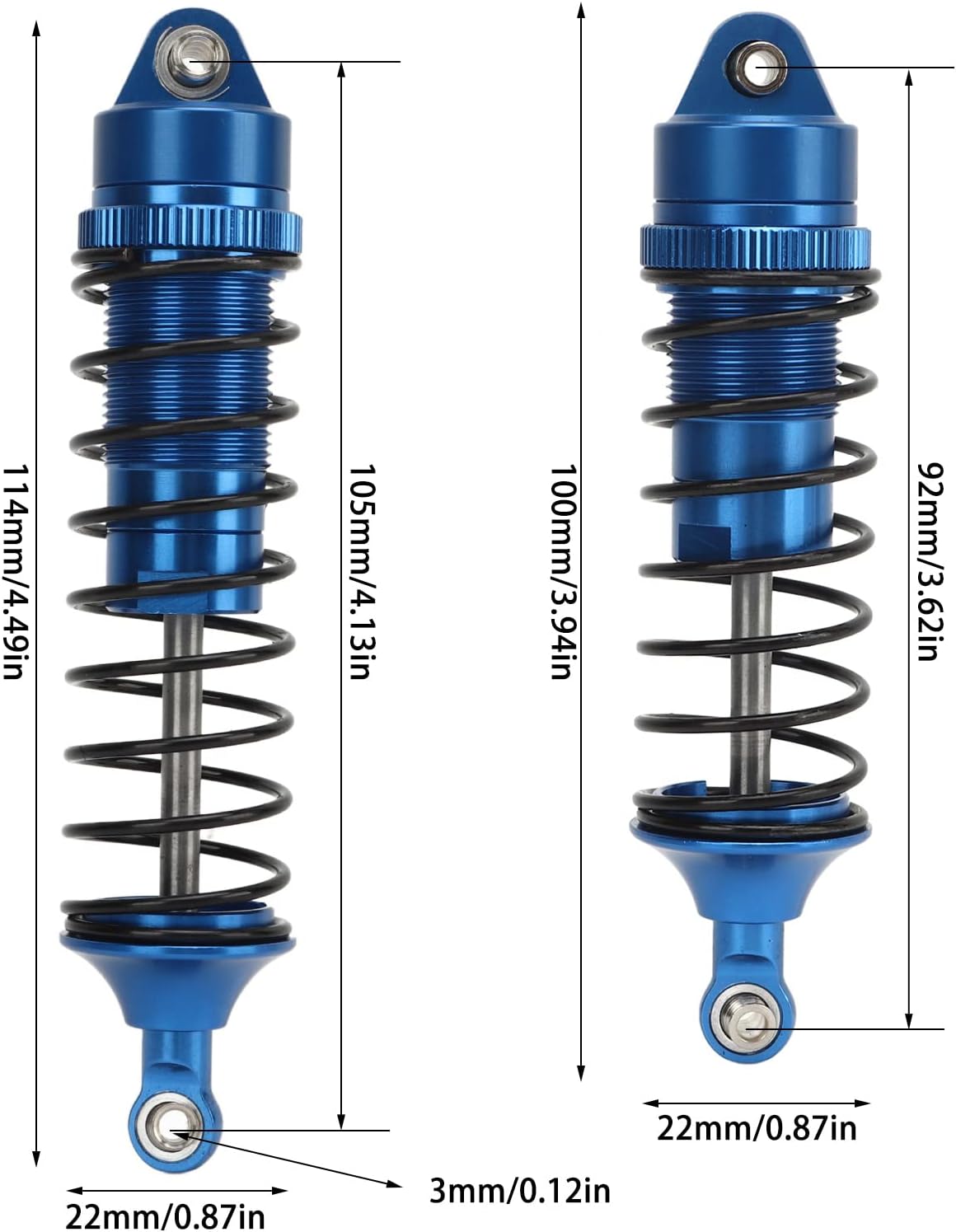 【Materiale di alta qualità】 La longevità di questo ammortizzatore, realizzato con materiale in lega di alluminio di alta qualità. La sua resistenza all'usura, l'elevata resistenza e le proprietà antiruggine assicurano che possa resistere ai rigori dell'intensa azione delle auto RC 【Esperienza di guida equilibrata】 Goditi una guida stabile ed equilibrata con l'aiuto di questi ammortizzatori. Riduce efficacemente le vibrazioni causate da condizioni stradali irregolari, garantendo che la tua auto RC rimanga stabile e da sobbalzi e scosse inutili 【Lavorato a CNC】 Dotato di tecnologia di lavorazione CNC avanzata, questo ammortizzatore presenta corpi filettati che consentono una regolazione dell'altezza rapida e semplice. Inoltre, la forza di precarico regolabile fornisce il massimo controllo sul sistema di sospensione. 【Ottima fattura】 Apprezzo l'eccezionale lavorazione di questi ammortizzatori, progettati per offrire un'esperienza di guida ben bilanciata. La sua capacità di ridurre le vibrazioni causate da superfici stradali accidentate migliora le prestazioni complessive 【Prestazioni elevate】 Porta la tua auto telecomandata a nuovi livelli di prestazioni con questo set di ammortizzatori anteriori e posteriori. Le molle altamente elastiche e gli efficaci effetti di smorzamento aumentano significativamente la stabilità, consentendo al tuo veicolo di rimanere in carreggiata anche sui terreni più difficili