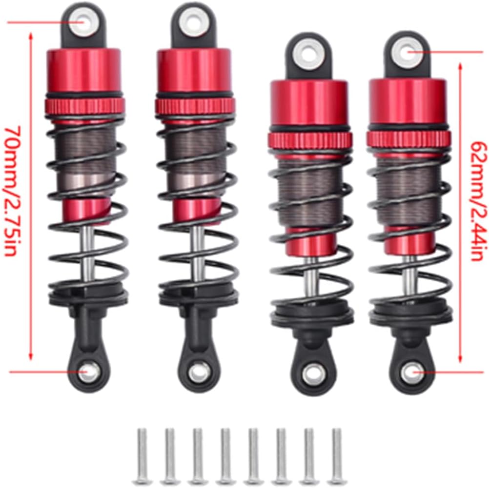 Questo kit ammortizzatori rc è progettato per MJX 1/14 14210 RC. Buona qualità, smorzamento, buona tenuta, nessuna perdita di olio. Realizzato in alluminio leggero + plastica + gomma, durevole, migliora le prestazioni complessive degli urti. Facile da installare e rimuovere, un ottimo pezzo di ricambio per quello vecchio o rotto. Ridurrà notevolmente le vibrazioni e migliorerà la stabilità mentre l'auto RC corre.