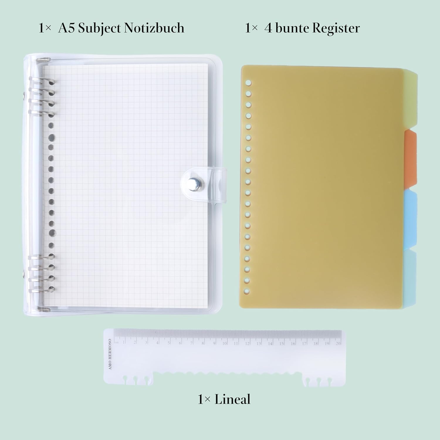 Der A5 Spiralblock ist ein praktisches Notizbuch mit einem karierten Design, ideal für Schule, Büro oder Studium. Mit einem transparenten Cover schützt es nicht nur die Seiten, sondern sorgt auch für einen modernen, übersichtlichen Look. Der 4-Subject Notebook bietet 4 Register-Trennblätter, die es ermöglichen, verschiedene Themen oder Fächer klar zu ordnen. Mit 120 Seiten bietet es ausreichend Platz für Notizen, Skizzen oder Aufgaben. Das Spiralringbuch ermöglicht ein einfaches Umblättern und eignet sich sowohl für Links- als auch Rechtshänder. Perfekt für diejenigen, die ihre Notizen gut organisiert und mobil halten möchten.