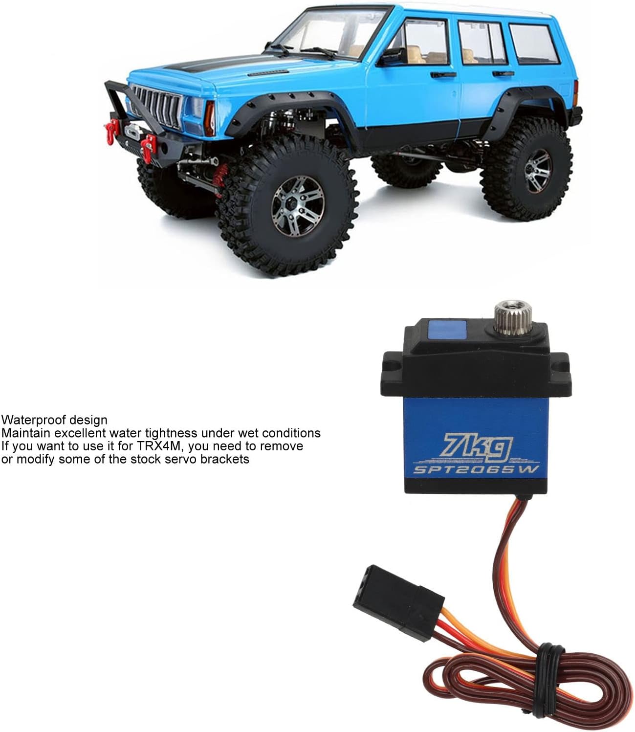 Promemoria sull'uso: se gli utenti desiderano utilizzare questo servo digitale per TRX4M, devono rimuovere o modificare alcune delle staffe del servo di serie. Materiale affidabile: questo prodotto è realizzato in resistente lega di alluminio e materiale plastico, che non è facile da indossare e può essere utilizzato a lungo. Applicabile a: l'articolo è finemente lavorato e facile da installare; Il suo efficiente design del circuito analogico è adatto per aerei RC, elicotteri, automobili e robot. Prestazioni del prodotto: questo prodotto è dotato di ingranaggi in acciaio inossidabile, che riducono il rumore e offrono una migliore stabilità durante l'uso. Design impermeabile: questo servosterzo a ingranaggi utilizza design impermeabile, che consente al prodotto di mantenere un'eccellente tenuta all'acqua in ambienti umidi.