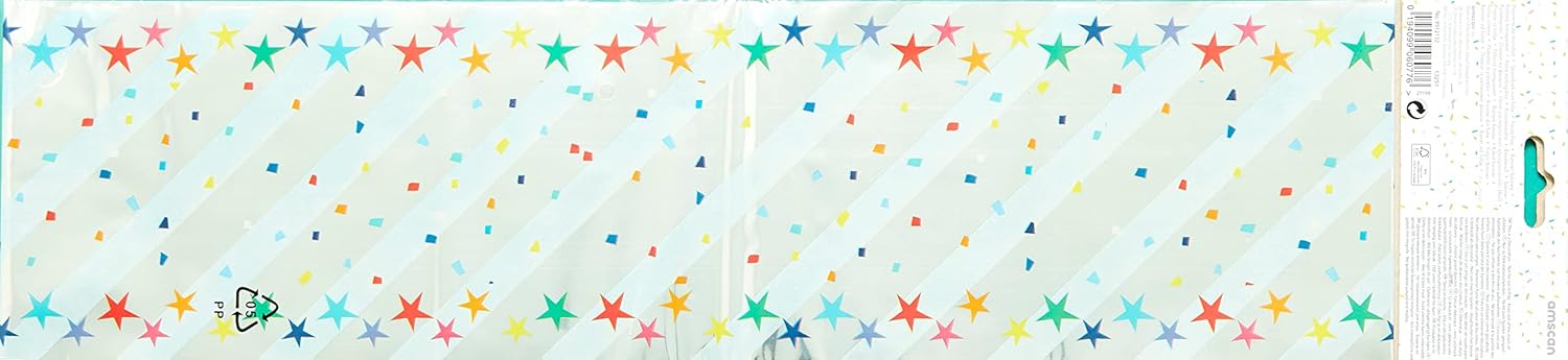 Uno striscione argentato metallizzato con una stampa di stelle colorate e la scritta "Buona fortuna!" fornito. Messaggio nei colori dell'arcobaleno luminosi. Lunghezza: 2,7 m Ideale per pareti, finestre o porte. Materiale: lamina