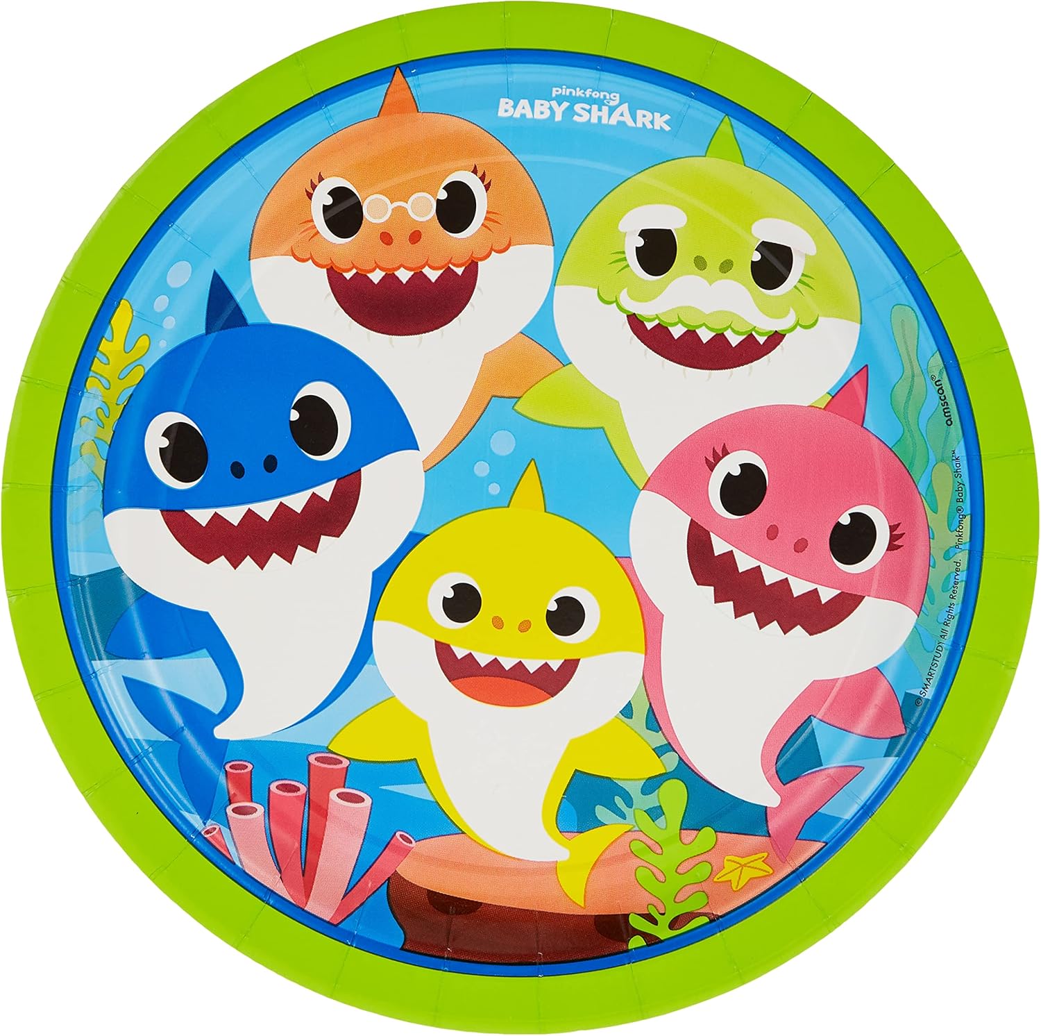 Contenuto della confezione: 8 piatti di cartone per bambini di squalo da 23 cm. Caratteristiche del prodotto: Baby Shark, Daddy Shark, Mommy Shark, Grandma Shark, e Grandpa Shark sott'acqua circondato da coralli e rocce. Perfetto per feste di compleanno, attività scolastiche e altri eventi. Gli articoli sono realizzati in carta resistente di alta qualità. I piatti di cartone hanno una superficie resistente all'olio per aiutare a mantenere il cibo sporco.