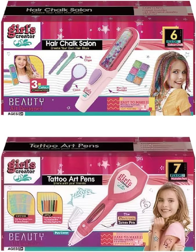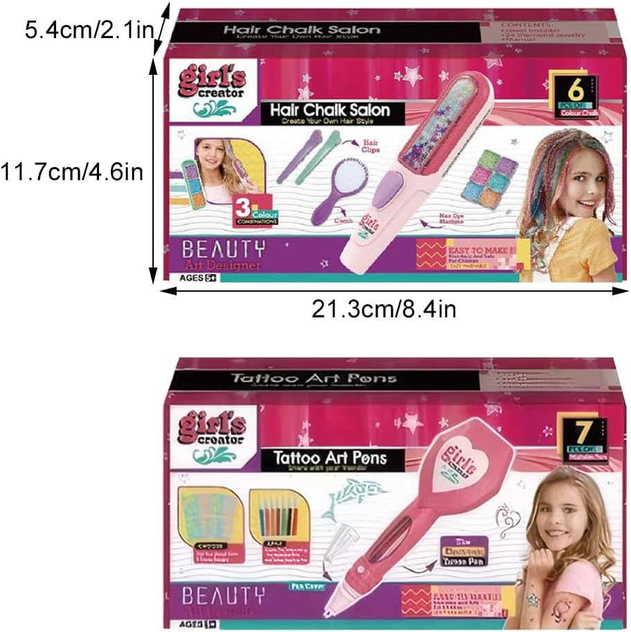 Colorato: i nostri accessori fai da te per la tintura dei capelli consentono ai bambini di scatenare la loro creatività aggiungendo accessori colorati ai loro capelli o tatuandosi le braccia Divertimento riutilizzabile: gli accessori nel nostro kit per lo styling dei capelli sono riutilizzabili, rendendo facile per le ragazze creare accessori per capelli fai da te in diversi colori e stili per ogni occasione Facile da usare: basta premere leggermente i capelli per lasciare il colore, rendendolo strumento per i bambini per il loro stile Regalo: questo set di giocattoli per ragazze è un regalo per qualsiasi ragazza che ama sperimentare con i propri capelli e accessori Possibilità infinite: lascia correre l'immaginazione di tua figlia con i nostri bastoncini per lo styling e la tintura dei capelli per bambini, offrendo ore di divertimento e creatività