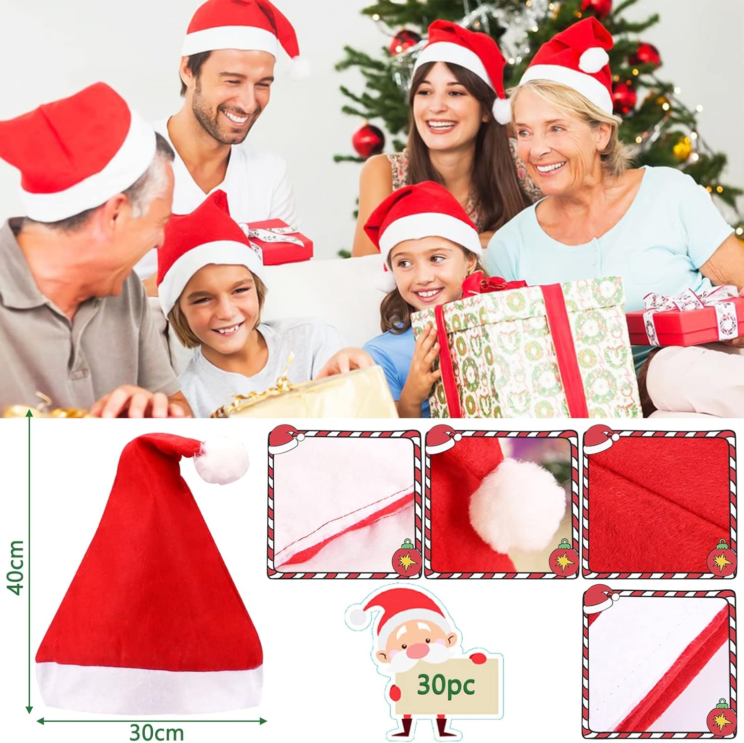 ➤➤ Il cappello di Natale è una decorazione natalizia essenziale. Porta una bella atmosfera a Natale e ti fa sentire caldo e felice nel nuovo anno! ! 🎅🎄 Informazioni sul prodotto: Marca : Amzeeniu Materiale : Tessuto confortevole Colore : Bianco e rosso Dimensioni : 28.5 cm x 40 cm (11.8 x 11.22 pollici) 🎅🎄 Il pacchetto include: 20 x Santa Hat Christmas 🎅🎄Caratteristica di cappelli di Babbo Natale per adulti: ➤➤Materiale elastico: Il cappello natalizio è realizzato con tessuti comodi e di alta qualità, Comodo da indossare. ➤➤Taglia perfetta: Cappello di Natale adatto adulti, adolescenti ecc. ➤➤Decorazione perfetta: Questi cappelli sono decorazioni essenziali per il Natale, ideale per feste di Natale, cosplay, promozione delle vendite, spettacoli scolastici, cerimonia annuale, attività della comunità, feste, ecc. ➤➤Regalo di Natale: Puoi regalare cappelli di Natale come un piccolo regalo ai tuoi amici, familiari, colleghi o clienti!