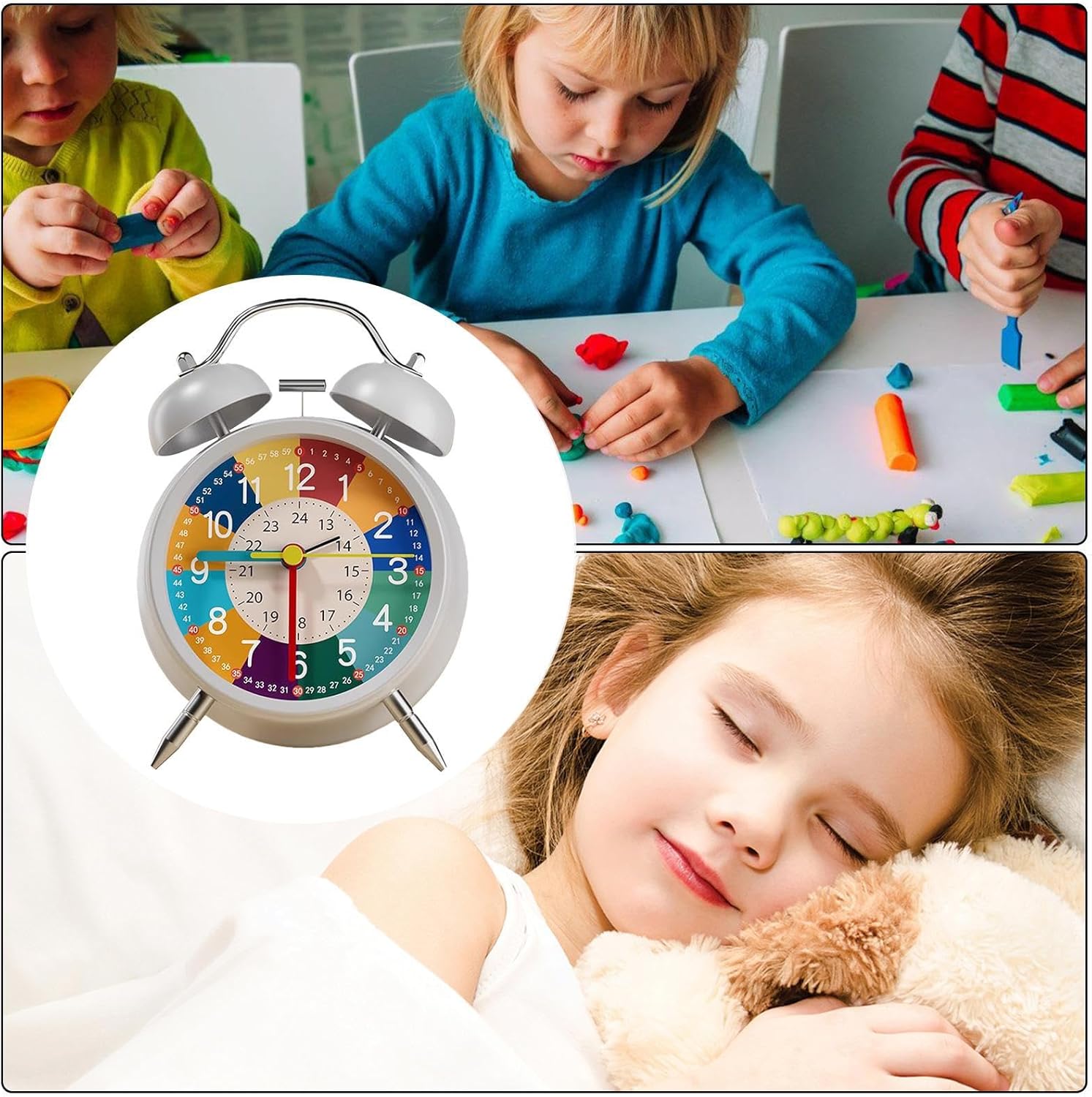 Esperienza di risveglio migliorata: la nostra sveglia analogica per bambini offre un suono surround 9D morbido ma potente che consente un risveglio confortevole. La funzione di sveglia del suono surround fornisce un modo delicato ed efficace per iniziare la giornata di tuo figlio, assicurando che si sentano energici e motivati Gestione efficiente 'energia: con energia a bassa frequenza, questa sveglia analogica garantisce un efficiente consumo di alimentazione e una durata della batteria di lunga durata, fornendo un basso consumo di energia e una ricarica rapida per un inizio affidabile alla tua giornata Uso sicuro e a lungo termine: costruito per durare, questa sveglia analogica per bambini vanta vibranti vernici ecologiche e una robusta telaio in lega che è resistente ai , garantendo l'uso e la sicurezza di lunga durata per il bambino Cronometraggio preciso avanzato: dotato di un chipset intelligente all'avanguardia, la nostra sveglia analogica per bambini vanta un movimento silenzioso silenzioso che garantisce un sonno indisturbato e un cronometraggio accurato Orologio educativo dei giovani studenti: sviluppare l'indipendenza dei bambini con il design coinvolgente e i colori della nostra sveglia analogica, migliorando le loro capacità di apprendimento del