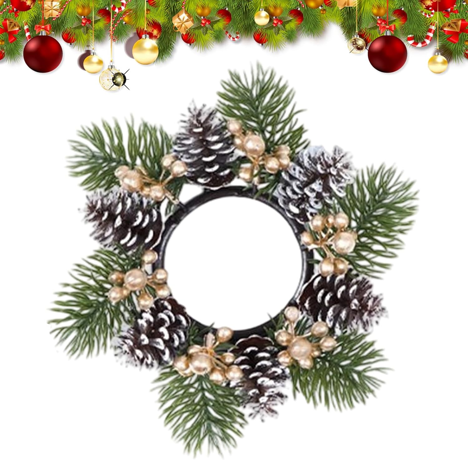 Curve naturali preformate: queste ghirlande di candele con curve naturali preformate garantiscono un'esposizione elegante e senza sforzo e mantengono un aspetto ben curato a lungo. La forma robusta elimina la necessità di rimodellamenti frequenti e migliora la tua decorazione stagionale o festiva con facilità e stile in qualsiasi ambiente. Ideali per decorazioni natalizie e allestimenti festivi, le ghirlande di candele offrono stabilità dimensionale affidabile e aspetto attraente per ogni tipo di casa. Premuroso: queste ghirlande di candele natalizie sono progettate come un regalo premuroso ideale che combina armoniosamente eleganza e festività per aiutarti a condividere il calore natalizio con amici e familiari migliorando al contempo le loro decorazioni stagionali. Colpiscono per il loro design accattivante e fungono da oggetto decorativo versatile che aggiunge un tocco festoso a qualsiasi casa e promuove ricordi duraturi. Perfetto per il periodo natalizio come creatore di atmosfera festosa: gli anelli per candele natalizie diffondono la gioia natalizia con motivi dettagliati di abeti e bacche in un aspetto realistico. Queste decorazioni festive trasformano il soggiorno o la sala da pranzo in un caldo rifugio per le vacanze ed esaltano lo spirito natalizio. Come decorazione natalizia creano un ambiente invitante per momenti indimenticabili durante le vacanze e si armonizzano perfettamente con l'arredamento esistente. Uso decorativo universale: questa ghirlanda di candele presenta una versatile adattabilità allo spazio ed è perfetta per infissi e ringhiere con flessibilità interna ed esterna. Incoraggia configurazioni fantasiose da appendere o da sdraio ed è eccellente per accattivanti stili di ghirlande in aree come patio, caminetto o riunioni festive per arricchire il fascino estetico. Crea un'atmosfera calda: questa ghirlanda di candele integra elementi sempreverdi con bacche per creare un'atmosfera calda. Ideale per illuminare gli interni invernali aggiungendo benedizioni festive simboliche. Ciò aumenta lo spirito festivo in ogni casa e crea un ambiente invitante per le celebrazioni natalizie e i momenti intimi con la famiglia.