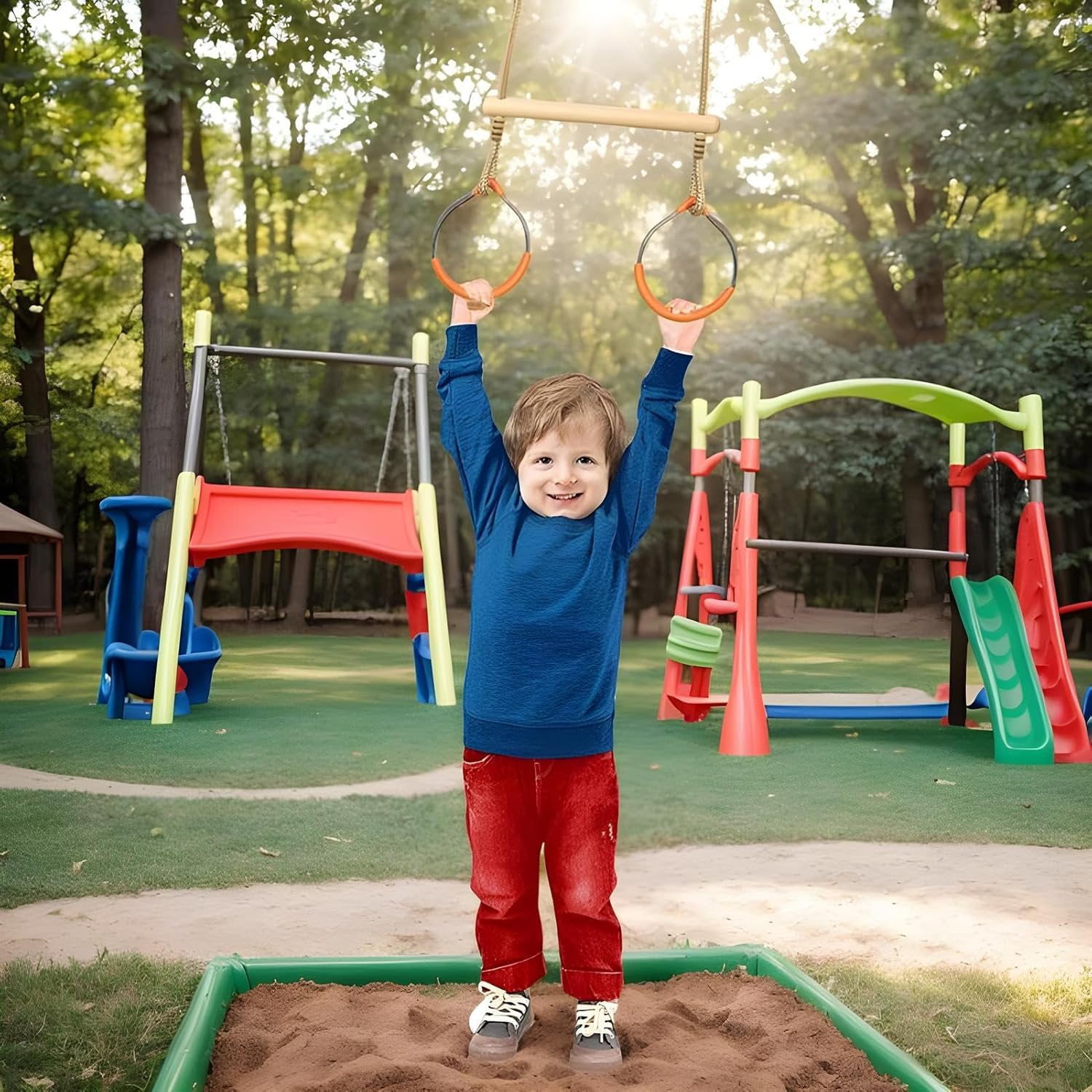 Posizionamento Flessibile: Combinazione unica di installazione rispettosa della corteccia, fissaggio non invasivo e montaggio modulare regolabile per setup facile, elimina completamente forature o attrezzi particolari Struttura : Realizzato con struttura ad alta resistenza, supporta in sicurezza il peso dei bambini e si installa facilmente su tronchi o porte grazie ai materiali resistenti all'usura, garantendo stabilità e prestazioni ottimali per uso esterno continuativo Presa Oscillante Dinamica: Progettati per sviluppare la superiore, integrano miglioramento controllo corporeo e allenamento coordinazione del core in formato giocoso, con doppia modalità di presa oscillante per routine di esercizio variate. Esperienza Sensoriale: Progettati per stimolare l'equilibrio, gli anelli altalenanti promuovono lo sviluppo motorio e la consapevolezza spaziale durante le transizioni attivo-passive, intensificando il divertimento esplorativo e le interazioni sensoriali Compatibilità Estesa: Ingegnerizzato per alberi multi-, supporta la creazione di aree gioco-campeggio in giardino con struttura generica adattabile a più scenari, offrendo possibilità uniche per esperienze di gioco personalizzabili.