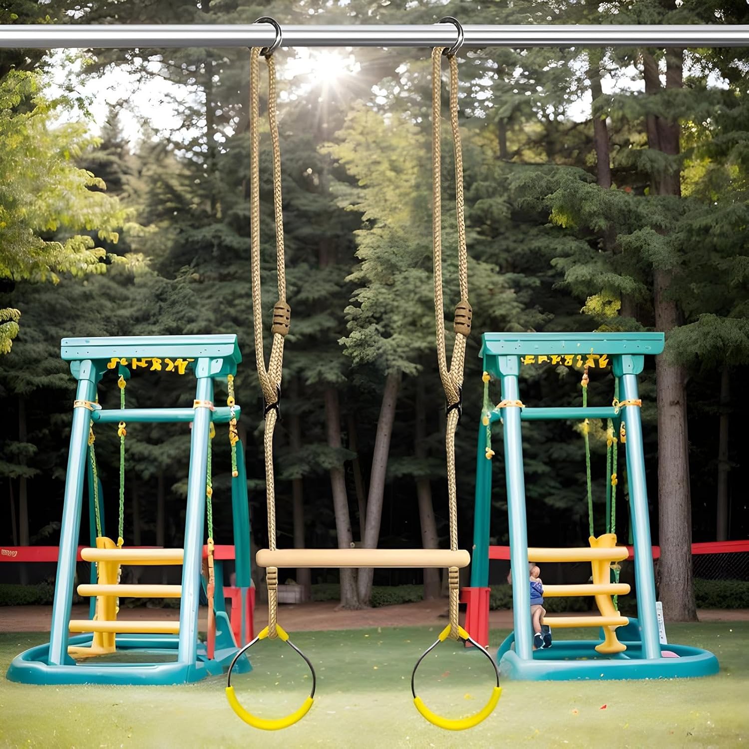 Facile da Installare: Caratterizzato da installazione rispettosa della corteccia con fissaggio non invasivo, montaggio modulare regolabile per assemblaggio rapido, nessuna perforazione o attrezzo richiesto per esperienza utente senza difficoltà Qualità Longeva: Struttura rinta offre stabilità duratura per uso intensivo, supporta efficacemente il peso infantile e fissa saldamente a tronchi/porte grazie alla costruzione anti-usura, performante in tutte le condizioni atmosferiche Concentrazione Coordinazione Core: Gli anelli stimolano l'attività fisica giocosa, unendo miglioramento del controllo corporeo, allenamento coordinazione del core e sviluppo superiore in una configurazione dinamica a doppia presa oscillante per stili di vita attivi. Abilità Motorie: Sviluppo efficace delle capacità motorie grazie agli anelli altalenanti progettati per stimolare l'equilibrio, promuovendo la consapevolezza spaziale durante attività sensoriali divertenti con impegno attivo e passivo adattabile Compatibilità Estesa: Ingegnerizzato per alberi multi-, supporta la creazione di aree gioco-campeggio in giardino con struttura generica adattabile a più scenari, offrendo possibilità uniche per esperienze di gioco personalizzabili.
