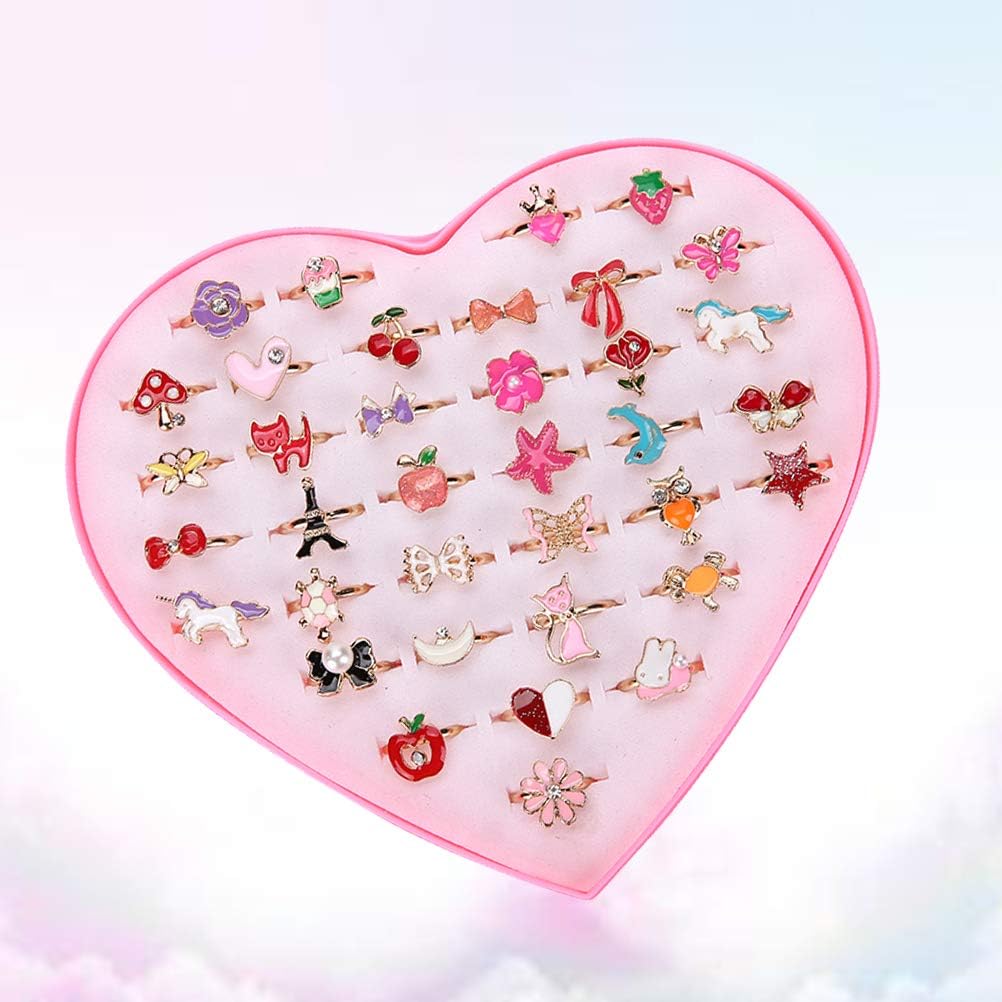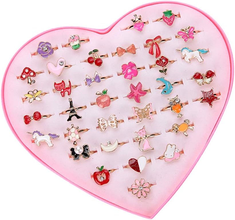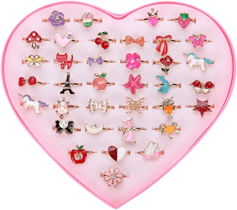 Descrizione Design di 36 anelli in lega che renderanno i tuoi bambini ipnotizzati. Cuore, farfalla, fiore e molti altri motivi colorati con diamante, molto bello. Può essere utilizzato come riempitivo per sacchetti di compleanno, riempitivi per pignatta, giochi di finzione per tea party, carnevale, scatola dei tesori e molto altro ancora. Caratteristiche: - Colore: come da immagine. - Dimensioni: circa 1,5 cm (diametro). - Materiale: lega. - È un ottimo regalo per la tua principessa. - Accessori perfetti per vestire la tua ragazza per feste e altre occasioni fantasiose. - Abbiamo confezionato questi anelli da ragazza con scatole regalo a forma di cuore, è un buon regalo per la tua principessa. - Questi anelli sono estremamente regolabili in base allo spessore del dito del bambino. - Regali per te stesso, per amici e familiari per dare loro una piccola sorpresa. - Suggerimento: a causa degli effetti della luce, della luminosità del monitor, della misurazione manuale e di altri fattori, potrebbero esserci alcune lievi differenze di colore e dimensioni tra la foto e l'articolo reale. Grazie per la comprensione. Grazie! La confezione include: 36 anelli