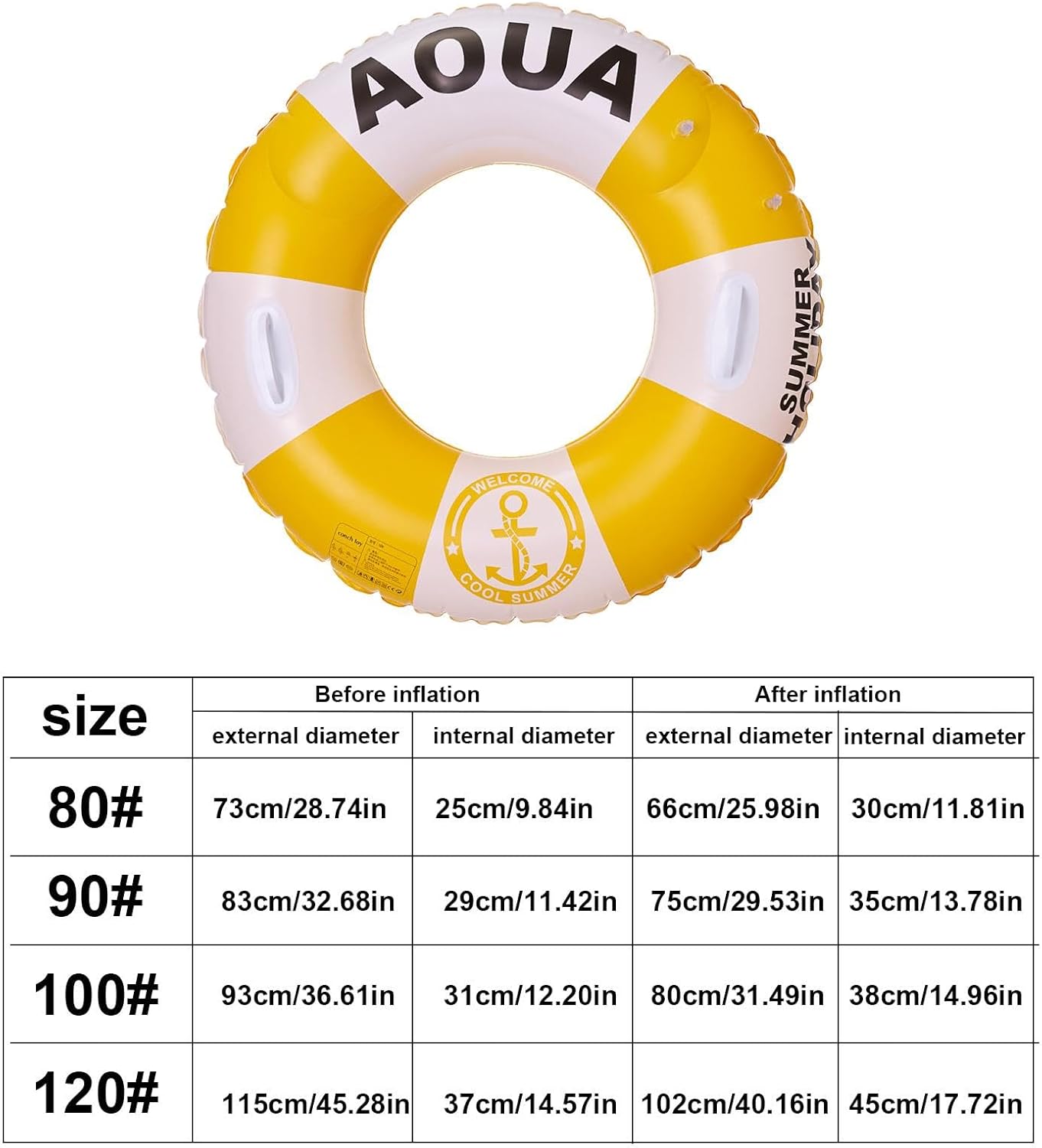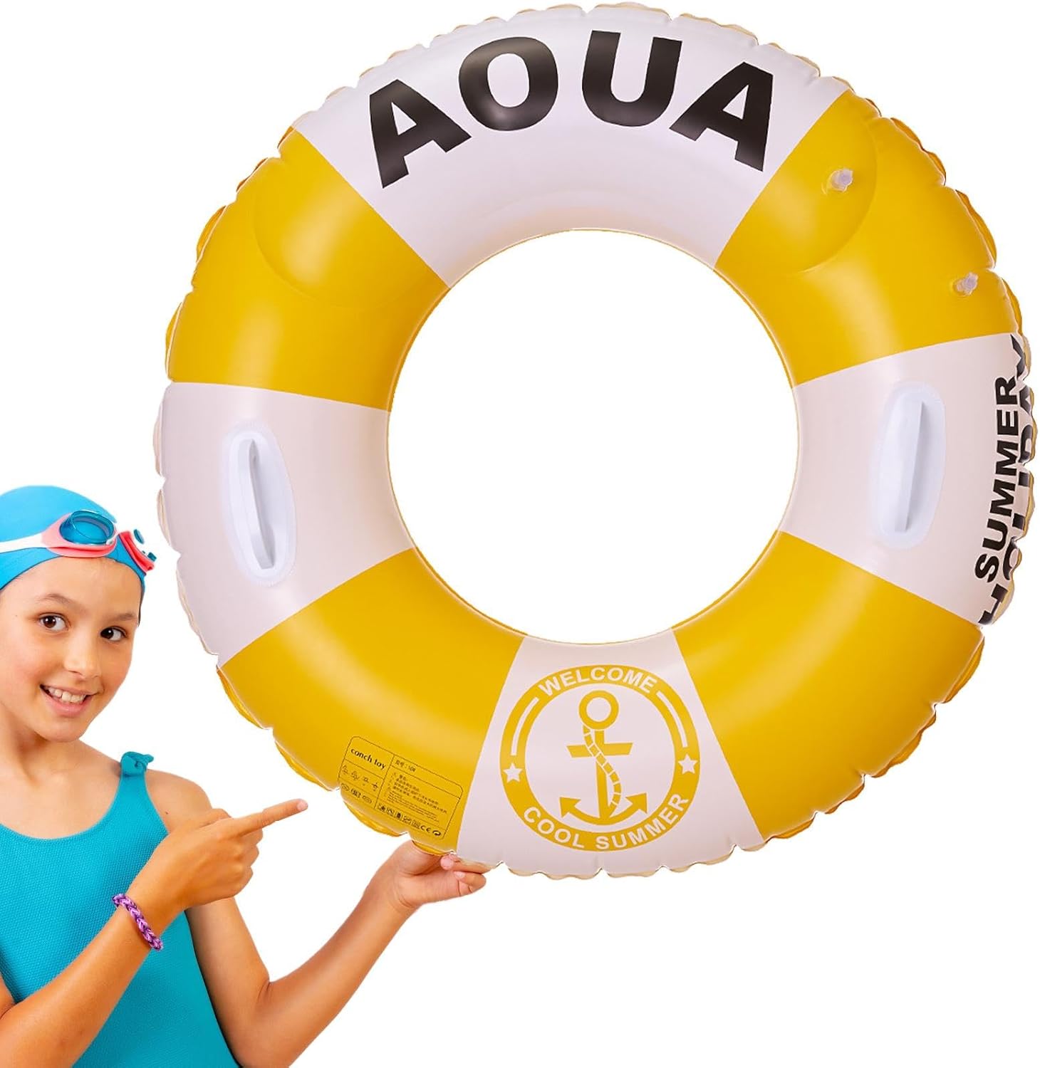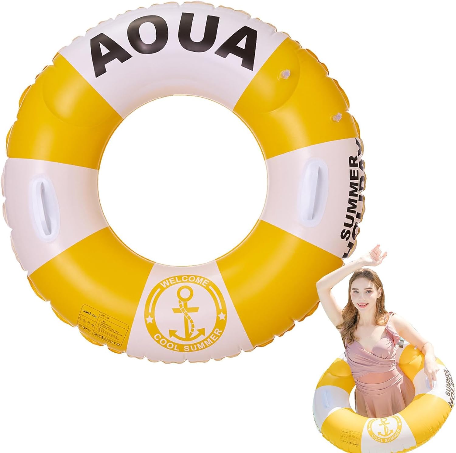 Eccezionale festa estiva necessaria: realizzati con materiali durevoli in PVC, i nostri anelli per piscina mostrano un'eccellente resistenza schiacciamento e strappo. Sono ideali per garantire una stagione estiva divertente e piacevole, con una robusta galleggiabilità in acqua che intratterrà i tuoi ospiti per ore. Esperienza in piscina migliorata: goditi un divertimento in piscina elevato con i nostri anelli da piscina, caratterizzati da un design in stile britannico che aggiunge un tocco di eleganza alle tue attività estive. Il colore brillante e liscio lo rende facile da vedere in acqua, garantendo la massima sicurezza mentre ci si diverte! Ritenzione 'aria efficiente: gonfiare fino al 90% è sufficiente e riduce la probabilità di perdite d'aria. La valvola a cerniera integrata e la valvola robusta rafforzano la sicurezza 'acqua, attenzione contro il gonfiaggio eccessivo per una galleggiabilità di lunga durata. Facile da riporre: porta il tuo relax in movimento con i nostri anelli da piscina facili da trasportare e riporre. Il suo materiale leggero lo rende perfetto per l'uso come anello da nuoto durante il divertimento a bordo piscina. Soddisfazione del cliente: ci impegniamo a garantire che tu sia soddisfatto del tuo acquisto. In caso di problemi o domande, il nostro team di assistenza clienti è qui per assisterti tempestivamente. Goditi esperienze di nuoto senza preoccupazioni con il nostro anello da nuoto.