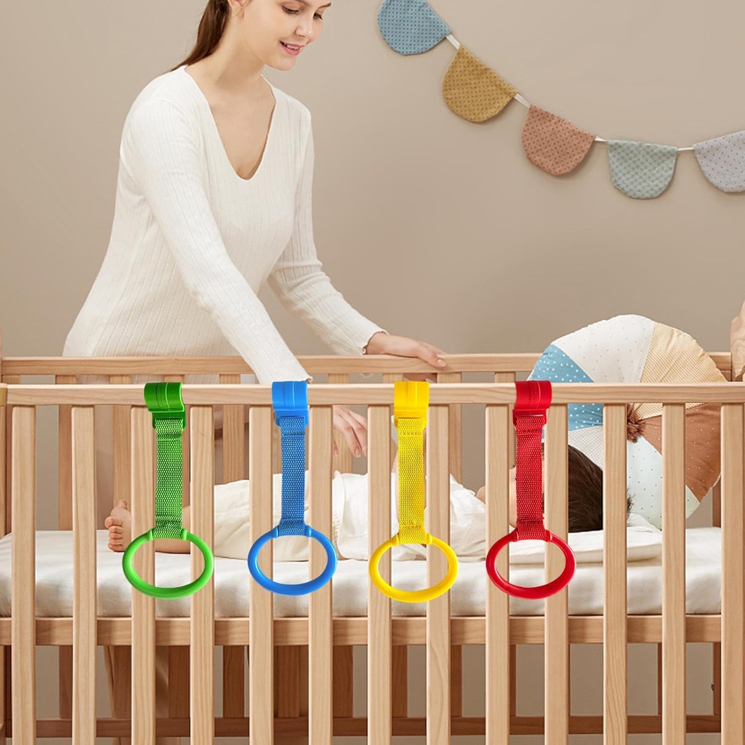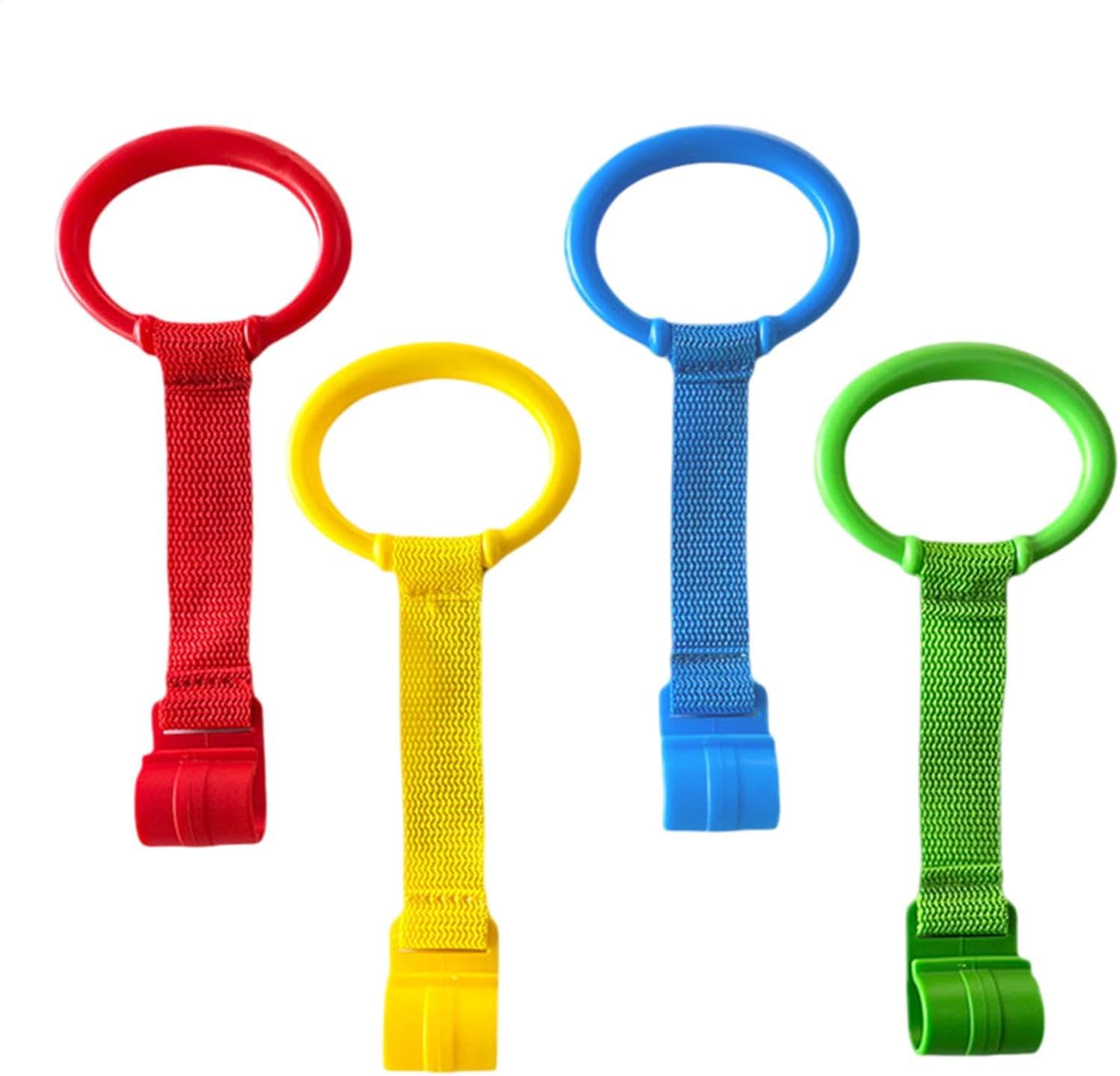 Set di anelli pull-up completi: con colori vivaci, questo set di 4 anelli pull-up per bambini attira immediatamente l'attenzione del bambino, garantendo una vita duratura che non svanirà facilmente Realizzato per ultimo: realizzato in materiale robusto usando una cintura di nylon combinata con anello ABS, questi robusti anelli di pull-up assicurano che un'esperienza sicura e inodore che non danneggerà la pelle del bambino e non sono facili da danneggiare Accordere con l'ergonomia: il design ergonomico del braccialetto rotondo garantisce una presa facile, una tenuta comoda e una dimensione adeguata per i bambini di età compresa tra 8 e 10 mesi per esercitarsi in modo indipendente le abilità di camminata usando l'anello pull facilmente: attaccare facilmente questi anelli pull su per bambini ai presepi senza alcun strumento, garantendo una rapida installazione e rimozione per i genitori impegnati in cerca di comodità e tranquillità Presenti ideali: questi anelli favoriscono lo sviluppo del coordinamento degli occhi della mano, della percezione visiva e della flessibilità dei tuoi figli, rendendoli un regalo ideale per le pietre miliari