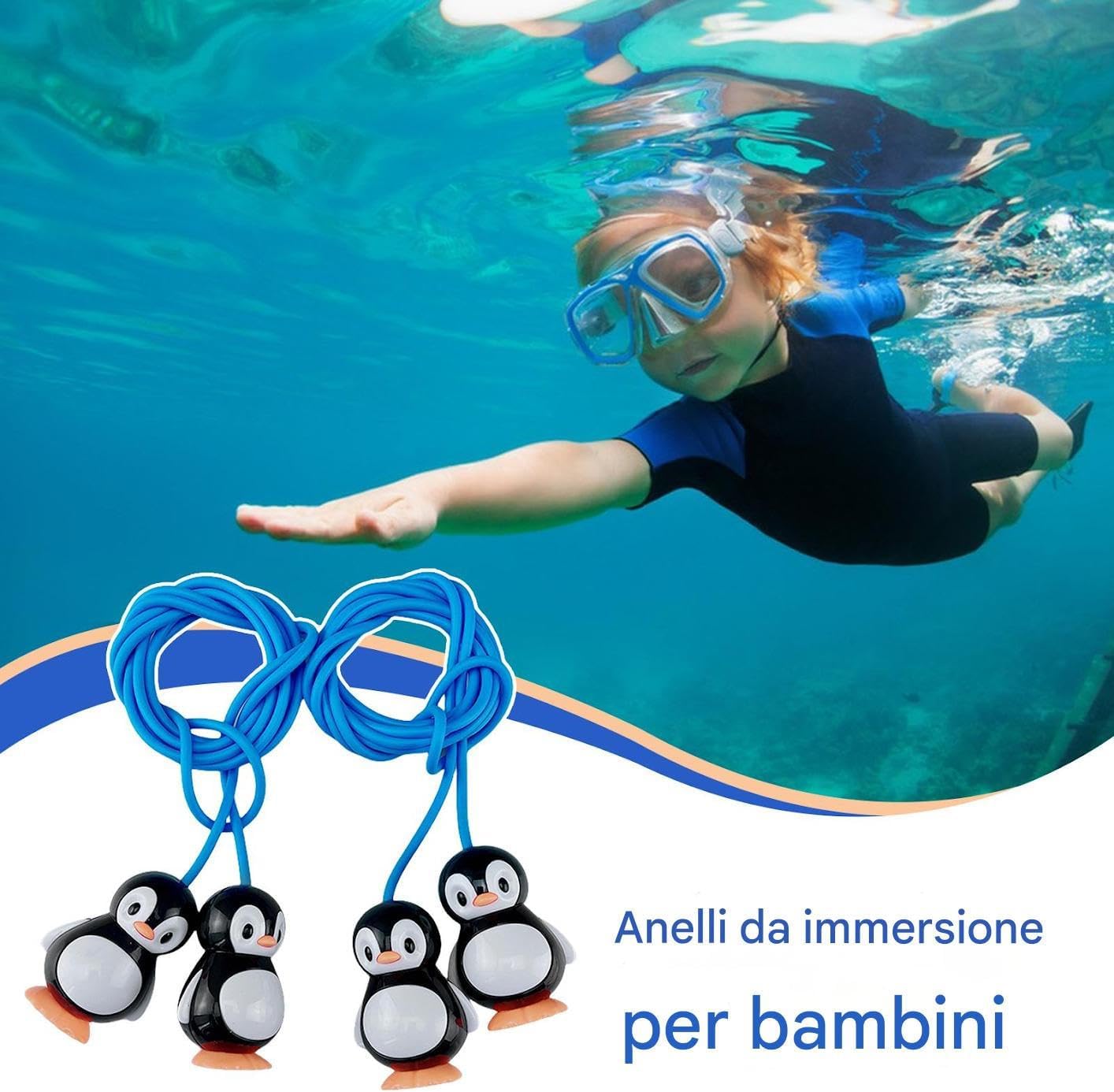 Sviluppo Abilità Nuoto: Perfetti per padroneggiare abilità acquatiche fondamentali consentono una pratica di immersione efficace affinando la capacità di trattenere il respiro sott'acqua durante le attività in piscina. Conforto Adeguato all'Età: Larghezza moderata e lunghezza perfettamente adatta assicurano una regolazione flessibile fornendo al contempo spazio sufficiente per l'attraversamento, ideale per bambini di età diverse per godersi gli anelli da immersione in piscina in modo sicuro e comodo. Durata Acquatica: Stabilità di presa eccezionale grazie a texture speciali combinate con PVC inodore che resiste all'invecchiamento, mantenendo flessibilità in condizioni di uso ripetuto Gioco Creativo: Forma allegra e colori brillanti consentono di disporre gli anelli come porta subacquea, permettendo a più bambini di giocare insieme e offrendo un modo piacevole per interazioni familiari in piscina Gioco interattivo: Stimola l'interesse dei bambini nell'esplorazione subacquea con la forma del cartoon, colori brillanti ad alta saturazione e riconoscibilità visiva ottimizzata che attira naturalmente la loro attenzione durante le attività in piscina