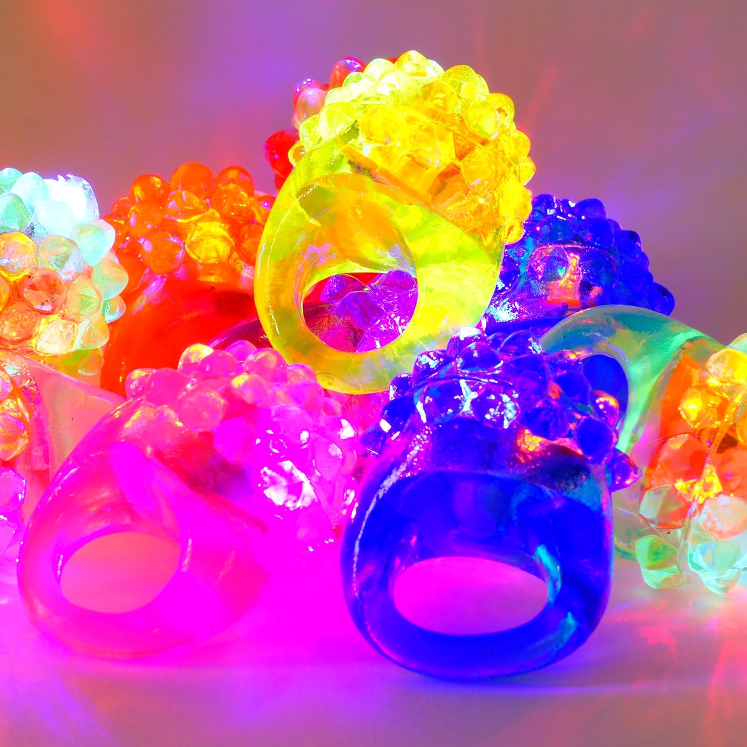 Anello per feste, mix di 8 colori o aspetto diamante, anelli per feste a LED lampeggianti e luminosi, edizione Maiorca, tempo di illuminazione 60-90 minuti.