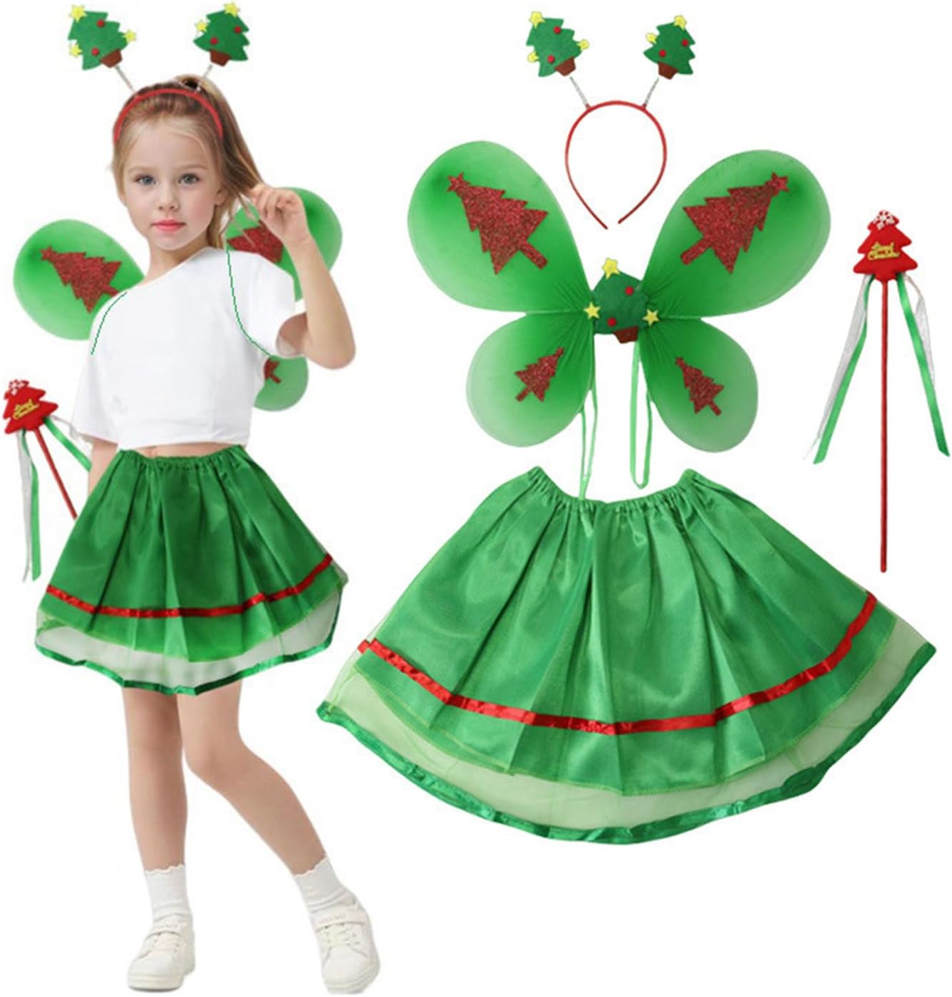 Angell - Bacchetta magica con ali di farfalla, tutù per danza, festa di compleanno, costume da principessa, Halloween, cosplay Caratteristiche: Costume da principessa con ali di farfalla, fascia elastica con ali d'angelo, bacchetta magica da fata, gonna a tutù, fascia per capelli, cinturino elastico permette il set migliore per bambini e ragazze Materiale: realizzato in poliestere, confortevole sulla pelle, morbido, leggero da indossare, facile da spostare, cosplay e danza, comodo da indossare. La confezione include: ala di fata, bacchetta magica, fascia natalizia, gonna tutus. Ampiamente applicazioni per festival all'aperto, feste a tema fiabe, costume di Halloween, oggetti di scena fotografici, regali di compleanno per ragazze, spettacoli di danza, cosplay da principessa delle fate, abbigliamento quotidiano, spettacoli scolastici. Regalo meraviglioso, sorpreso per bambine per feste di compleanno, Halloween o altre feste speciali, principessa da sogno. Specifiche tecniche: Materiale: poliestere. La confezione include: 1 bacchetta magica. 1 x ala di farfalle da fata. 1 fascia natalizia. 1 gonna a tutù. Nota: Considerare un margine di errore di 1-2 cm dovuto alla misurazione manuale. A causa delle differenze tra i diversi monitor, l'immagine potrebbe non rispecchiare il colore reale dell'articolo.