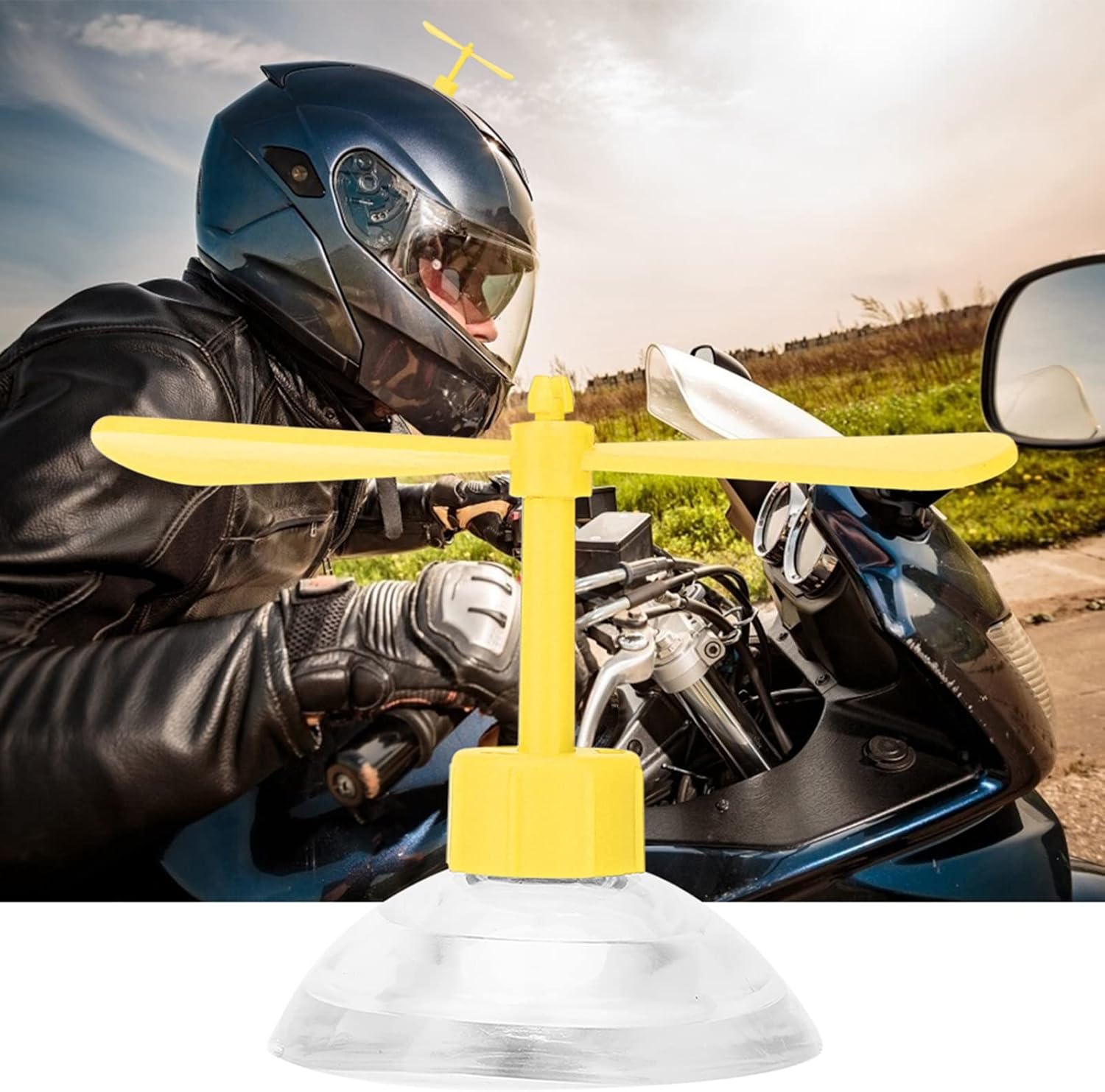ANGGREK Elica per Casco Moto, Giocattolo per Casco Decorazione Spinner con Forti Ventose per Qualsiasi Superficie (GIALLO)