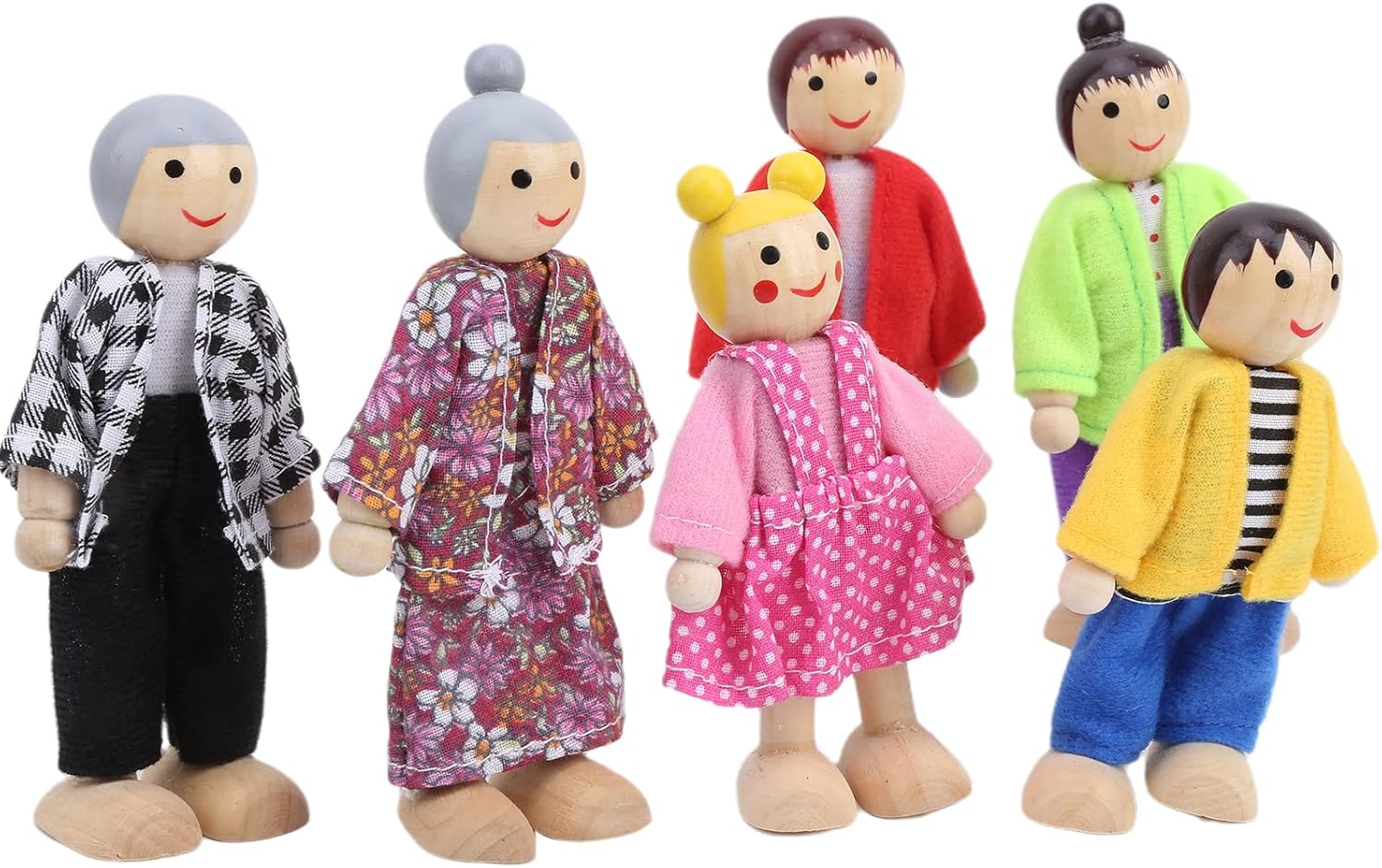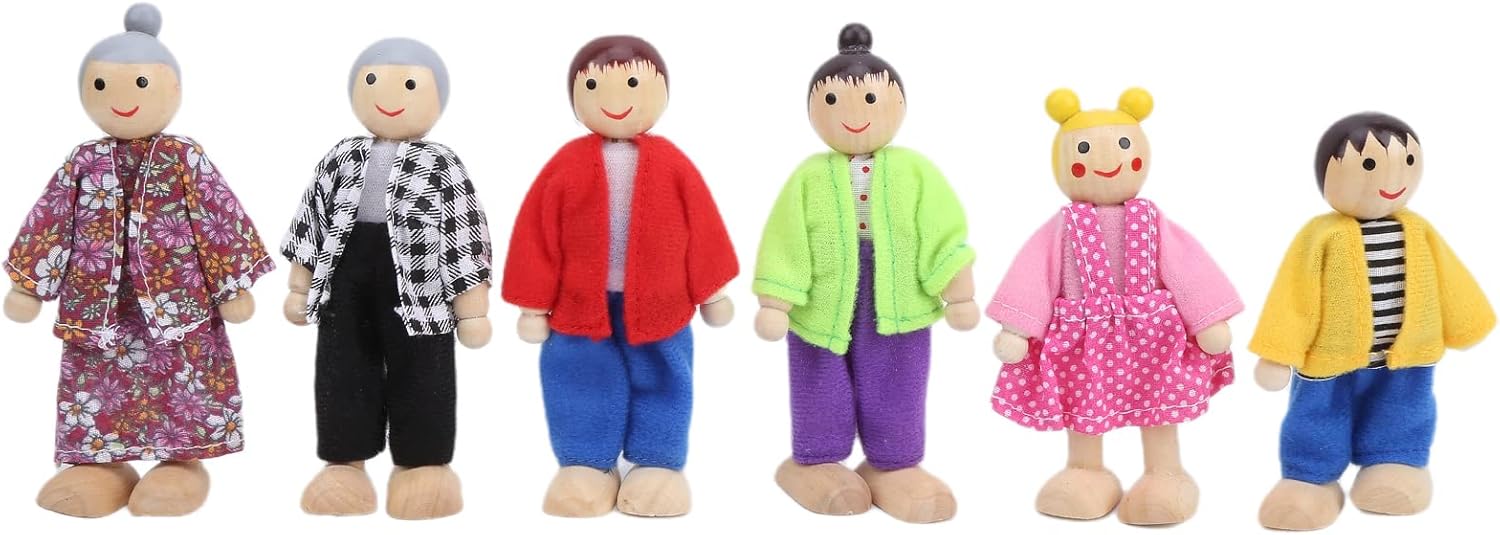 [Inspirare la creatività] Spinti l'immaginazione dei bambini e la creatività con il corpo morbido e gli arti flessibili. Infondere la casa delle bambole con la vita e le ambientazioni vibranti per il gioco. [Divertimento di ruolo] incoraggiare il gioco fantasioso e lo storytelling con questo set di giocattoli. Esplora diversi scenari e osserva la creatività. [Costruzione in legno di qualità] Figure familiari robuste e sicure della famiglia delle bambole realizzate in legno con dettagli non tossici. [Set di famiglia completo] Include nonno, nonna, mamma, papà, sorella, fratello e figure per bambini per un gioco realistico di famiglia. ideale per la giornata per bambini, compleanni, Natale. [Varietà di stili] Scegli tra quattro distinti stili di figura familiari. Personalizza le dinamiche familiari per soddisfare le preferenze e la narrazione di tuo figlio.