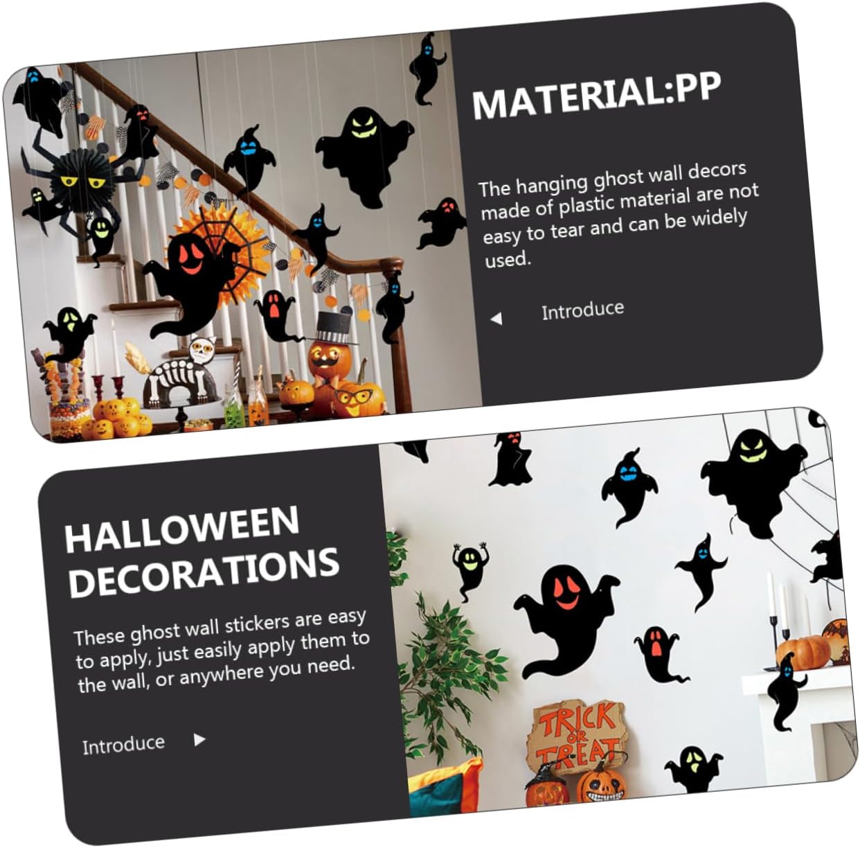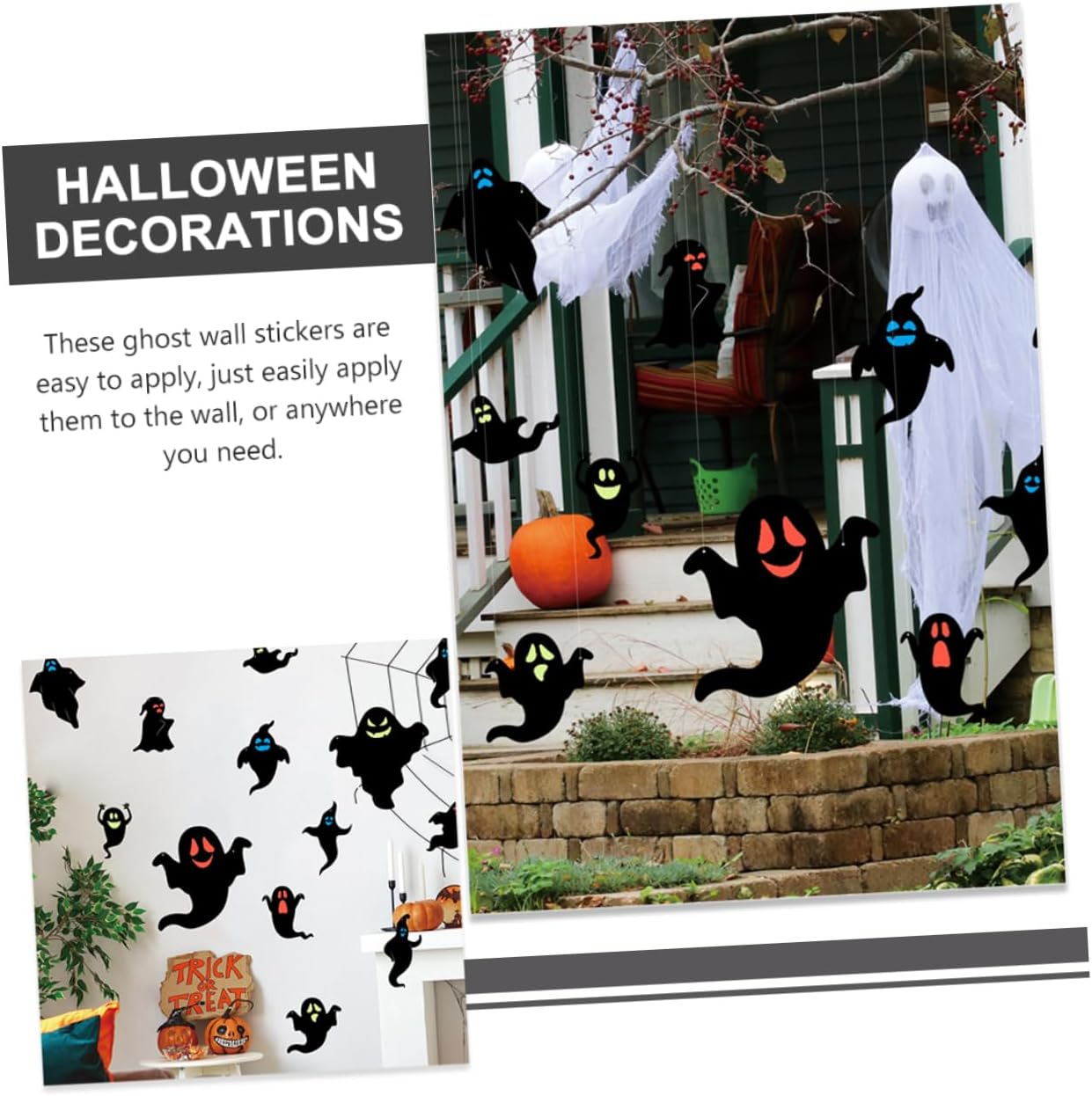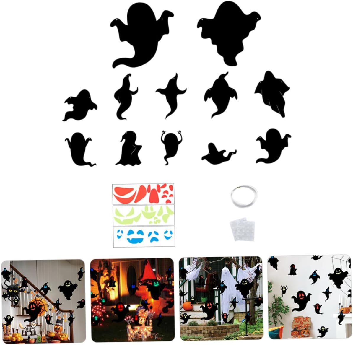 Adesivi fantasma di Halloween: facili da usare e possono essere attaccati o appesi al muro, saranno una meravigliosa decorazione per la decorazione della tua casa e la festa di Halloween, adesivi murali Fantasma decorativo per Halloween: gli adesivi murali a tema fantasma sono fatti di materiali sicuri, puoi attaccarli facilmente al muro e non cadranno facilmente Pendenti fantasma decorano facilmente sul muro, fantasmi come decorazione di Halloween Decorazioni murali fantasma: riceverai abbastanza decorazioni murali fantasma per soddisfare le tue esigenze di utilizzo e decorazione, adesivi decorativi fantasma decorazione murale: queste decorazioni fantasma possono creare un'atmosfera terrificante ed emozionante da regalare per te una fantastica festa a tema Halloween, decorazioni fantasma Halloween