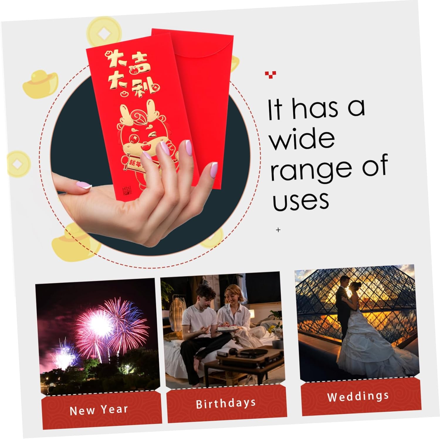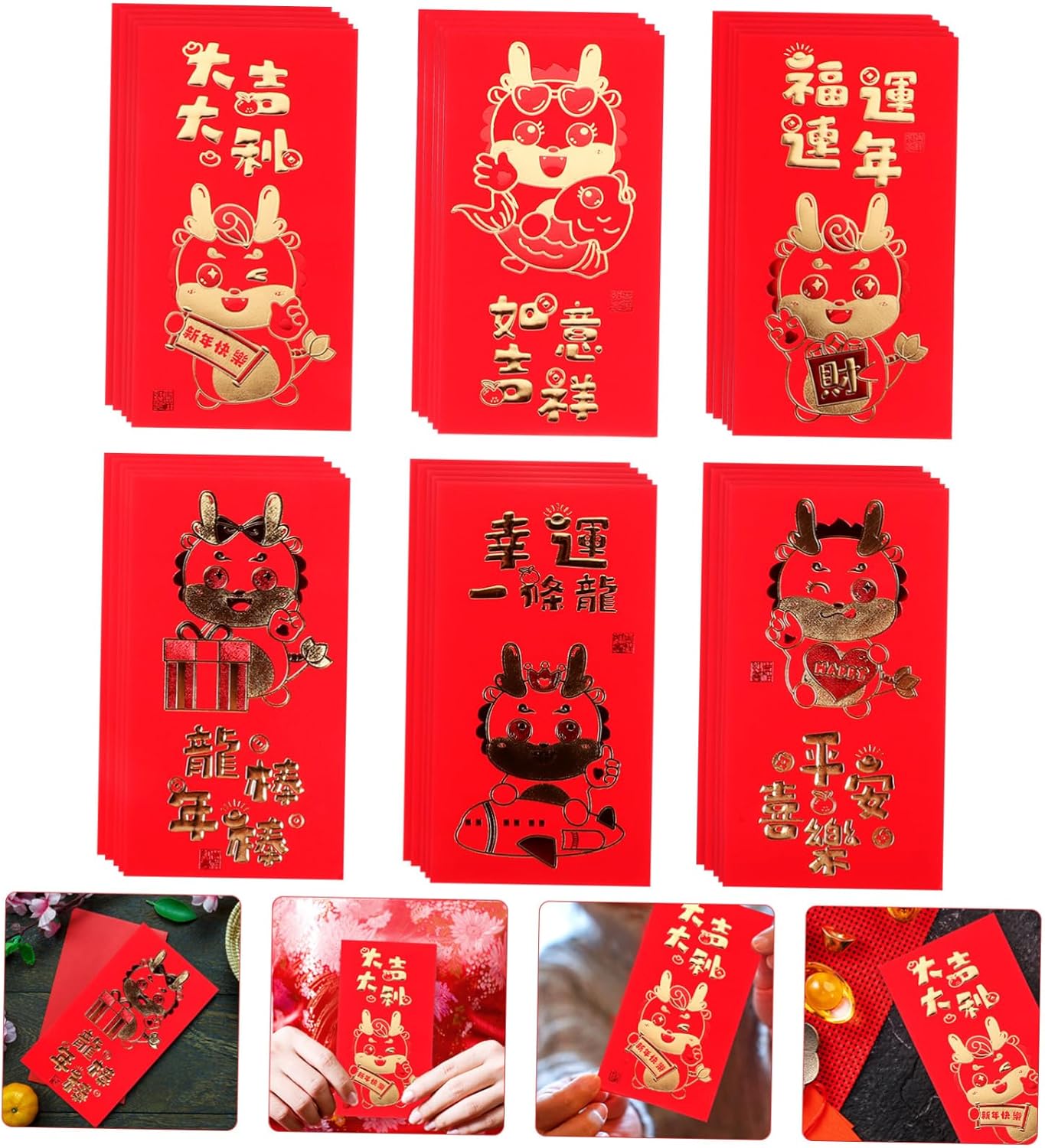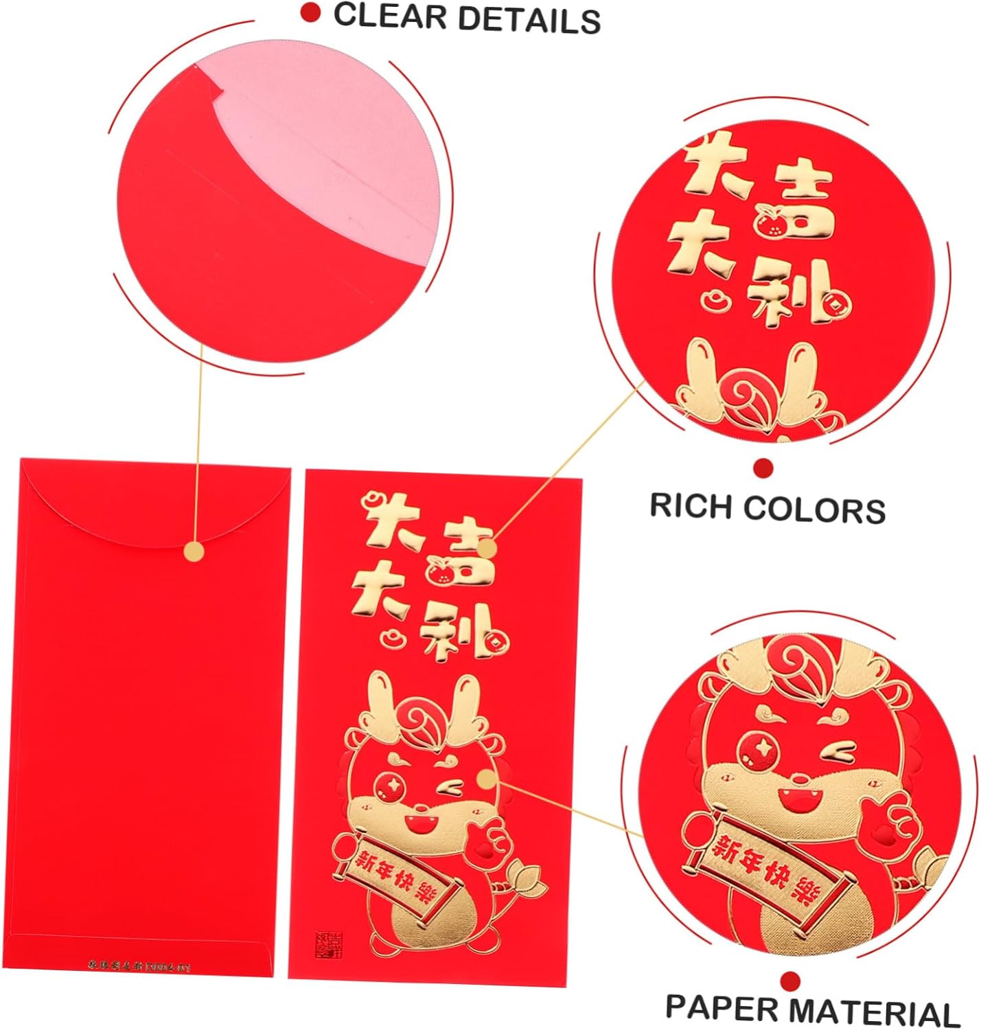 Sacchetto di carta rosso: il tradizionale sacchetto cinese per i soldi porterà più gioia a chiunque ami per la festa di capodanno, sacchetto per i soldi di capodanno Busta rossa decorativa: con caratteri cinesi di buon auspicio e motivi in stile cinese, per creare un'atmosfera festosa, augurandoti felicità e salute durante il anno in arrivo, busta rossa cinese Tasca rossa per soldi: realizzate in carta, queste buste rosse sono robuste e non facili da rompere, con superficie liscia, buste rosse di carta Buste rosse per il capodanno: realizzate in materiale stabile e affidabile con lavorazione squisita e raffinata, e pratiche, buste con motivo a drago Busta rossa per festival: con graziosi motivi per esprimere le benedizioni del popolo cinese, come buon auspicio, pace, fitness e altro ancora, porta soldi