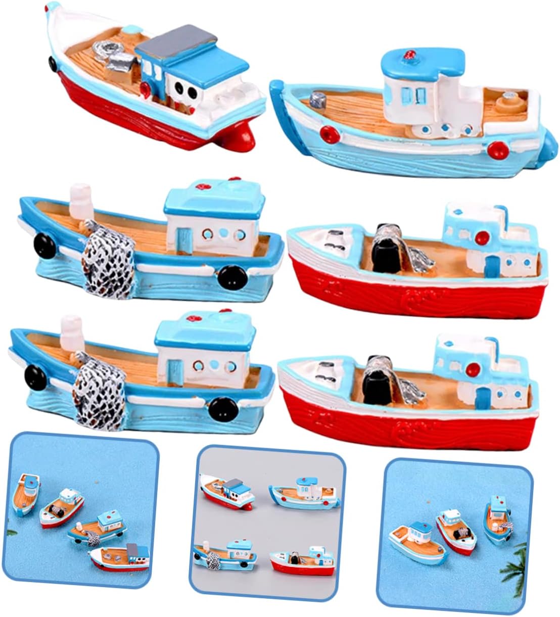 Miniatura di barca: con forma realistica e con stile rustico, decorazioni, l'ornamento della barca da pesca è creativo e ha una buona funzione decorativa, barca a vela in resina Decorazione da giardino in miniatura a forma di barca: utilizzata per decorazioni da tavolo, fotografia, oggetti di scena per foto, decorazioni di micro paesaggi e altri usi, piccole statuette in resina a forma di barca a vela Barche in miniatura: possono essere utilizzate per molti usi, come regali di compleanno, bomboniere e decorazioni per la casa, decorazioni in resina mediterranea Figurina di barca: miniatura in stile barca da pesca, questa semplice decorazione è molto alla moda e piena di senso dell'arte, mini barca in resina Ornamenti per barche: questa decorazione per barche da pesca è appositamente progettata per la decorazione di soggiorni, camere da letto, uffici e barche a vela in miniatura
