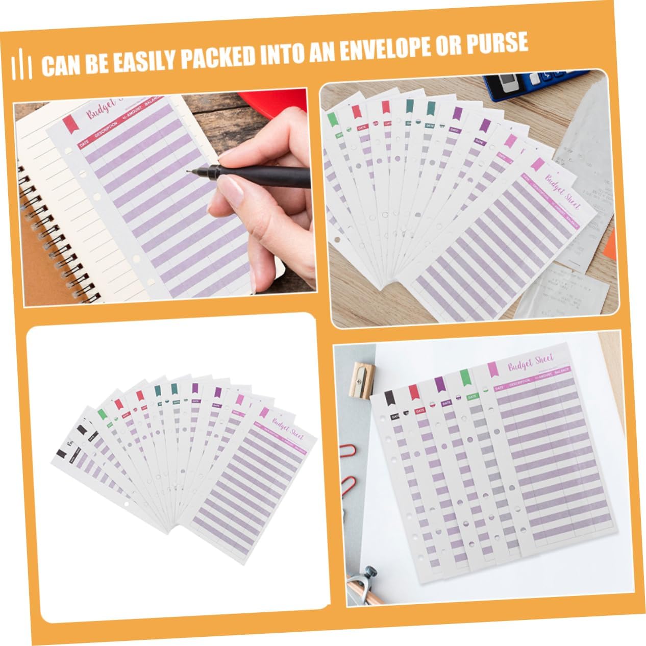 Inserti per planner: leggeri, puoi portarli con te ovunque tu vada, puoi tenerli organizzati quando sei impegnato, schede di registrazione del budget Carta per il budget giornaliero: il suo design è molto semplice, ma è molto pratico da usare, il che ti offre molta comodità, forniture per ufficio domestico Inserti per pianificatore di budget: il piccolo foglio di budget è pieno di benedizioni e può esprimere bene i tuoi sentimenti, pratiche schede di budget Fornitura di budget: foglio di budget che registra tutto il denaro contante, facile da usare, multifunzione e comodo, pianificatore di budget portatile Responsabile delle spese in contanti: puoi risparmiare ore del tuo tempo e inizierai naturalmente a risparmiare denaro per assicurarti di non superare il budget, forniture per ufficio
