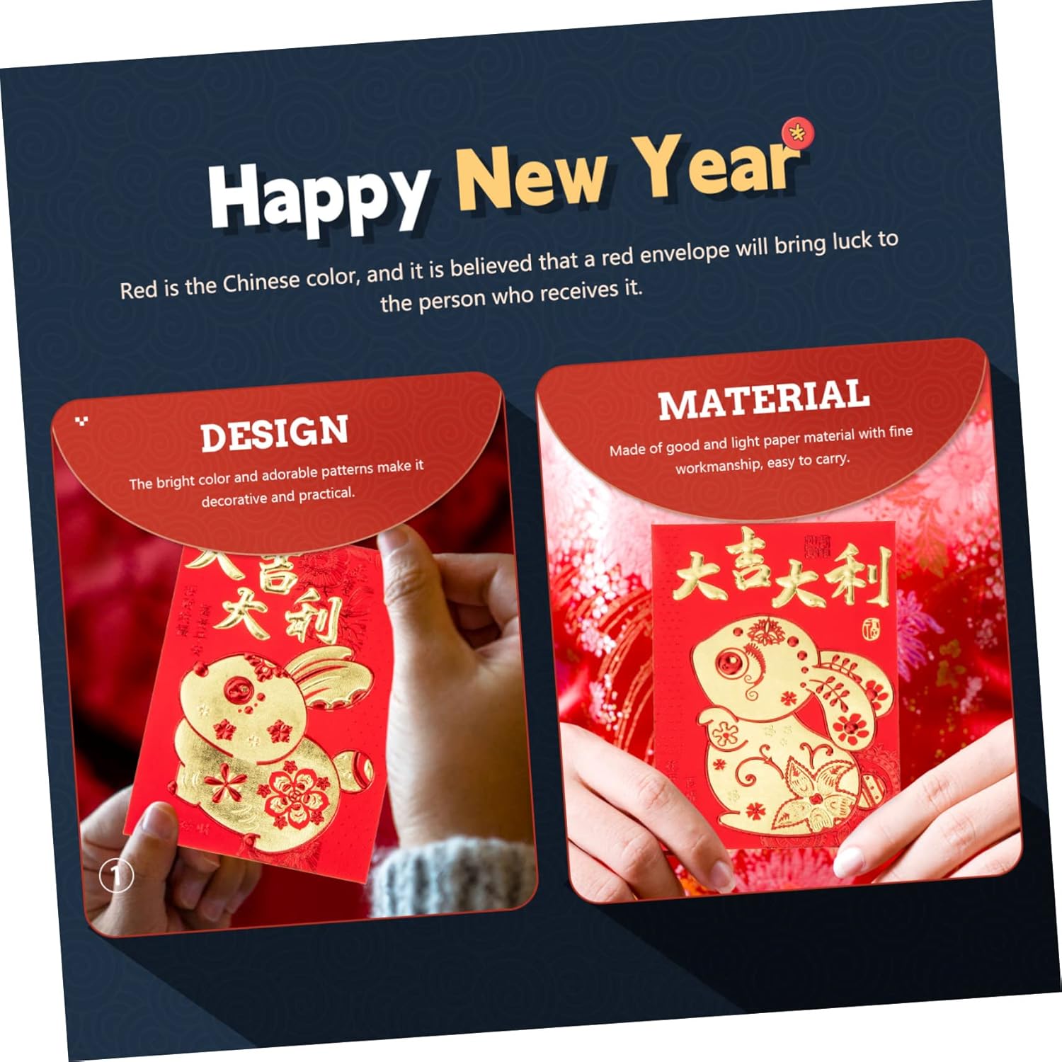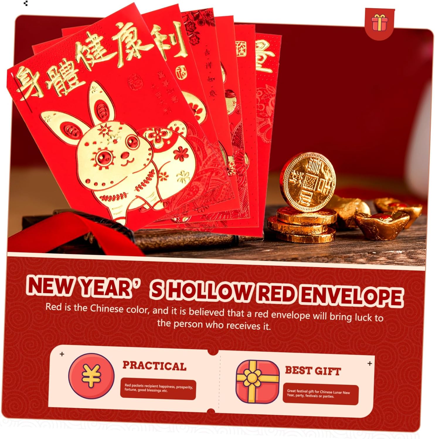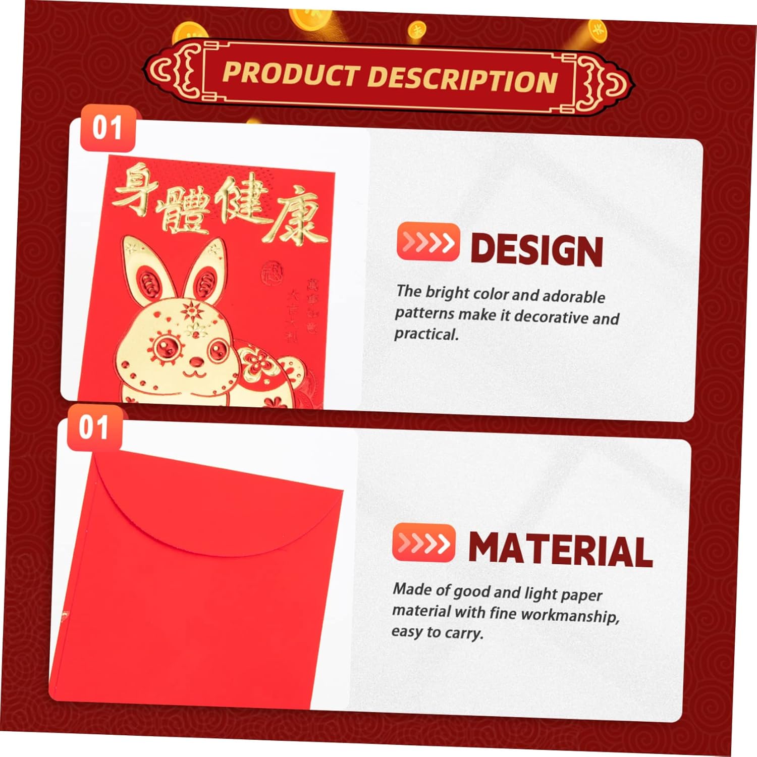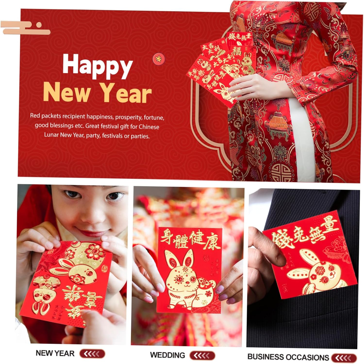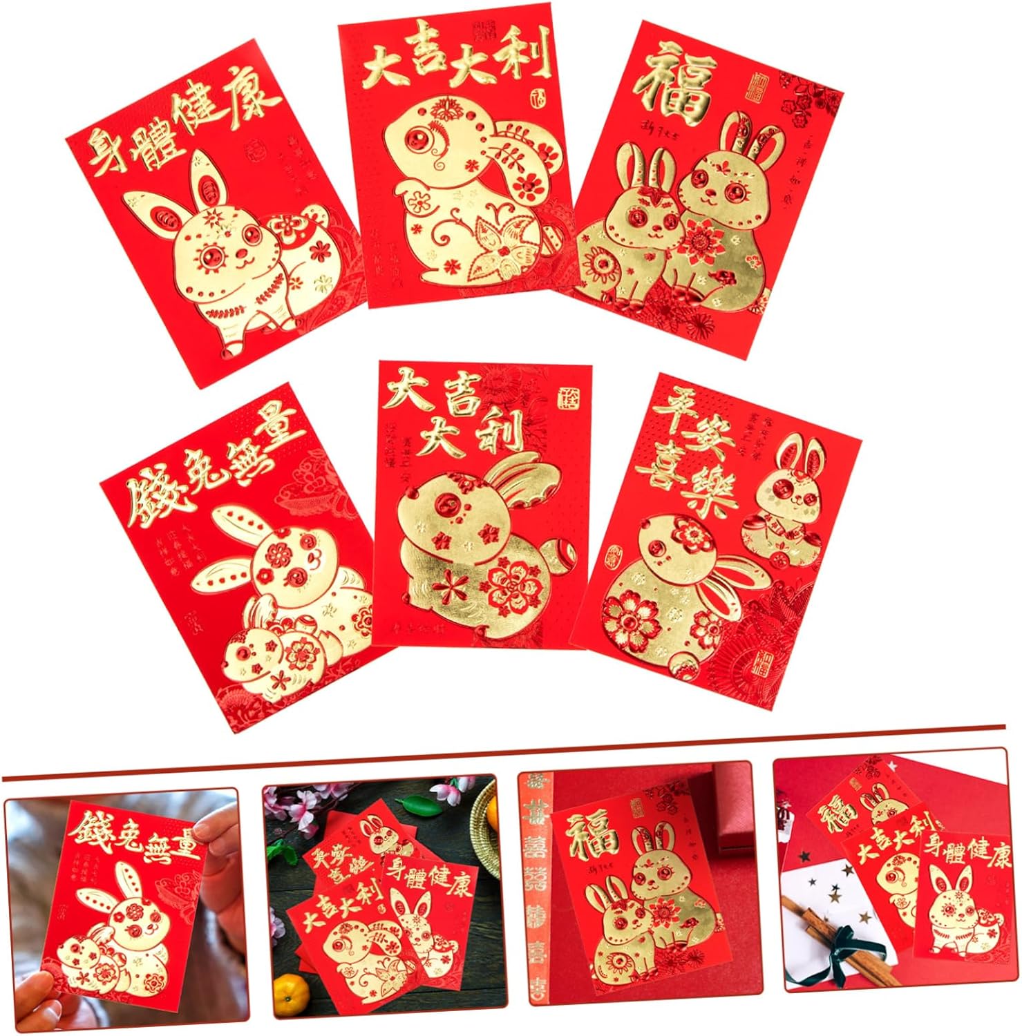 Buste di carta rosse - pacchetti rossi per il destinatario, felicità, prosperità, buone benedizioni ecc., busta per i soldi del anno Sacchetto porta soldi rosso portafortuna: abbastanza buste rosse, in modo che queste buste rosse possano soddisfare le tue diverse esigenze, pacchetto di carta rosso Buste rosse per l'anno del coniglietto: buste rosse in stile cartone animato con motivi a forma di coniglio, uniche e adorabili, buste rosse Buste per i soldi dell'anno del coniglio: il rosso è il cinese e crede che una busta rossa porti fortuna alla che la riceve, pacchetto per la festa di Bustine di carta rossa a forma di coniglietto: puoi usarle per contenere biglietti di auguri, denaro, inviti, regali, ecc., busta rossa