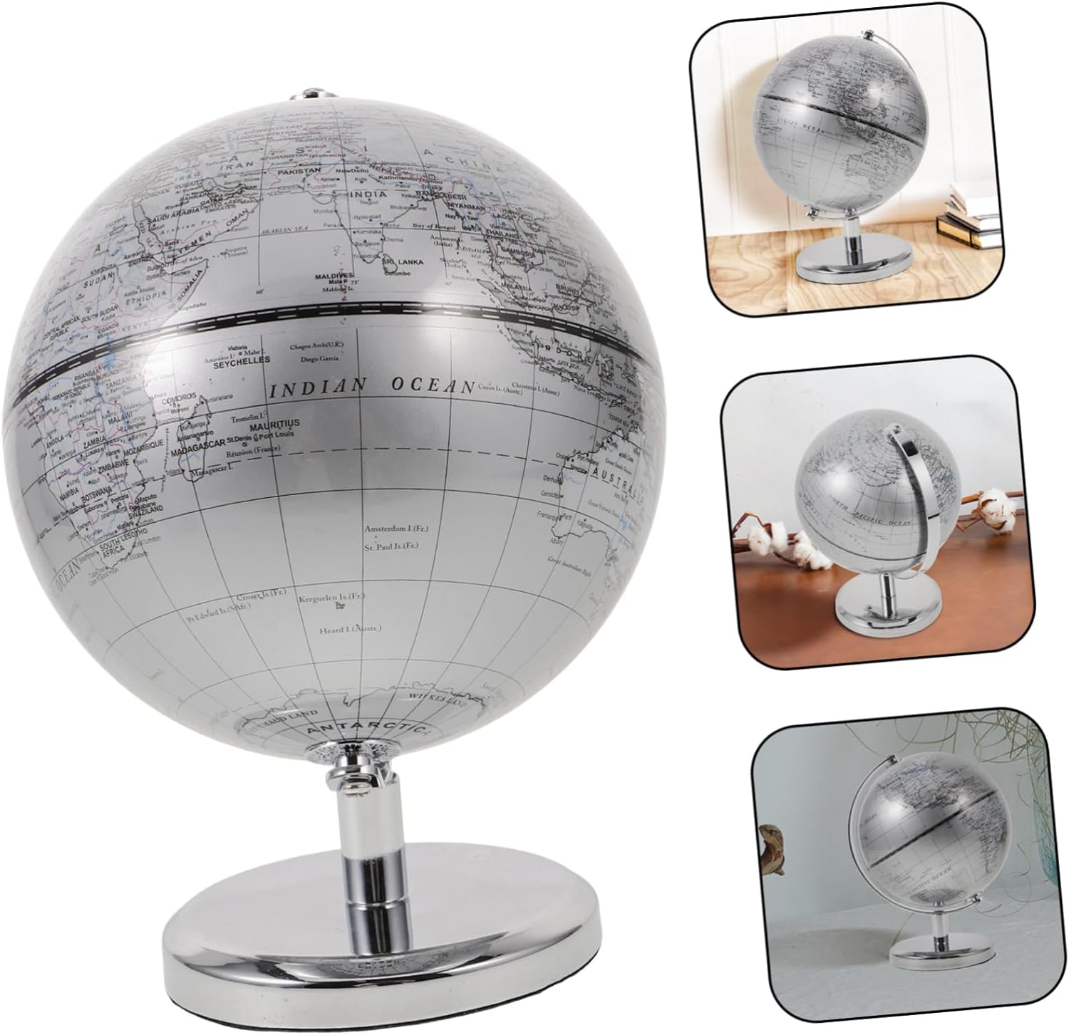 Costruzione: realizzato con materiali in pp, questo globo è progettato per essere durevole, decorazione del globo del mondo da scrivania, mappa del globo del mondo Globo terrestre in plastica: questo globo non è solo un bellissimo pezzo decorativo, ma ha anche uno scopo funzionale come risorsa educativa, decorazione a sfera 3d Globo scolastico per l'aula: questo globo è un eccellente strumento educativo, che aiuta gli utenti ad acquisire una comprensione più approfondita della geografia e della ricca diversità delle culture in tutto il mondo, globo del mondo degli insegnanti Design contemporaneo: la finitura argentata di questo globo offre un aspetto contemporaneo che adatta bene all'arredamento moderno, all'ornamento rotondo della , alla decorazione della mappa del mondo Stile raffinato: il globo argentato aggiunge un tocco raffinato e sofisticato a qualsiasi di ufficio o casa, globo del mondo scolastico, strumento didattico scolastico