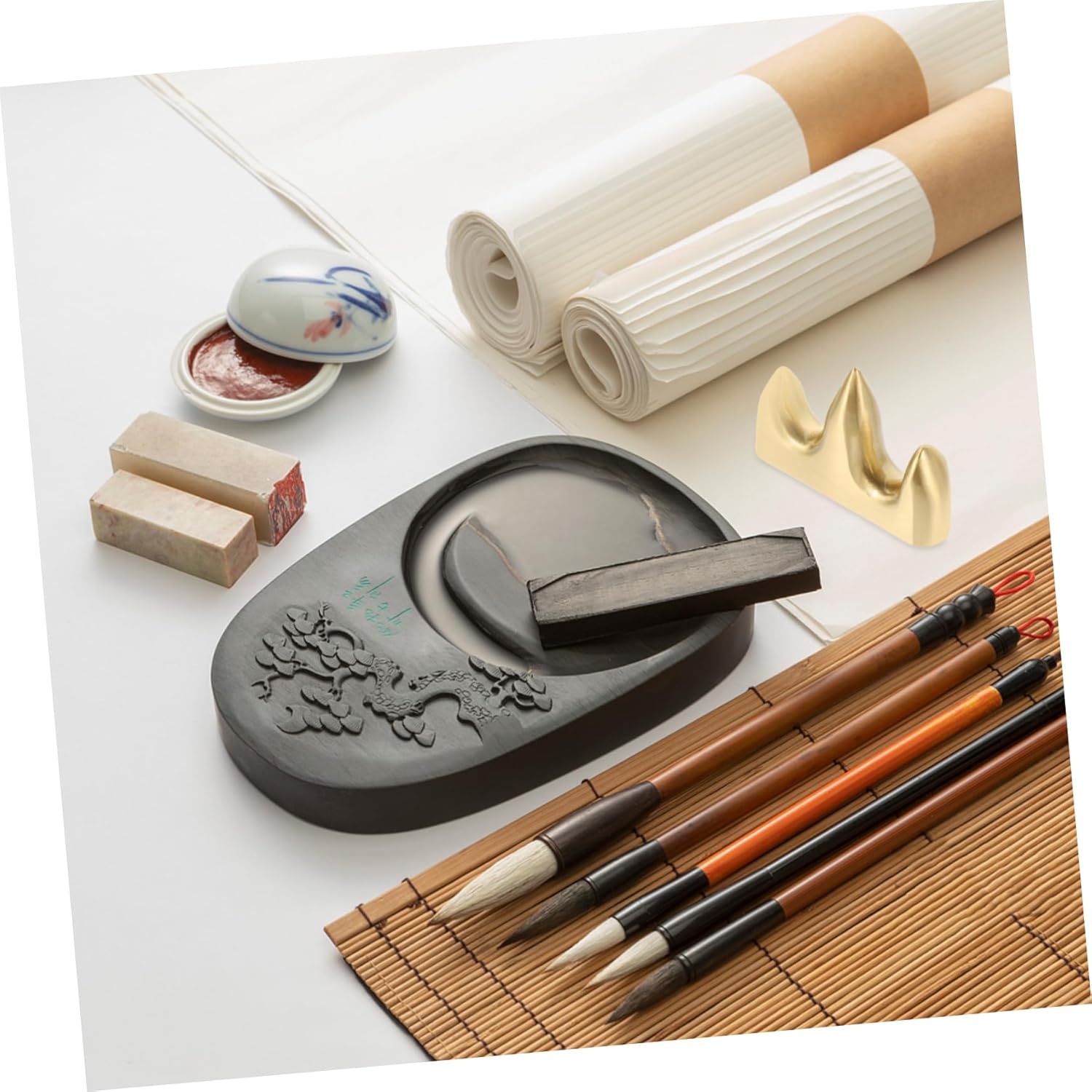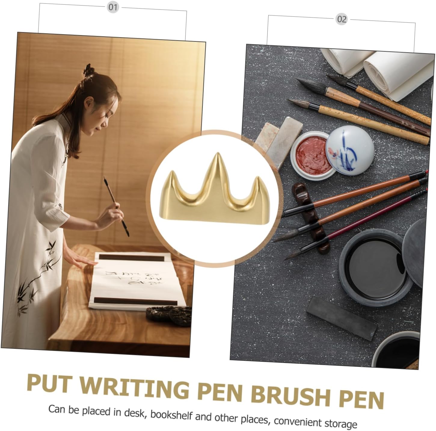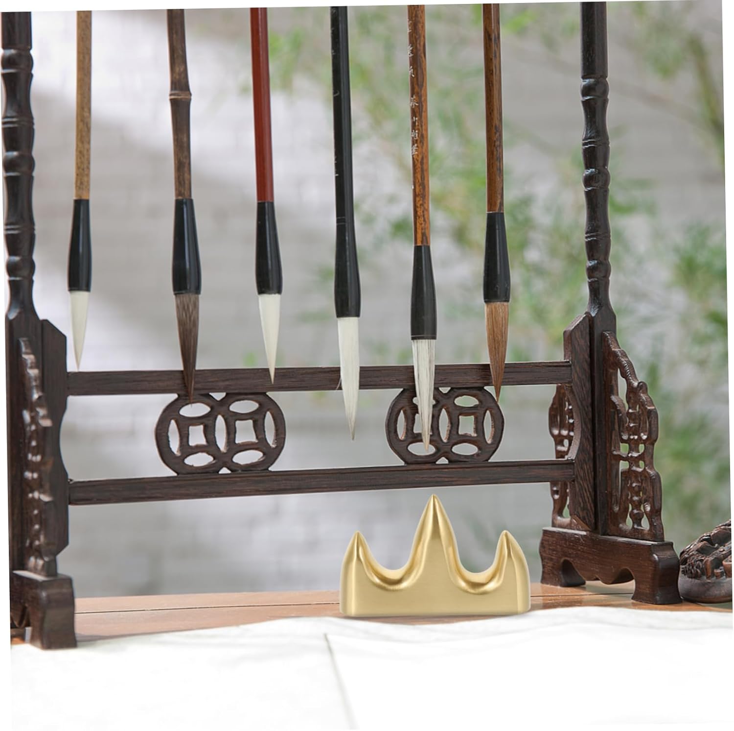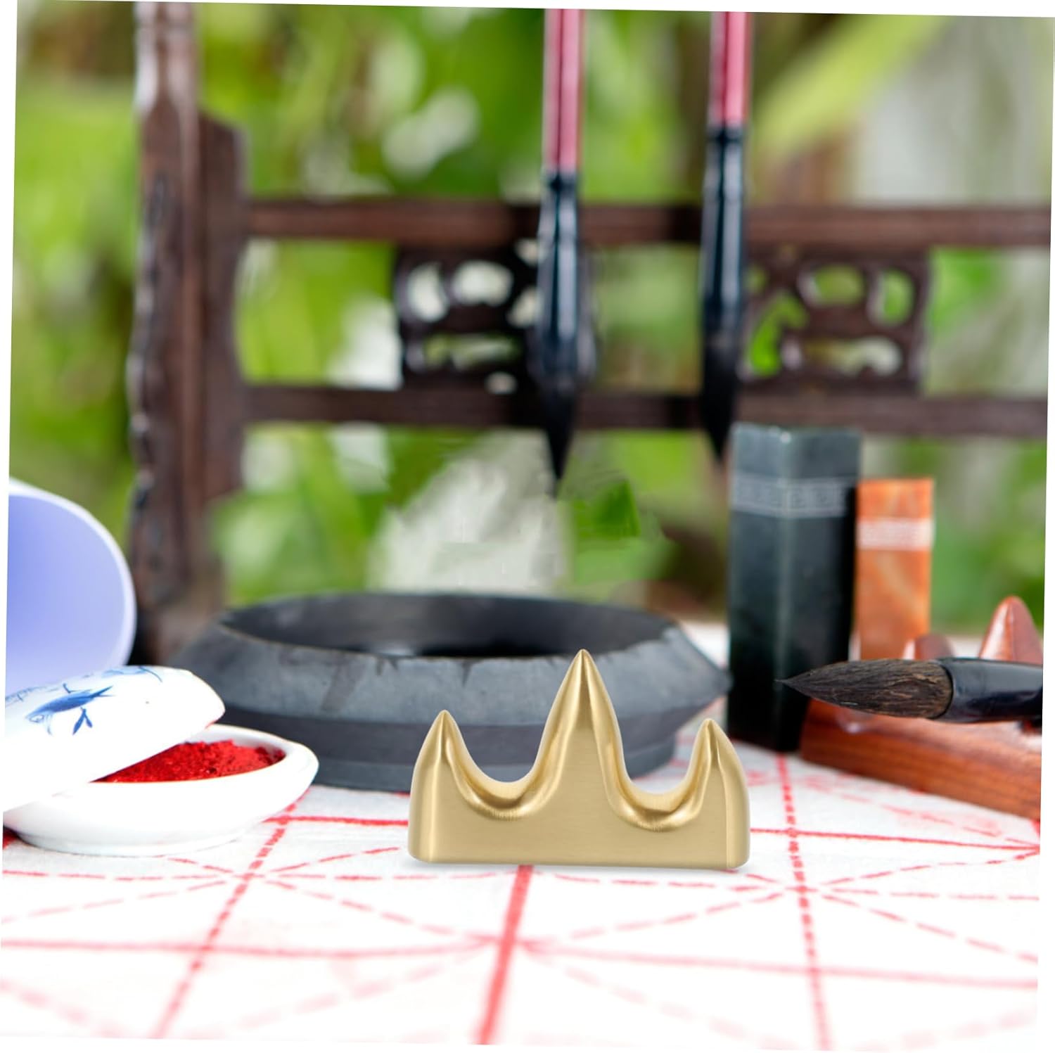 Portapenne per calligrafia: il fondo del portapenne è stabile e facile da posizionare su qualsiasi tavolo o ripiano, portapenne vintage Portapenne per pittura: realizzato in materiale di ottone di alta qualità e pregevole fattura, e durevole, portapenne in legno Poggiapenne: puoi mettere le tue penne, penne per calligrafia sul portapenne, portapenne cinese Portapenne per calligrafia: realizzato in ottone, è molto resistente e raffinato, può essere posizionato sulla scrivania, libreria e in altri posti, pratico contenitore, portaspazzole retrò Pennello in ottone supporto: il design semplice a colori offre un'eccellente esperienza visiva, effetto decorativo e supporto per i pennelli da scrittura Sumi