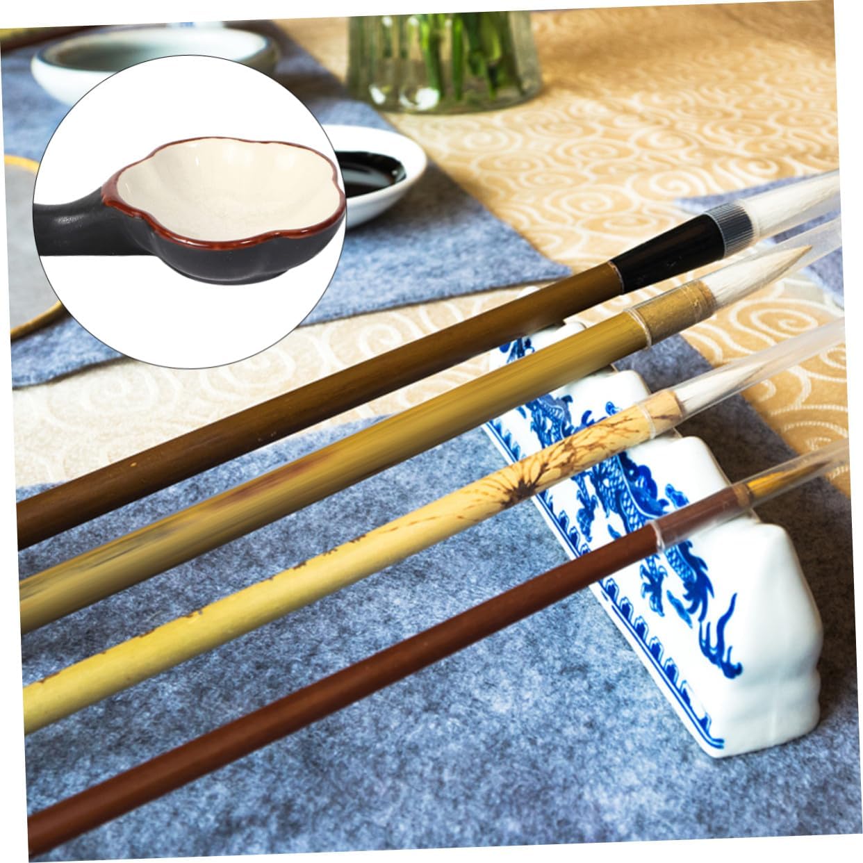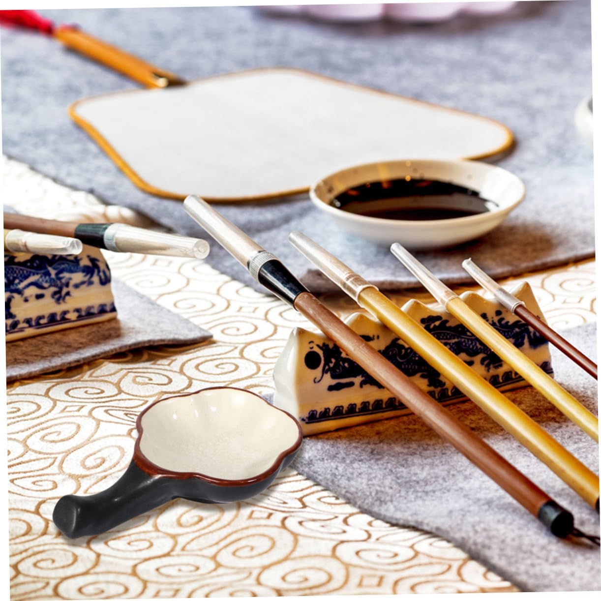Tavolozza di colori - adatta a pittori professionisti, artisti, studenti o, Vassoio di vernice Strumento per dipingere calligrafia - con superficie interna liscia, strofina bene l'inchiostro dalla penna, Tavolozza di inchiostro - realizzata in plastica di alta qualità, robusta, durevole e sicura, Pennello per calligrafia Pennello - ben lucidato e sicuro per le mani durante l'uso, Piastra per inchiostro in ceramica Vassoio per miscelazione colori - design multifunzionale, consiste di una tavolozza con più griglie, un portapenne, Forniture per calligrafia cinese