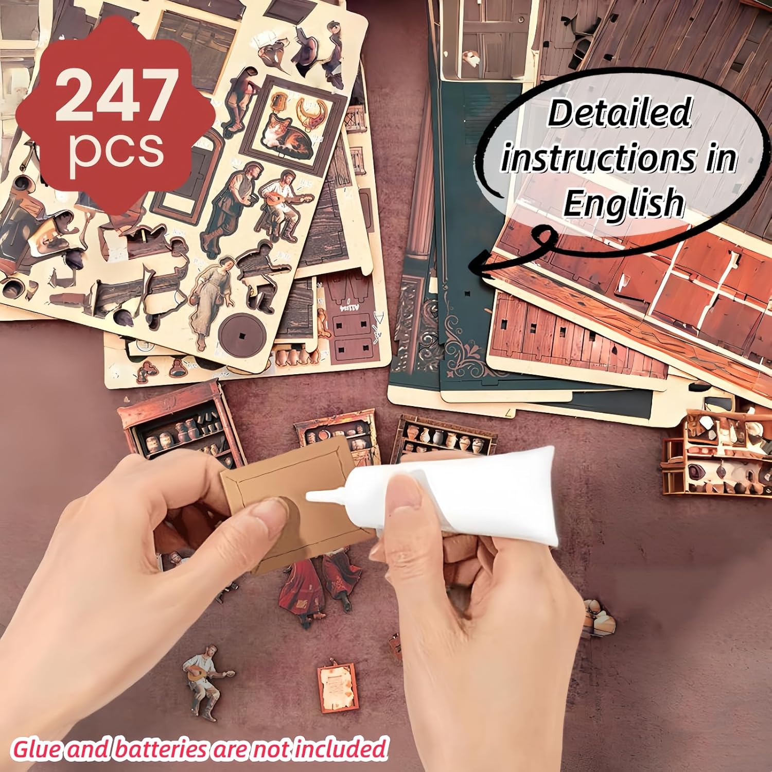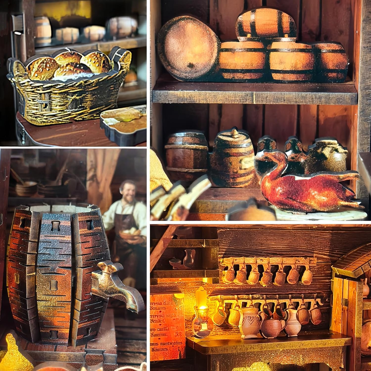 Taverna retrò europea: questo modello "Old Times Tavern" miniaturizza un pub in stile europeo con un tocco medievale. Costruirai un accogliente mondo in miniatura con le tue mani, catturando un senso unico di nostalgia e tranquillità. Personaggi ricchi e scene vissute: l'interno della modella prende vita con personaggi che riposano, chiacchierano e lavorano. Dalle botti sul bar e ai vasi di ceramica alle pareti alle botti di legno in cantina, ogni dettaglio è pieno di un senso di vita autentica. Divertimento coinvolgente artigianale: goditi la gioia creativa di costruire da zero. Questo modello ti trasporterà in un mondo in miniatura pieno di storie, permettendoti di goderti il piacere della concentrazione e della creazione. Una miscela di praticità ed estetica: non è solo una bella opera d'arte, ma anche una perfetta decorazione per la casa. Sia su una scrivania, una vetrina o un tavolo da ufficio, diventa un punto focale unico che mette in mostra il tuo stile personale. Regalo creativo per adulti: questo modello è un ottimo regalo per gli amanti dell'artigianato o chiunque apprezza la cultura retrò o temi accoglienti. È più di un regalo; è un ricordo unico e bello che puoi creare con le tue mani.