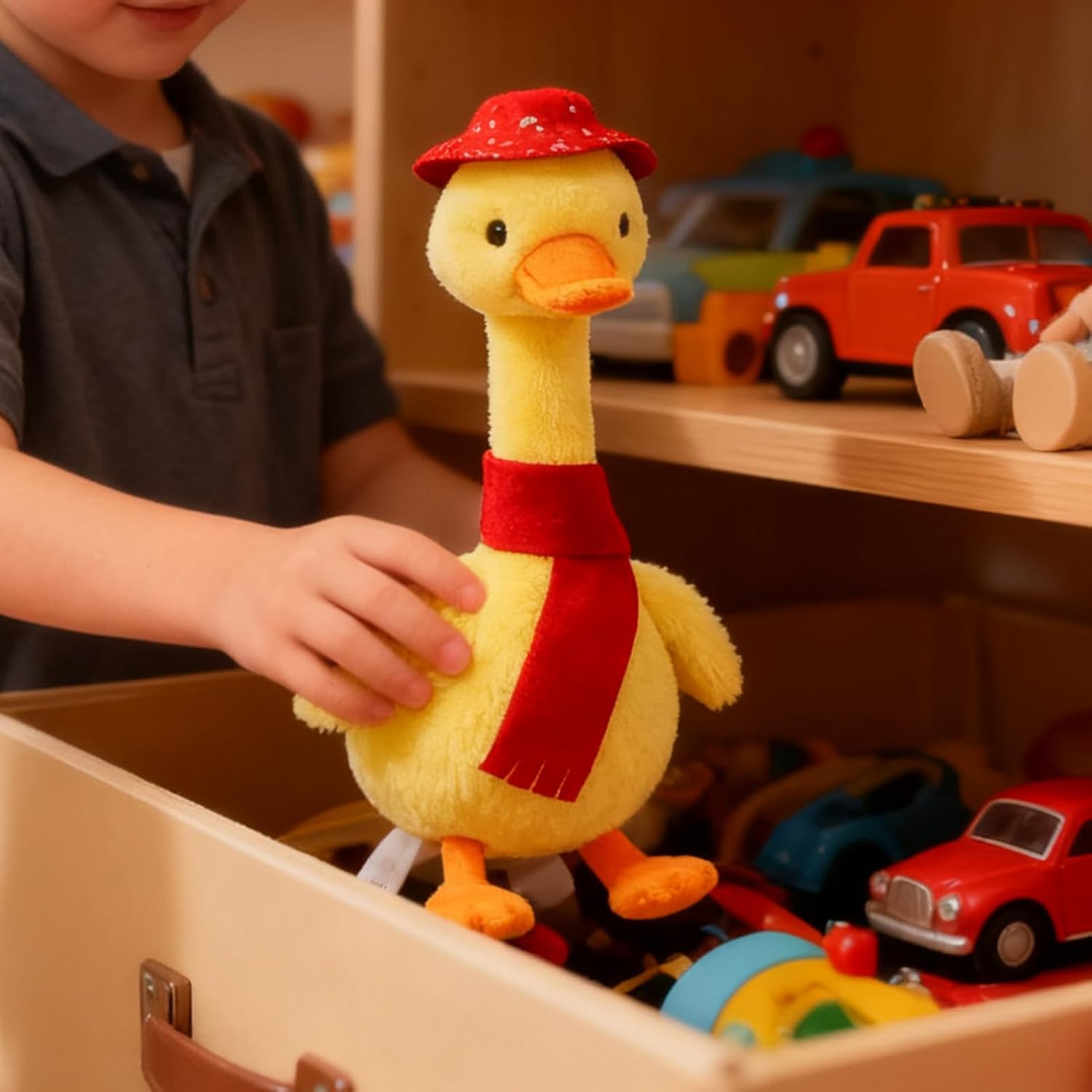 Incoraggiamento del Movimento Bambino: Il giocattolo Dancing Duck ispira il movimento del bambino attraverso movimenti di danza attivati al tocco, offrendo un gioco interattivo in movimento insieme a 12 melodie accattivanti che aiutano i giochi sensoriali e portano intrattenimento alle routine quotidiane delle attività del bambino, sostenendo lo sviluppo fisico e emotivo in modo ludico e coinvolgente Sicuro per Uso Quotidiano: Con un focus sulla sicurezza, questo peluche elettronico utilizza materiali sicuri per la pelle e un design resistente al lavaggio, mantenendo pulizia e comfort per i bambini che amano abbracciarlo o giocarci a casa, a scuola o durante i viaggi, assicurando un'esperienza piacevole e senza preoccupazioni. Design Sicuro Arrotondato: Il giocattolo peluche musicale presenta una forma arrotondata che garantisce massima sicurezza durante il gioco, prevenendo bordi appuntiti e offrendo una sensazione tattile calmante per i bambini che amano coccolarlo come compagno di sonno. Questo peluche morbido migliora comfort e relax prima di dormire, avvolgendo in un abbraccio soffice e rassicurante che favorisce un momento di tranquillità serena e piacevole per la nanna. Potenza di Lunga Durata: Il giocattolo interattivo in peluche offre una batteria di lunga durata con carica Type C, garantendo fino a 4 ore di autonomia e la modalità smart sleep per risparmiare energia, assicurando un di gioco prolungato per i bambini durante i viaggi o a casa riducendo la necessità di ricariche frequenti e migliorando l'esperienza di gioco quotidiana con un design pratico e affidabile per le famiglie italiane. Gioco Musicale Coinvolgente: Progettato con un altoparlante di qualità, il giocattolo parlante favorisce un di gioco prolungato grazie alle sue multiple modalità musicali e canzoni educative precoci, creando un'esperienza immersiva per i bambini piccoli durante il bagnetto o i viaggi in auto, incoraggiando la curiosità e lo sviluppo del linguaggio in modo organico e spontaneo.