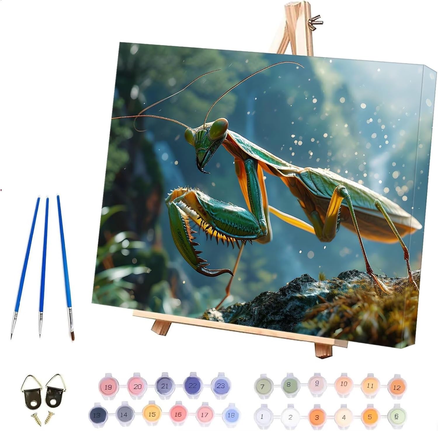 Animale Mantide religiosa Dipingere con i Numeri, Dipingere con i Numeri Bambini, Passatempo per Adulti, Dipingere con i Numeri Kit Completo, con Colori Acrilici e Pennelli per Dipingere 70x90cm q-101