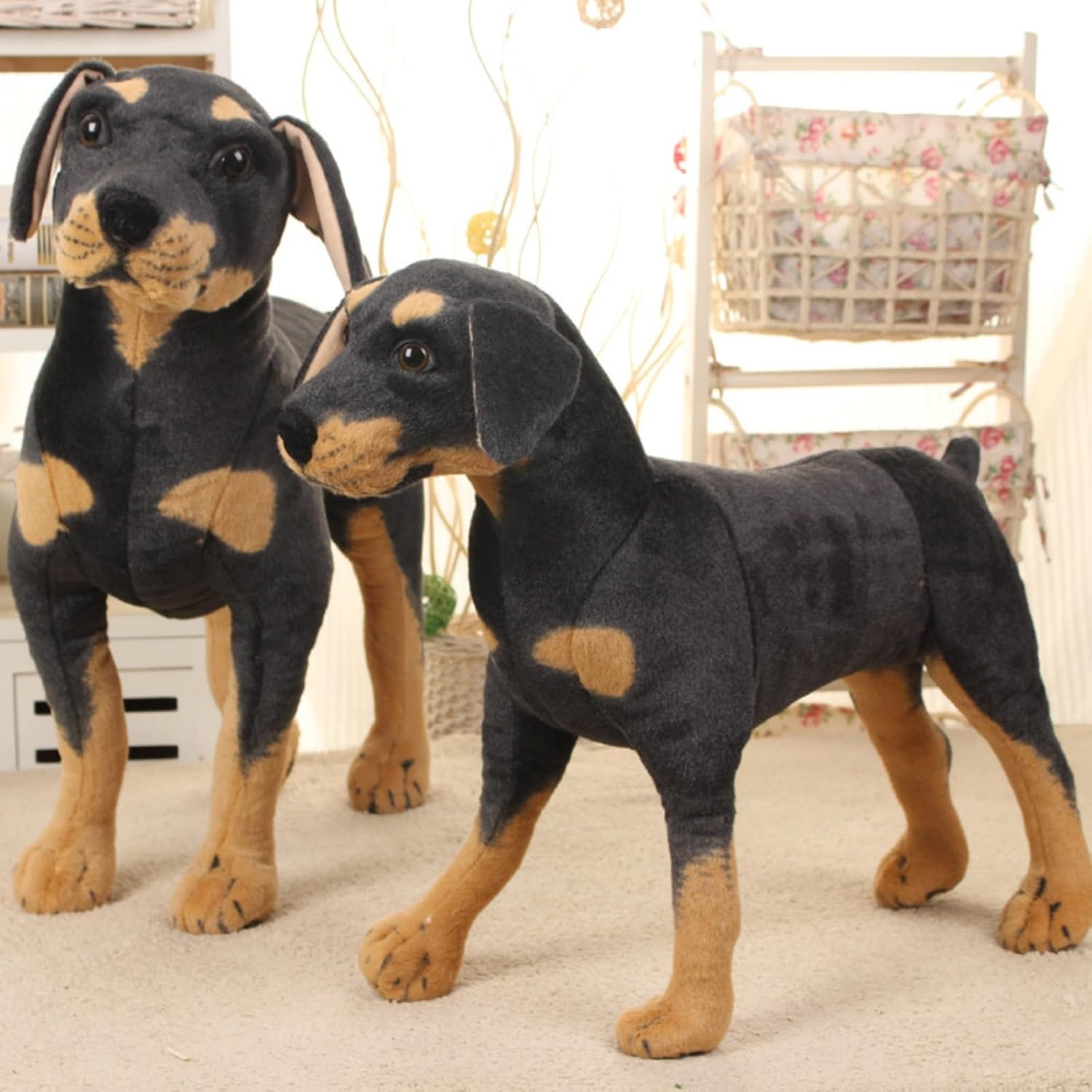 DESIGN VITA : questo peluche Rottweiler è progettato in modo molto realistico, con un aspetto carino e un corpo piccolo. È realizzato in materiale peluche di altissima qualità, con un viso carino e gambe corte di cui ti innamorerai sicuramente. MATERIALE DI ALTA QUALITÀ: l'animale di peluche per cani è realizzato in tessuto morbido e soffice di alta qualità, riempito con cotone PP, buona elasticità, non importa come abbracciarlo e stringerlo, può rimbalzare rapidamente e mantenere la sua bella forma per un lungo periodo di tempo, in modo da poterti sentire pieno di comfort e calore ogni volta che lo abbracci. Uso multifunzionale: non è solo un peluche, ma anche un intimo compagno di giochi per bambini, che permette loro di immergersi in un'atmosfera allegra e condividere una meravigliosa infanzia. Quando non in uso, può essere utilizzato anche come decorazione per la casa per aggiungere un tocco di colore alla stanza. Il miglior regalo: adatto per molte occasioni, compleanni per bambini, feste, anniversari e così via. Regalalo ai tuoi figli per sorprenderli e farli ridere; regalalo ai tuoi amici per trasmettere calore e affetto, è la scelta migliore per esprimere i tuoi sentimenti. IMBALLAGGIO VUOTO: i simpatici peluche sono confezionati sottovuoto, quando ricevete le bambole, dopo l'apertura della confezione, le bambole torneranno rapidamente soffici. All'inizio potrebbero esserci alcune rughe, ma non preoccuparti, scompariranno da soli.