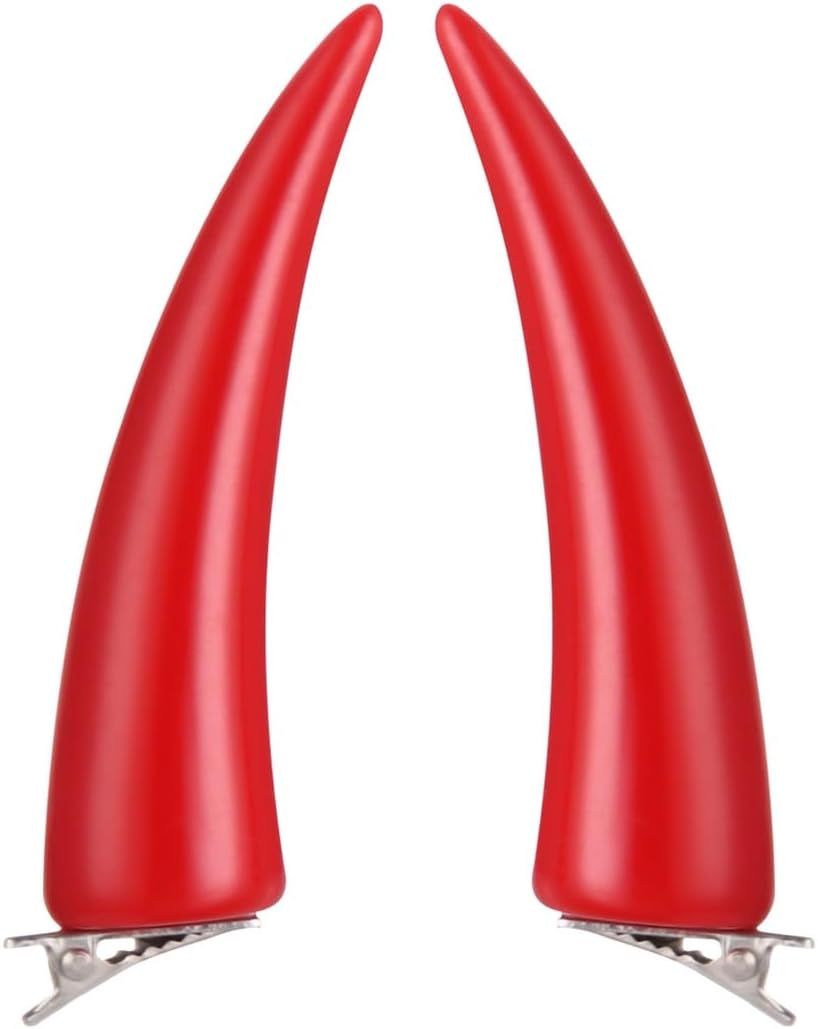 Colore: rosso. Materiale: resina, lega. Dimensioni: 2,2 x 8,9 cm (larghezza x altezza). La confezione include: 1 paio di corna da diavolo. Nota: - Si prega di fare riferimento alla misura. Si prega di considerare un piccolo margine di errore nelle misure. - Potrebbe esserci una piccola differenza di colore a causa del monitor, della fotocamera o di altri fattori, si prega di fare riferimento all'articolo fisico.