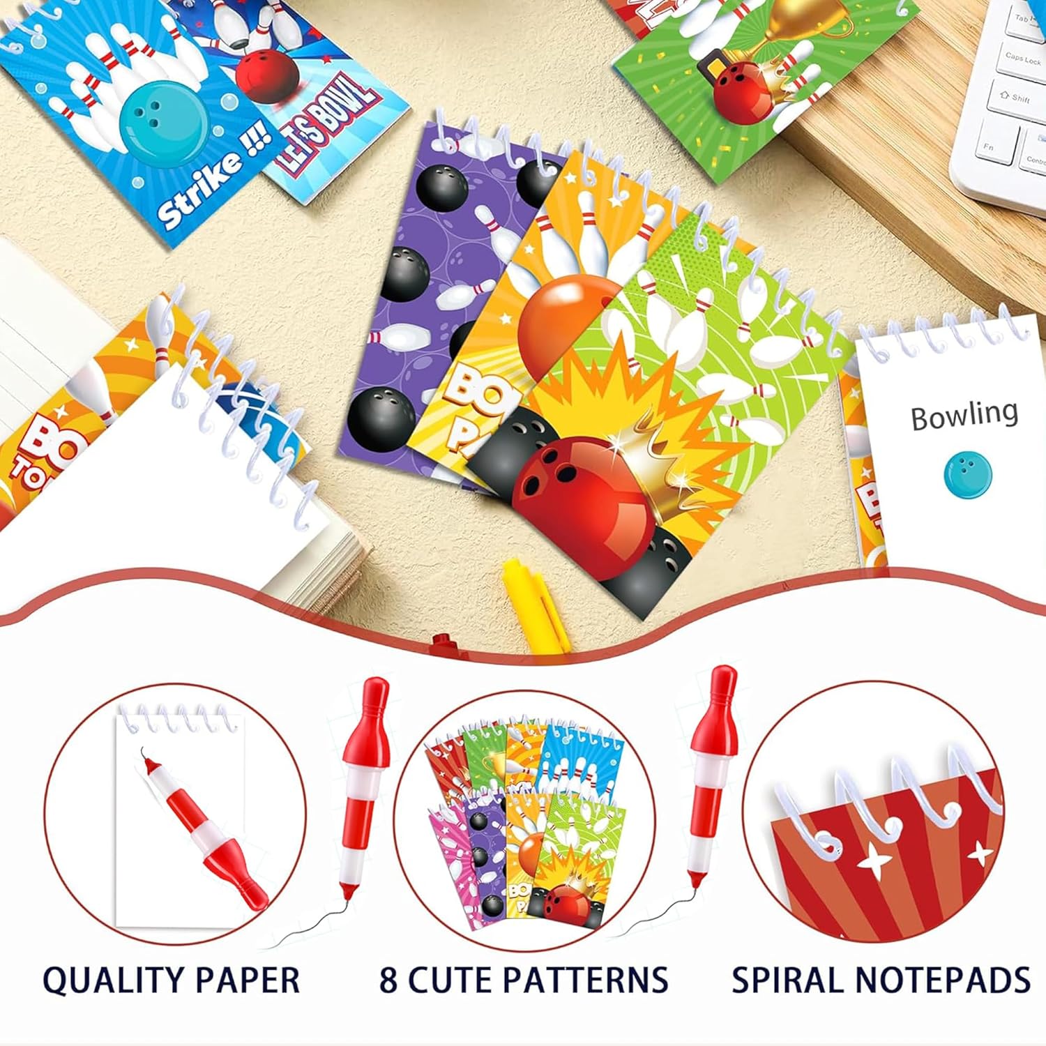 【Divertente set di cancelleria a tema bowling】 Il pacchetto include 12 mini quaderni a tema bowling, 12 penne da bowling, 12 sacchetti regalo e 50 adesivi da bowling, questa cancelleria da bowling ti porterà un'atmosfera felice alla tua festa. Bomboniere per il bowling: splendidamente realizzato con attenzione ai dettagli in ogni elemento, questo set regalo di cancelleria a tema bowling. I quaderni e le penne da bowling sono il fulcro di questo set e forniscono una bellissima tela per i tuoi pensieri e le tue espressioni. Abbinato a un'elegante penna da bowling e fantastici adesivi da bowling, questo è un set completo che migliorerà qualsiasi evento o uso personale. 【Materiale affidabile】 I quaderni e gli adesivi da bowling sono fatti di carta, robusta e durevole; Mentre i recinti da bowling sono realizzati in plastica resistente, garantendo un uso prolungato e una presa comoda; Questa combinazione promette una risorsa duratura per le tue esigenze di scrittura. PORTATILE E CONVENIENTE: Le penne da bowling hanno una dimensione di circa 7,5 x 3 cm, per riporle facilmente in astucci, portafogli, borse o borse; I mini quaderni da bowling misurano circa 10 x 5,9 cm, abbastanza piccoli da poter essere inseriti direttamente in una borsa, rendendoli ideali per la scuola, i viaggi o per prendere appunti. Ampio utilizzo: i quaderni per le feste di bowling, le penne da bowling e gli adesivi per il bowling possono essere utilizzati come premi o ricompense per la scuola o la casa, nonché come regali di gioco o riempitivi per sacchetti regalo per feste di compleanno; Puoi creare più divertimento utilizzando queste forniture per feste di compleanno di bowling.