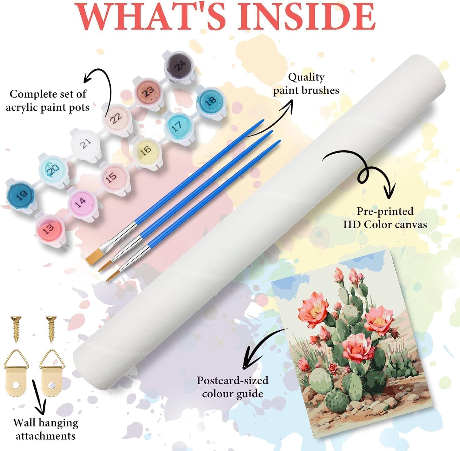 Dimensioni della pittura a olio:area di pittura:20x16 pollici (50x40 cm); area totale della tela:22x18 pollici (57x47 cm),senza cornice Facile da dipingere:ogni area è numerata.Basta trovare il colore corrispondente sul vassoio della vernice e dipingerlo per creare un dipinto molto bello All'interno di ogni kit:tela colorata con numeri;set di colori acrilici con numeri;set di pennelli da 3 pezzi di qualità artistica;riferimento a grandezza naturale Scelta regalo:puoi dare al tuo amico un prodotto finito per esprimerti,oppure puoi dare loro un prodotto semi-finito per fargli sperimentare il processo di felicità e realizzazione Giochi giocattolo Opera d'arte:per adulti,è un'opera d'arte che può alleviare lo stress,rilassarsi e trascorrere il tempo libero;per bambini,è un giocattolo educativo che può sviluppare un interesse per la pittura e migliorare la concentrazione