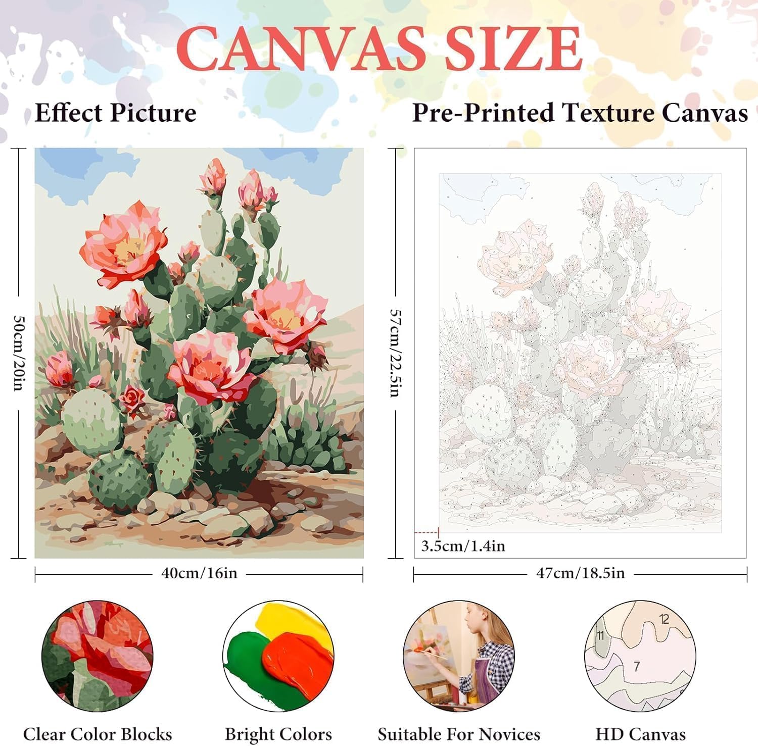 Dimensioni della pittura a olio:area di pittura:20x16 pollici (50x40 cm); area totale della tela:22x18 pollici (57x47 cm),senza cornice Facile da dipingere:ogni area è numerata.Basta trovare il colore corrispondente sul vassoio della vernice e dipingerlo per creare un dipinto molto bello All'interno di ogni kit:tela colorata con numeri;set di colori acrilici con numeri;set di pennelli da 3 pezzi di qualità artistica;riferimento a grandezza naturale Scelta regalo:puoi dare al tuo amico un prodotto finito per esprimerti,oppure puoi dare loro un prodotto semi-finito per fargli sperimentare il processo di felicità e realizzazione Giochi giocattolo Opera d'arte:per adulti,è un'opera d'arte che può alleviare lo stress,rilassarsi e trascorrere il tempo libero;per bambini,è un giocattolo educativo che può sviluppare un interesse per la pittura e migliorare la concentrazione