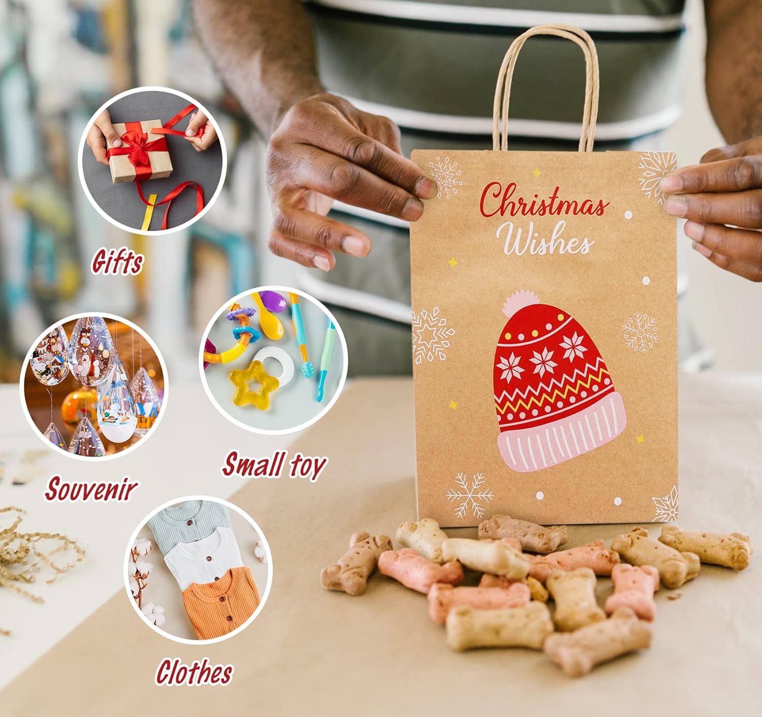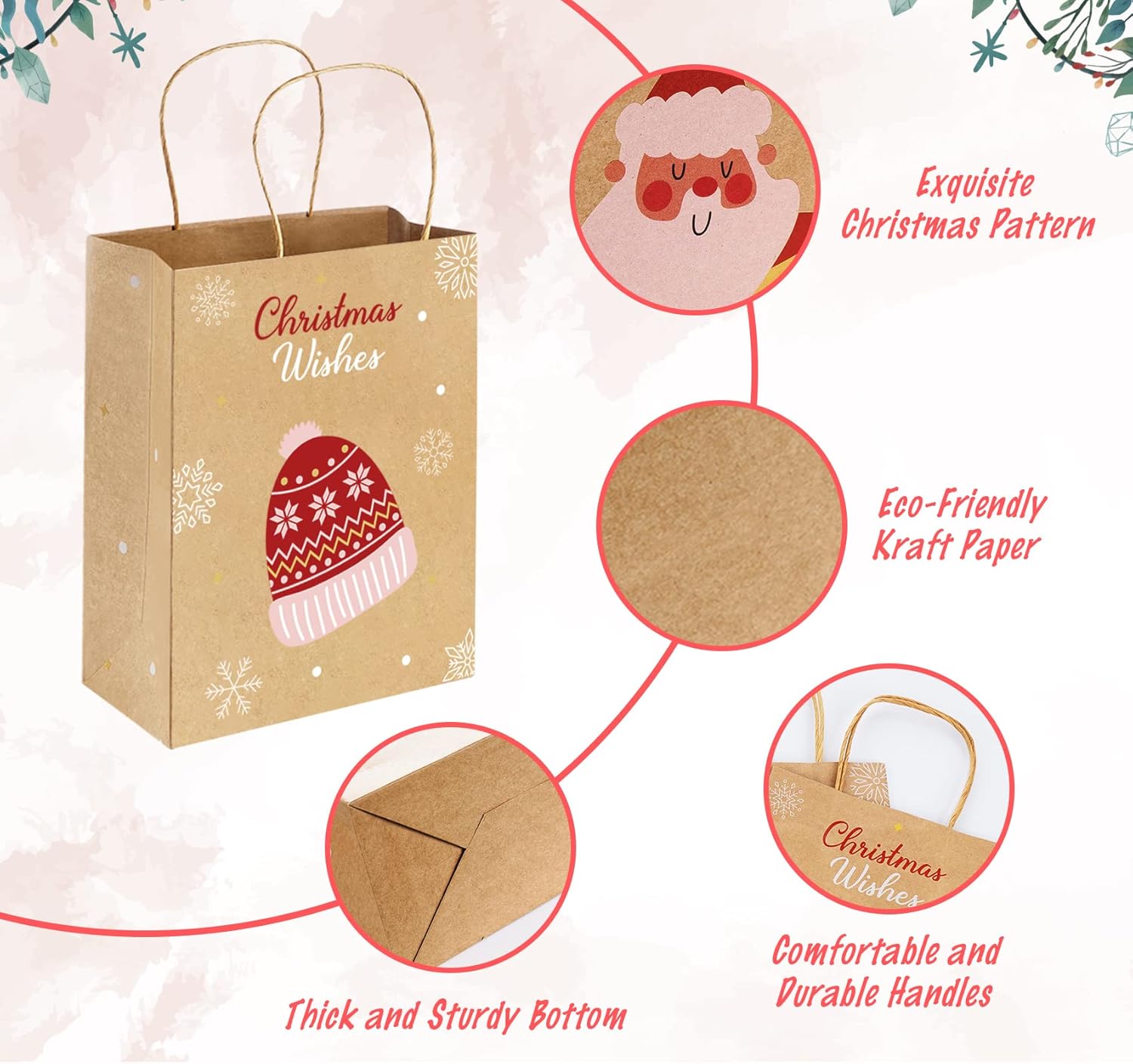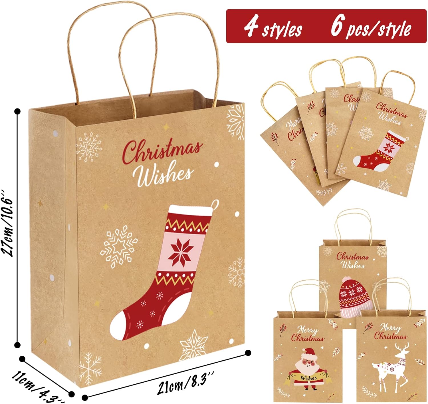 Sacchetti di carta da 24 pezzi in 4 design natalizi: Babbo Natale, renne, cappelli e guanti di Babbo Natale, 6 pezzi per stile, possono soddisfare le tue diverse esigenze, adatti e sufficienti per conservare regali o decorazioni natalizie. Realizzazione robusta: questi delicati sacchetti regalo sono realizzati in carta kraft di alta qualità con stampa a colori, design a inchiostro permanente, possono essere utilizzati ripetutamente. Ogni sacchetto regalo di Natale misura: 21 x 11 x 27 cm, con fondo piatto e ampia apertura per regali, caramelle, noci, cioccolatini, giocattoli, ornamenti, ecc. Versatile: i sacchetti di carta kraft sono perfetti per confezioni regalo, regali di Natale, articoli per feste, aule, compleanni di bambini, baby shower, matrimoni e decorazioni natalizie, aggiungendo divertimento ed eccitazione alle tue feste. Servizio clienti Supper e ulteriori sconti su Anstore: contatta il nostro team di supporto se hai domande! Anstore Direct offre varie scelte di decorazioni natalizie, basta entrare nel nostro negozio e cercare le decorazioni natalizie più popolari.