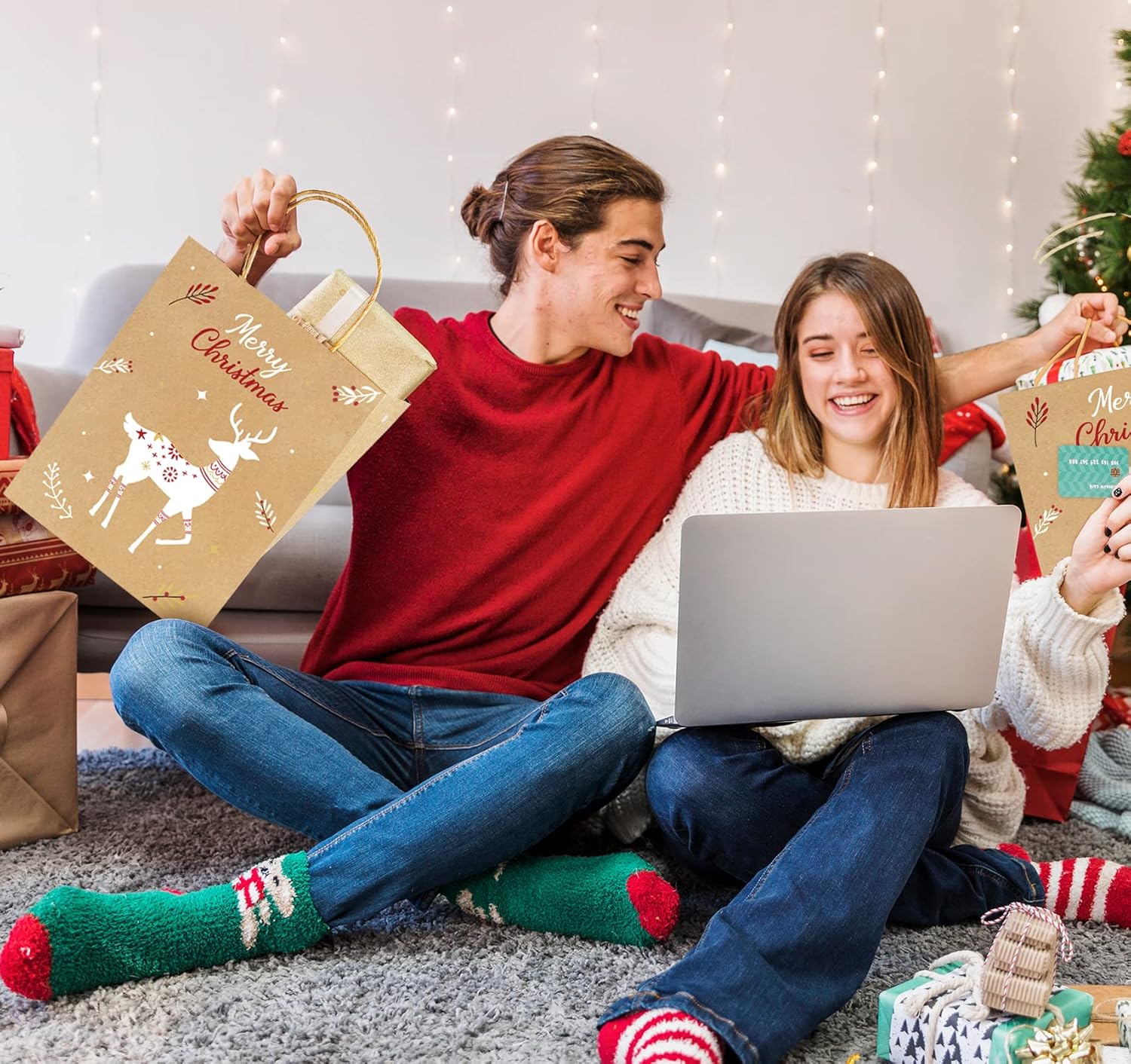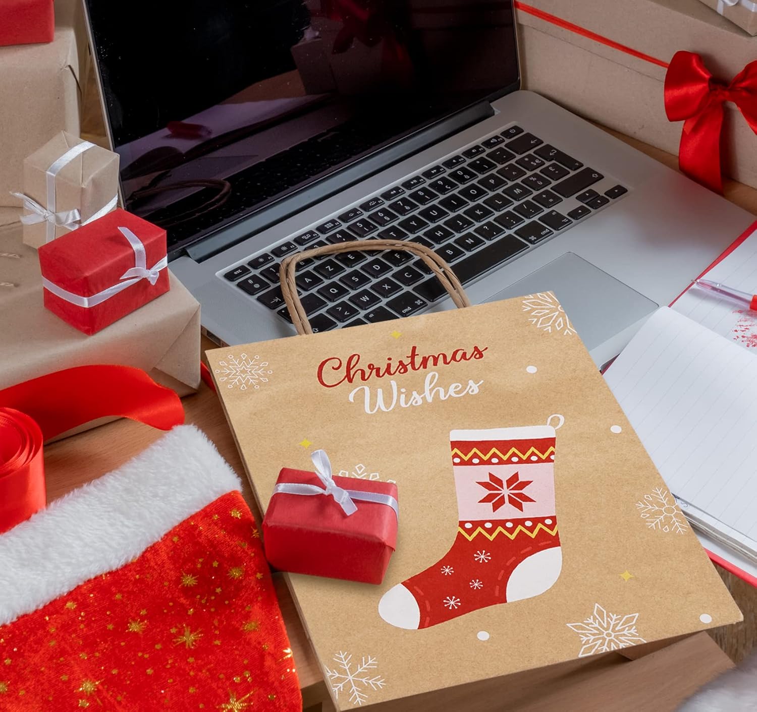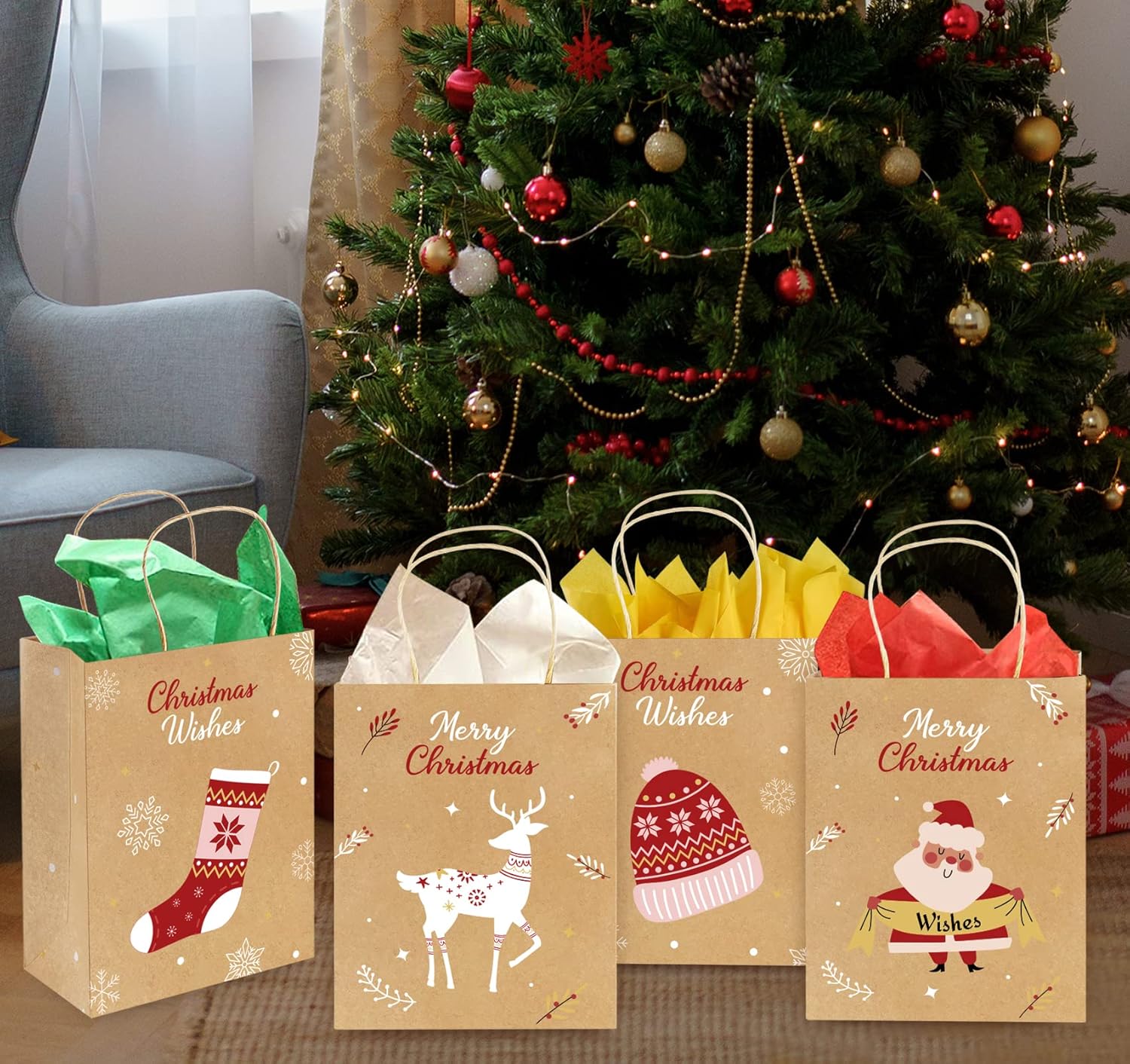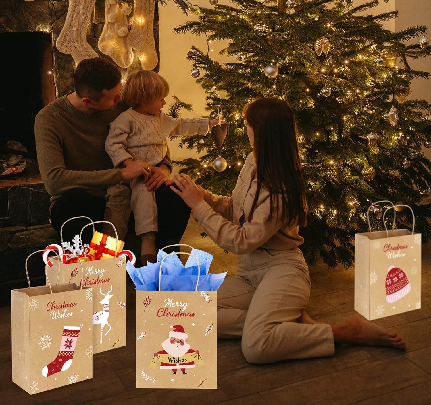 Sacchetti di carta da 24 pezzi in 4 design natalizi: Babbo Natale, renne, cappelli e guanti di Babbo Natale, 6 pezzi per stile, possono soddisfare le tue diverse esigenze, adatti e sufficienti per conservare regali o decorazioni natalizie. Realizzazione robusta: questi delicati sacchetti regalo sono realizzati in carta kraft di alta qualità con stampa a colori, design a inchiostro permanente, possono essere utilizzati ripetutamente. Ogni sacchetto regalo di Natale misura: 21 x 11 x 27 cm, con fondo piatto e ampia apertura per regali, caramelle, noci, cioccolatini, giocattoli, ornamenti, ecc. Versatile: i sacchetti di carta kraft sono perfetti per confezioni regalo, regali di Natale, articoli per feste, aule, compleanni di bambini, baby shower, matrimoni e decorazioni natalizie, aggiungendo divertimento ed eccitazione alle tue feste. Servizio clienti Supper e ulteriori sconti su Anstore: contatta il nostro team di supporto se hai domande! Anstore Direct offre varie scelte di decorazioni natalizie, basta entrare nel nostro negozio e cercare le decorazioni natalizie più popolari.