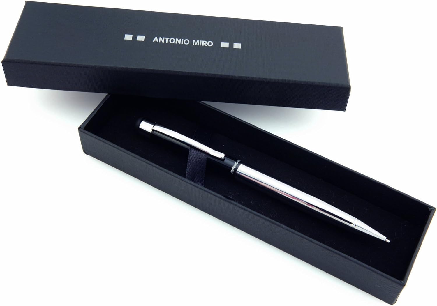 Marca: Antonio Mirò Nome dell'articolo Antonio Miro Penna a sfera nera metallo inchiostro blu, presentazione in scatola con logo, ideale per un regalo Tipo di prodotto: Strumento di scrittura