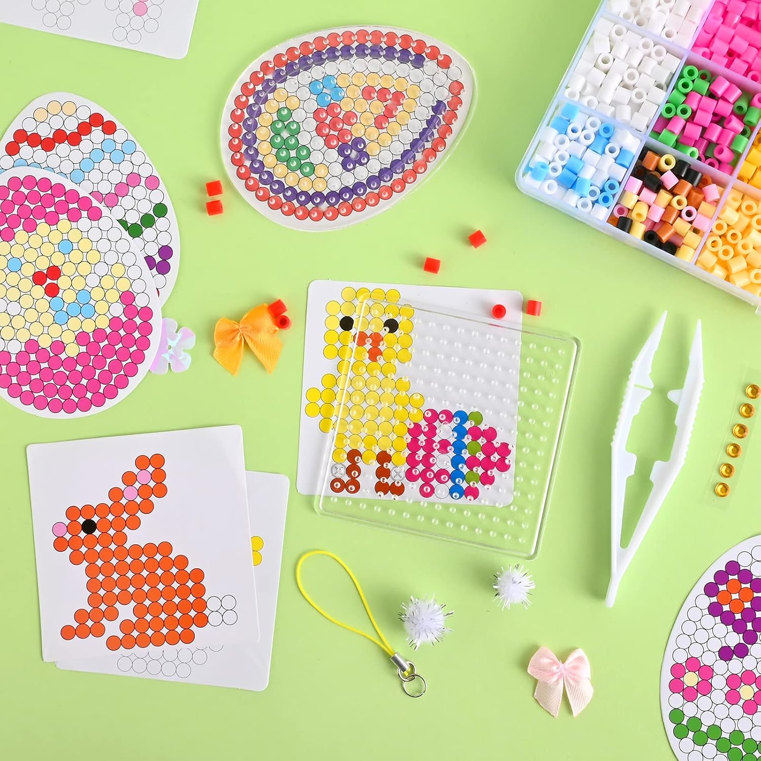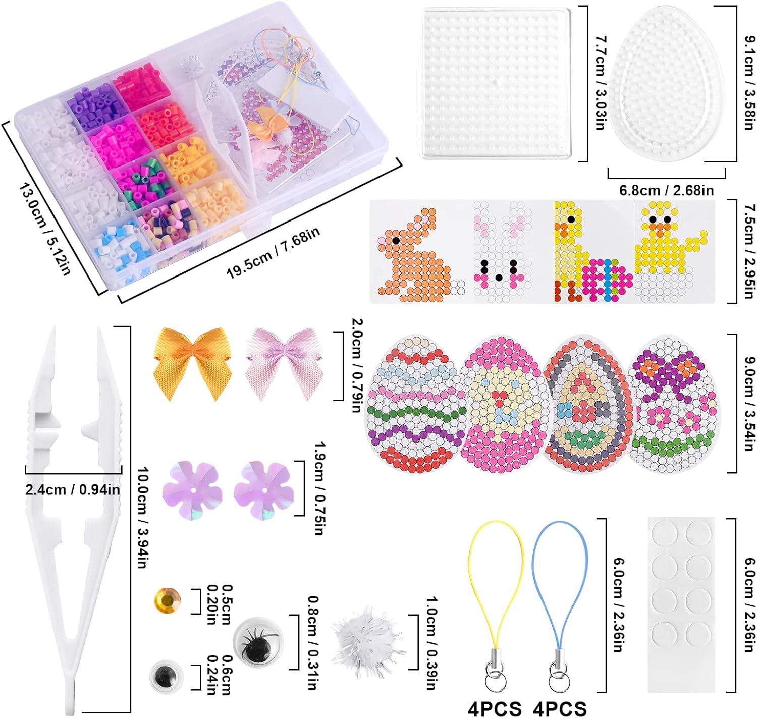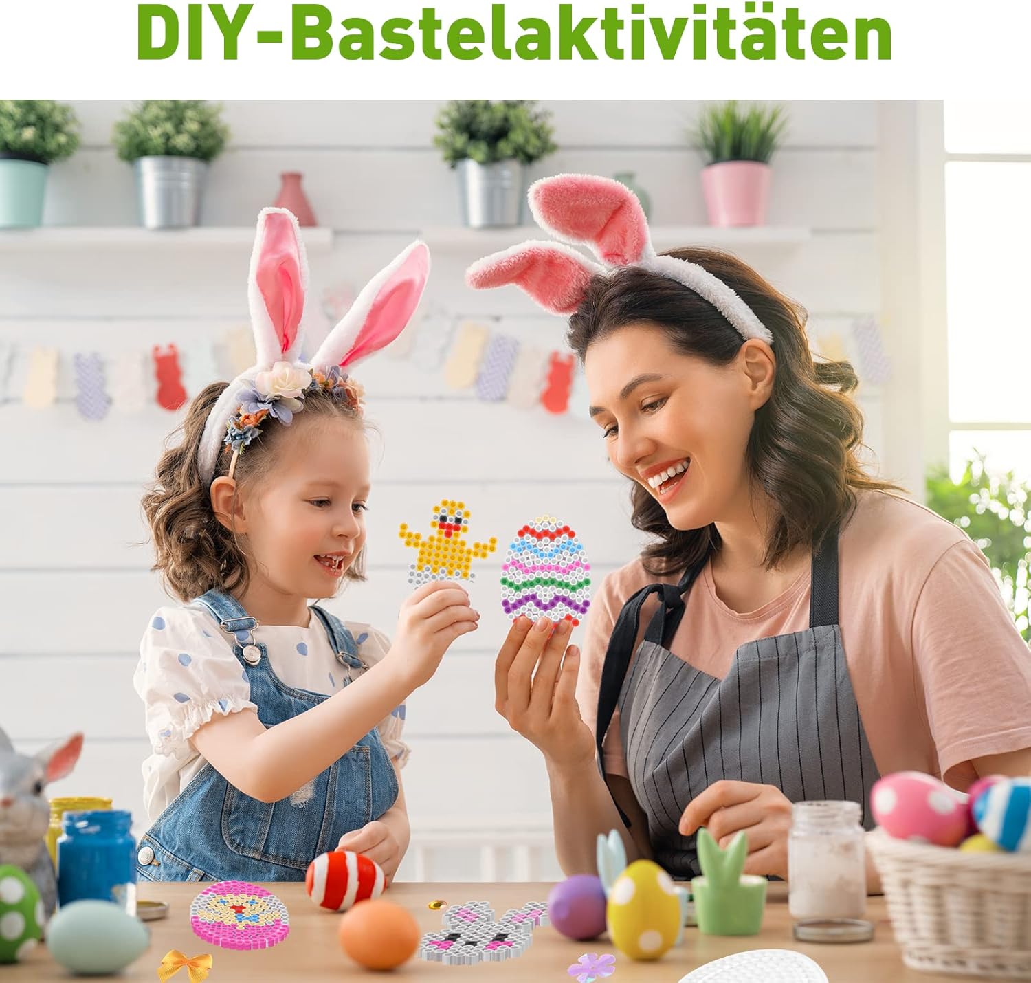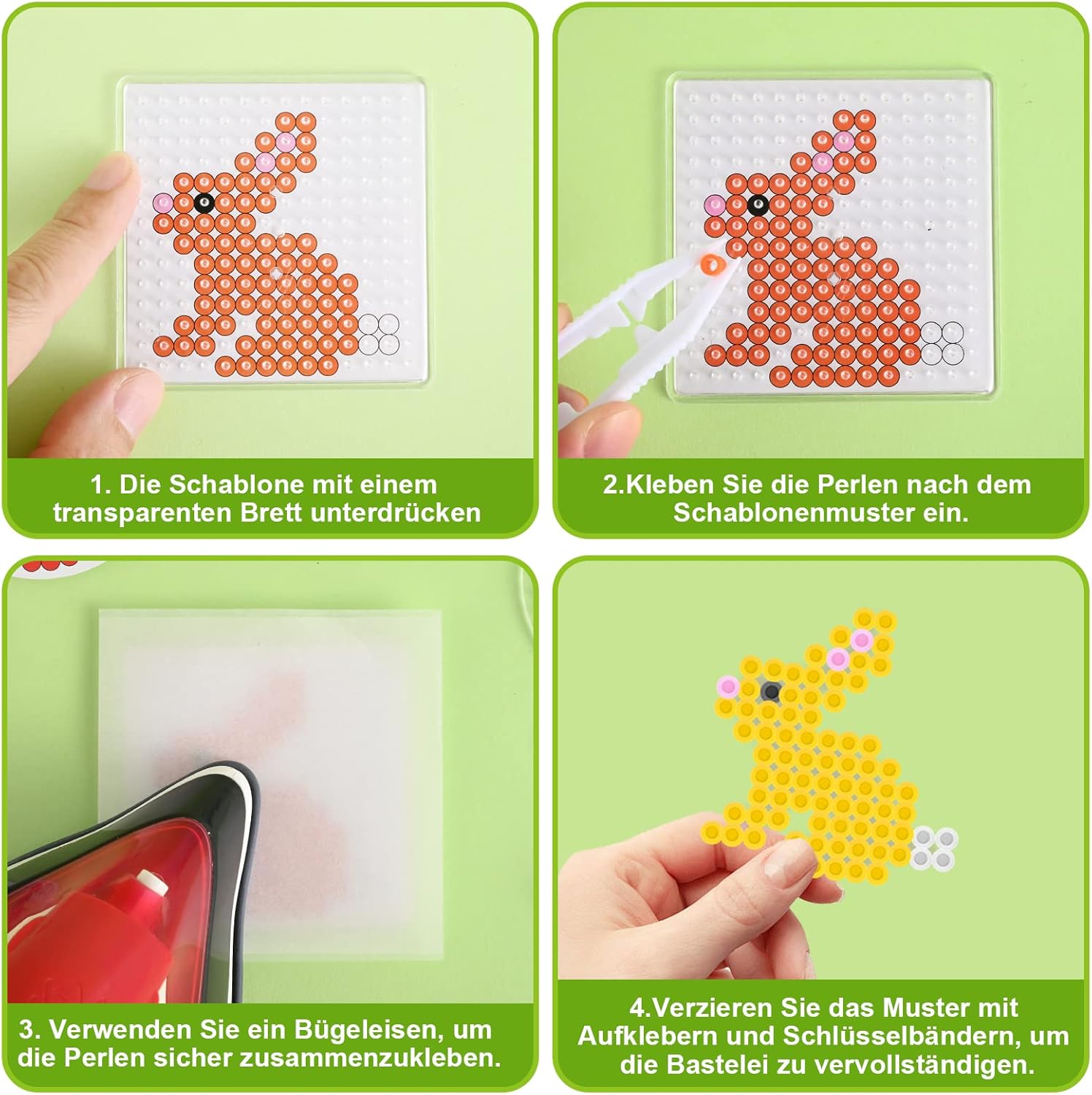 Set di piastre da stirare con perline: le piastre da stirare con perline contengono 8 colori di perline + 8 stencil con motivi + 8 cordoncini + 2 forme di piastre trasparenti + 1 pinzetta e vengono fornite con alcune piccole decorazioni. È realizzato in materiale molto sicuro e può essere utilizzato per giocare in sicurezza. Creazione fai-da-te: le perline da stiro blu scuro possono essere utilizzate per la creazione fai-da-te per sviluppare le capacità di presa e presa del tuo bambino. Utilizza il cordoncino e qualche piccola decorazione per creare un ciondolo o un portachiavi come piccolo decoro per Pasqua. Facile da usare: le perline da stiro bicolore sono molto facili da usare, posizionare lo stencil sotto una piastra trasparente, attorcigliare le perline colorate sulla piastra e coprire leggermente le perline con carta da stiro e scaldare per tenere insieme le perline. Graziosi modelli per motivi pasquali: il modello con perline da stirare contiene 8 bellissimi modelli per motivi pasquali con uova colorate, pulcini e coniglietti che puoi personalizzare con perline colorate. Questi sono tutti elementi pasquali molto classici. Regali di Pasqua per bambini: le perle da stiro color pelle sono perfette per bambini e adulti per il fai-da-te. Non sono solo una bella decorazione pasquale, ma anche un regalo pasquale ideale per bambini e amici, poiché sviluppano puzzle per bambini.