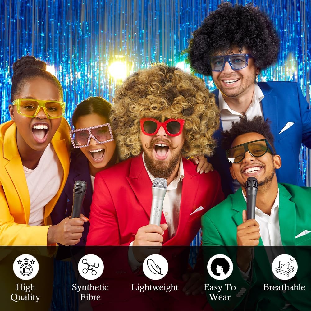 【SET PARRUCCA HIPPIE 70S/80S】Il set include: 1*parrucca afro funky, 2*retina per parrucche, adatta sia per uomini che per donne, ricrea lo stile afro degli anni '70 in un istante, senza bisogno di permanente. Indossa la tua attrezzatura da discoteca e indossa la tua parrucca per un momento pieno di divertimento. 【MATERIALE DI QUALITÀ】 I capelli della parrucca sono traspiranti, per evitare di surriscaldarti con tutti quei capelli. È realizzato in fibra sintetica di alta qualità. È un grande afro riccio; ti farà notare in mezzo alla folla. La fascia aderente è elasticizzata per facilitare il montaggio. Questa parrucca in maschera resisterà alle feste più vigorose. materiale di qualità garantisce solidità e robustezza. 【DIMENSIONE REGOLABILE】 Circonferenza della testa: 32 cm, retrattile, adatta alla maggior parte delle dimensioni della testa. Questo pacchetto mostra uno stile anni '60 e '70 adatto alla maggior parte degli adolescenti e degli adulti. 【AMPIA APPLICAZIONE】 Questo costume hippie è adatto per feste in maschera anni '60/'70/'80, adatto per adulti e bambini, importante anche per accessori da discoteca hippie, costumi da discoteca, feste hippie, feste vintage, feste di compleanno, Halloween evento a tema, un festival musicale e altri eventi. 【GRANDE REGALO】 Gli accessori hippie sono adatti per una festa hippie, una festa vintage, una festa di compleanno, un evento a tema Halloween, un festival musicale e altri eventi. Molti adolescenti e adulti apprezzano gli accessori hippie trendy e retrò e sono ottimi regali.