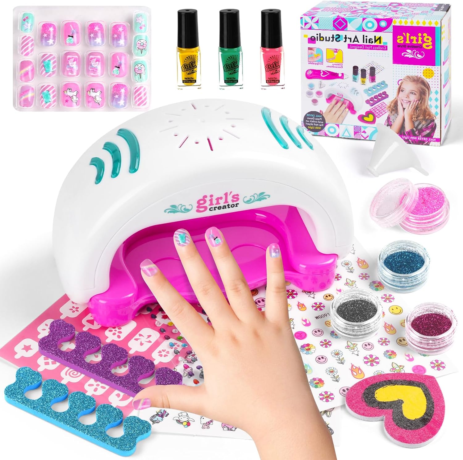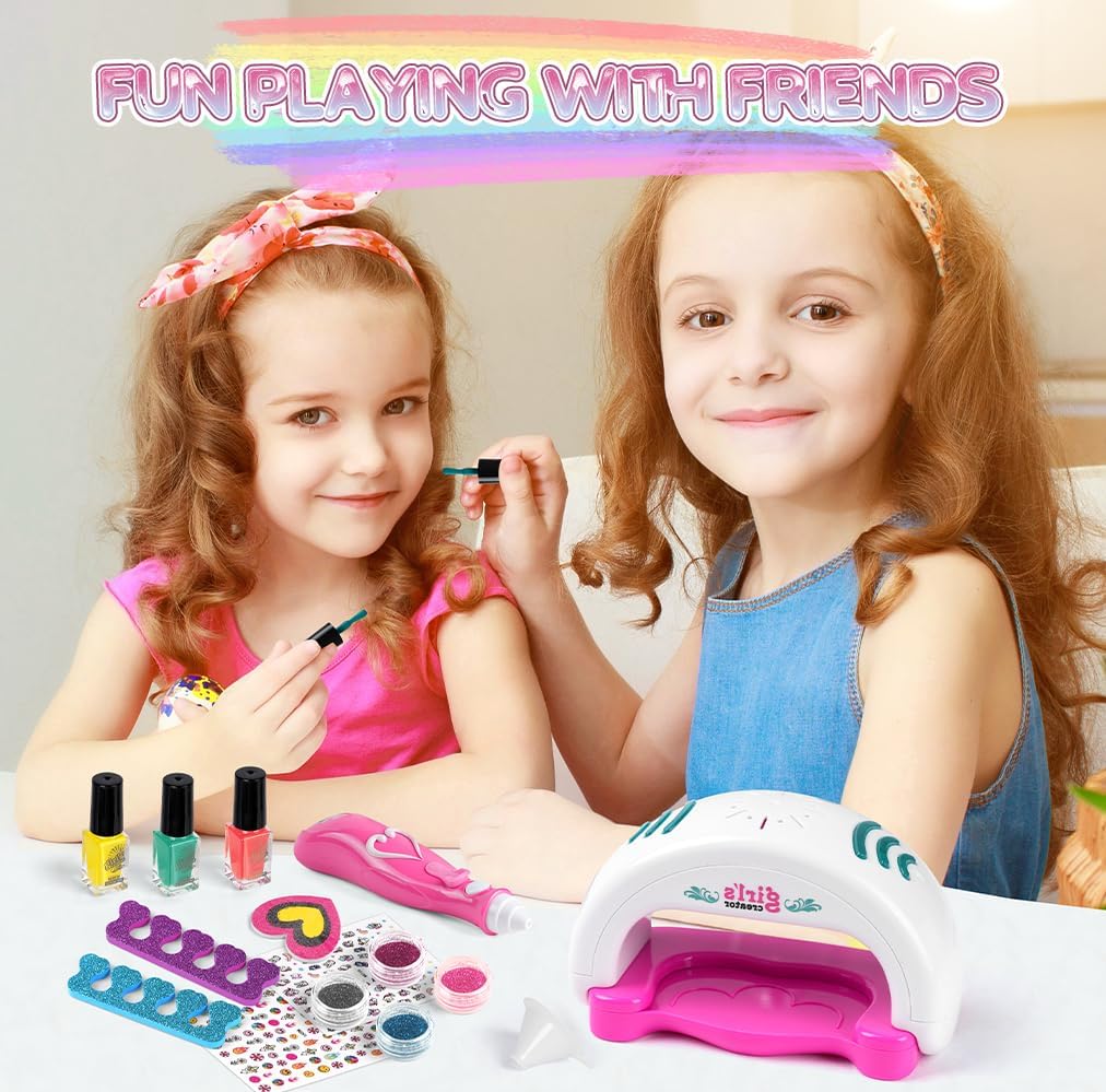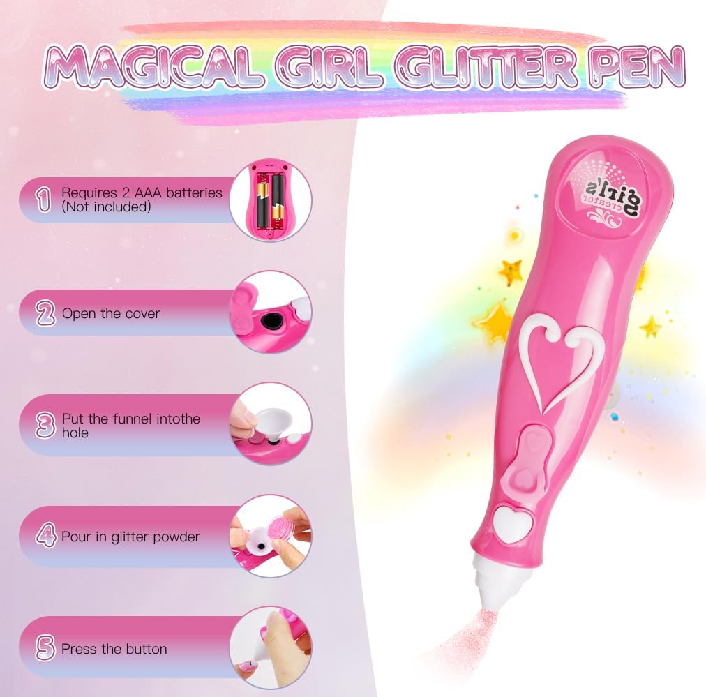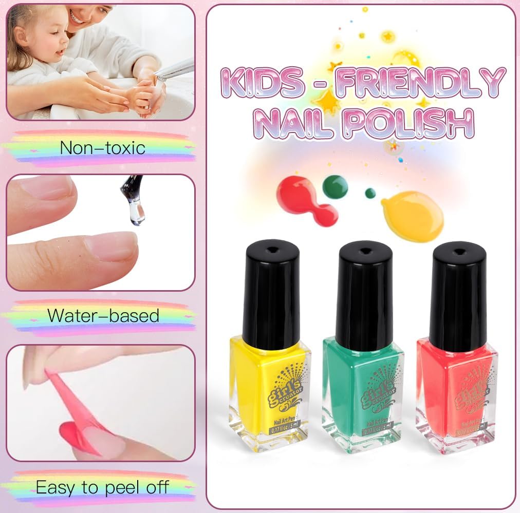 🩰KIT SMALTO PER UNGHIE PER RAGAZZE: Il nostro set manicure per bambini include: 1 * asciuga unghie, 3 * smalto per unghie, 4 * polvere glitterata, 1 * adesivo per nail art con gemme di cristallo, 20 * foglio per unghie unicorno, 2 * separatori per dita, 1 * modello per unghie, 2 * adesivi per unghie, 1 lima per unghie, 2 imbuti, 1 penna glitterata. Gli accessori per kit nail art abbondanti possono essere progettati molto di stili di nail art. 🎨SICURO E NON TOSSICO: Il nostro set di smalti per ragazze è disponibile in 3 colori con colori vivaci, sono realizzati con materiali sicuri, non tossici, facili da staccare e pulire, ad asciugatura rapida, realizzati appositamente per I bambini, perfetti per I bambini fare la propria manicure. L'asciuga unghie e la penna glitterata sono realizzati in materiale pp, robusto e durevole. 💖FACILE DA USARE: Il nostro asciuga unghie basta installare la batteria, mettere il dito sul tampone per asciugare le unghie appena sotto l'asciugacapelli, premerlo delicatamente e l'asciugatrice può iniziare a funzionare. Devi solo installare la batteria nella penna glitter, versarvi la polvere glitter con l'aiuto di un imbuto e premere il pulsante per iniziare a spruzzare la polvere. nota: L'asciugacapelli e la penna glitterata richiedono 2 batterie AAA, che devono essere acquistate da soli. 🎀SVILUPPO CREATIVITÀ E MANUALITÀ: Kit artistico per smalti per unghie per bambini, è un elegante kit di design fai-da-te per ragazze dai 5 anni in su, un gioco che non solo diverte ma stimola anche la creatività e la manualità delle bambine. Con gli smalti per unghie e polvere glitter le piccole artiste possono esprimere la loro creatività e affinare le loro abilità artistiche in modo divertente e originale. 🎁IL REGALO PERFETTO PER LE RAGAZZE: Il set di smalti per unghie è perfetto per le ragazze dai 5 ai 12 anni, regalo perfetto per natale, halloween, pasqua e feste di compleanno. I ricchi set per manicure consentono alle ragazze di sviluppare la propria estetica e creare la propria nail art.