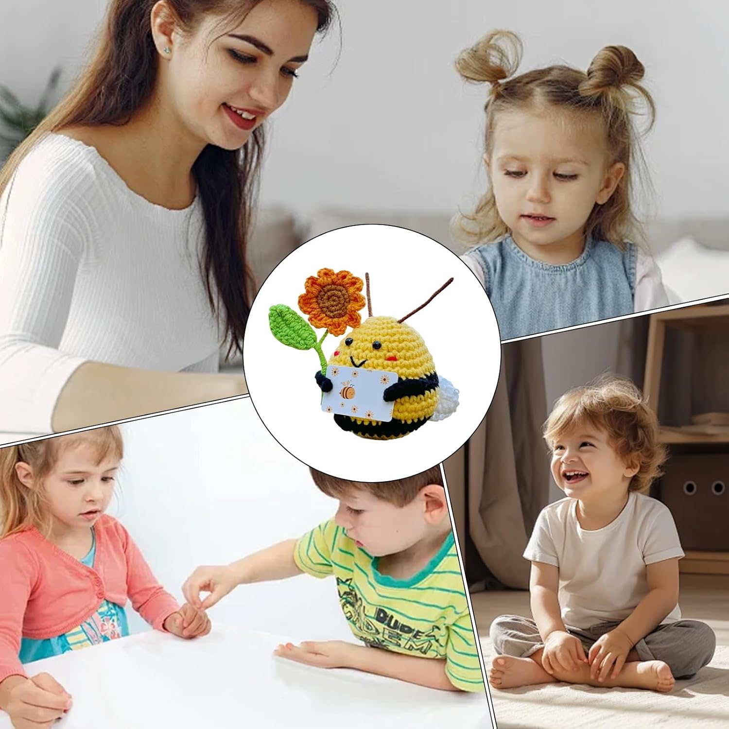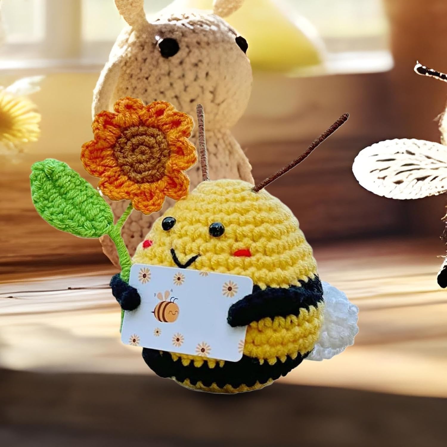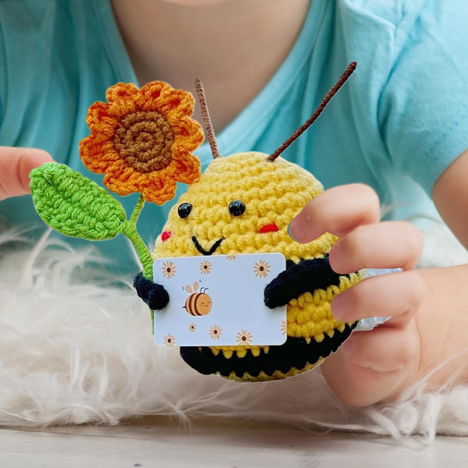 Dettagli artigianali all'uncinetto: porta calore al tuo arredamento con questa ape lavorata a mano, con pregevole fattura, qualità duratura e una sensazione morbida, perfetta per accenti domestici o sul posto di lavoro Compagno da scrivania con positività: con il suo intricato motivo ape-girasole, questa ape all'uncinetto offre vantaggi per alleviare lo stress attraverso un significato simbolico e diventa un compagno energetico allegro ed edificante, adatto a qualsiasi scrivania o comodino Ambiente migliorato: progettata per portare calore e colore, questa ape all'uncinetto arricchisce gli spazi con valore estetico-emotivo, ideale per stanze dei bambini o ambienti di consulenza come arredamento versatile Design all'uncinetto adatto ai bambini: presenta una trama sicura del filato che si sente morbida sulla pelle, offrendo comfort e durata con colori resistenti allo sbiadimento e ritenzione affidabile della forma per un divertimento a lungo termine Ottima scelta: questa ape all'uncinetto è una scelta eccellente per regalare familiari e amici, tra cui familiari, partner o amici, progettata per esprimere calore e cura migliorando gli spazi con decorazioni che supportano l'umore