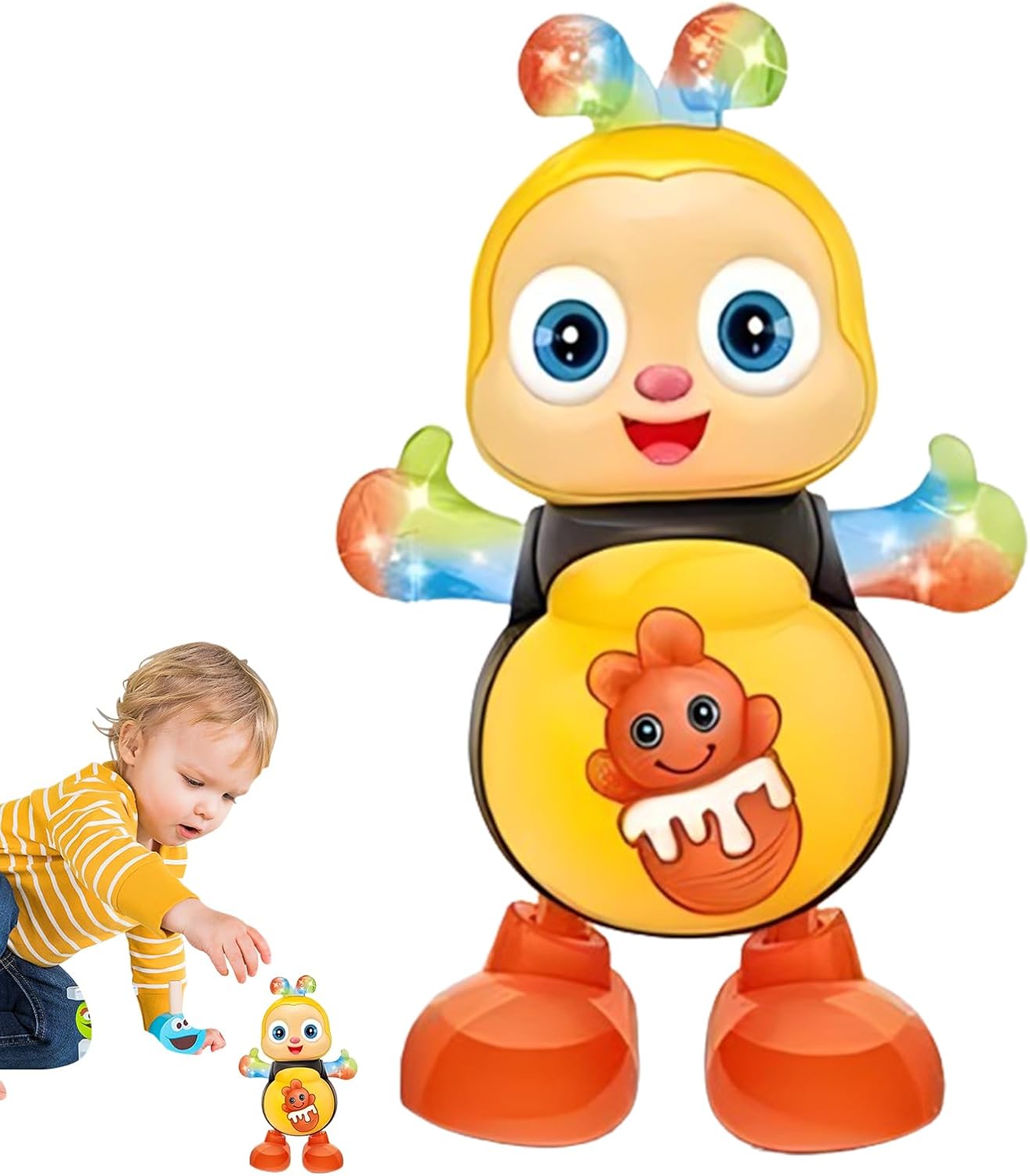 Divertimento affascinante: con la sua musica allegra e la danza accattivante, il giocattolo Motional Dancing Bee cattura facilmente l'attenzione dei bambini, offrendo una piacevole esperienza di gioco che garantisce più divertimento e intrattenimento Migliora il divertimento: il giocattolo 'ape è dotato di splendide luci che lampeggiano in sincronia con la musica e la danza, migliorando l'effetto visivo e creando un emozionante momento di gioco per i bambini Materiali sicuri: realizzato in materiale ABS di alta qualità, questo giocattolo è sicuro e inodore, garantisce un uso a lungo termine senza deformazioni o ed è resistente all'usura per un divertimento duraturo Facile per gli utenti: con un design semplice, i bambini possono facilmente comprendere il metodo di utilizzo, rdamente il giocattolo interattivo e e godersi il divertimento a musica e a danza Sviluppo stimolante: questo giocattolo 'ape , mentre insegna e si diverte, stimola l'immaginazione e la creatività e migliora il senso del ritmo e a coordinazione