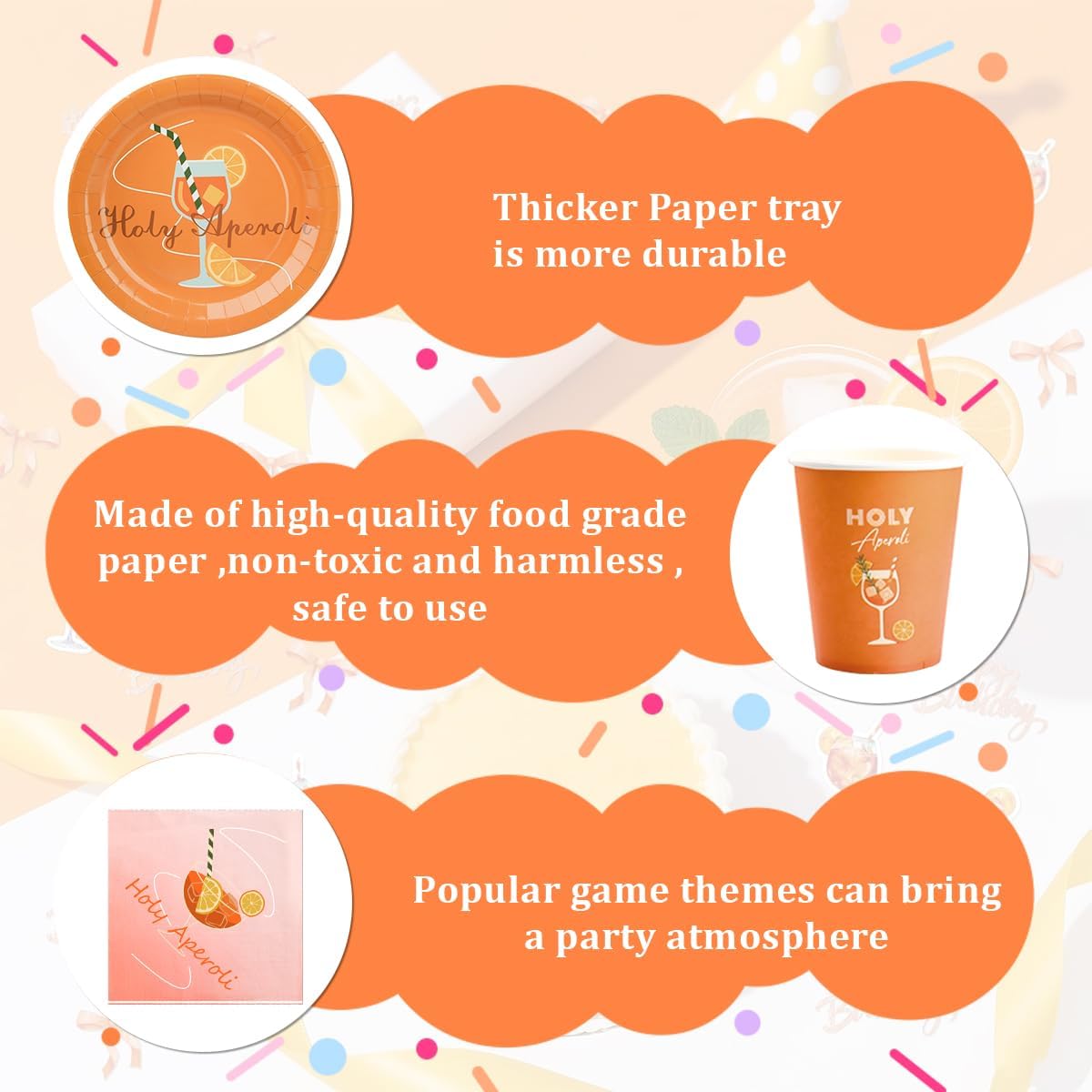 🍹【Set Completo a Tema Aperol】: Questo piatti aperol compleanno set include tutto ciò di cui hai bisogno per una festa indimenticabile: 10 piatti (7 pollici), 10 piatti (9 pollici), 10 tazze di carta, 20 tovaglioli, 10 cannucce di carta, uno striscione decorativo compleanno e una tovaglia. Perfetto per compleanni, feste a tema e celebrazioni familiari. 🍹【Design Eccellenteo】: I piatti, tazze e tovaglioli presentano motivi colorati e divertenti, con il motivo di un cocktail Aperol e la frase “Holy Aperoli” uno ogni dettaglio accuratamente scolpito, ideali per aggiungono energia e grinta alla vostra festa. e creare un'atmosfera festosa. 🍹【Materiale di qualità premium】: Aperol decorazioni feste sono realizzate in carta alimentare di alta qualitàRiutilizzabile e durevole. Questo set di stoviglie per feste è perfetto per feste di compleanno a tema Aperol, feste per i fan dei Aperol Spritz, picnic di cocktail, riunioni di compagni di classe e qualsiasi altra occasione, è la scelta migliore per la decorazione delle feste. 🍹【Prattico e Facile da Usare】: I piatti e i tazze sono leggeri e resistenti, adatti per feste e eventi. I tovaglioli e le cannucce completano il set, rendendolo perfetto per un'esperienza senza stress. Lo striscione e la tovaglia aggiungono un tocco decorativo unico. Immergete i vostri bambini e i loro amici in un mondo di festa pieno di sorprese e creatività. 🍹【Ideale per Bambini e Famiglie】: Questo set è progettato feste, compleanni e Carnevale e celebrazioni in famiglia. I motivi giocosi e i colori vivaci renderanno ogni momento speciale e indimenticabile. Sia all'interno che all'esterno, queste stoviglie per feste ben progettate possono offrire un'esperienza di compleanno indimenticabile. Perfetti per creare un’atmosfera festosa a tema aperitivo italiano.