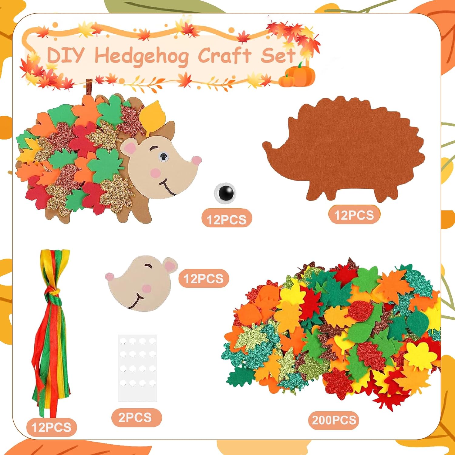 Set fai da te autunnale: il set di ricci in feltro contiene 12 corpi di riccio, 12 facce di riccio, 12 occhi oscillanti autoadesivi, 200 foglie autunnali, 12 nastri e 2 fogli di punti adesivi biadesivi. I bambini possono dare libero sfogo alla loro creatività. Tuta in schiuma autoadesiva fatta a mano: set fai da te per bambini in materiale EVA e ogni accessorio può essere autoadesivo. Puoi incollare queste foglie,occhi di riccio e il viso sul corpo del riccio per creare una dolce decorazione riccio. Decorazione fai da te: il set di ricci è perfetto per i bambini più piccoli, è colorato, il che aiuta i bambini a percepire i colori e i bambini possono sfruttare la loro creatività per creare bellissime decorazioni autunnali. Facile da incollare e staccare: staccare la pellicola sopra le foglie, incollarla sullo stencil in gomma espansa del corpo del riccio secondo il tuo stile preferito e indossala con corde colorate per decorare la tua casa. Splendido set fai da te per bambini: questo set di ricci è adatto per attività familiari. Puoi farlo con bambini e amici. Può essere utilizzato anche come decorazione per la tua festa, adatto per l'autunno, il Ringraziamento e Natale.