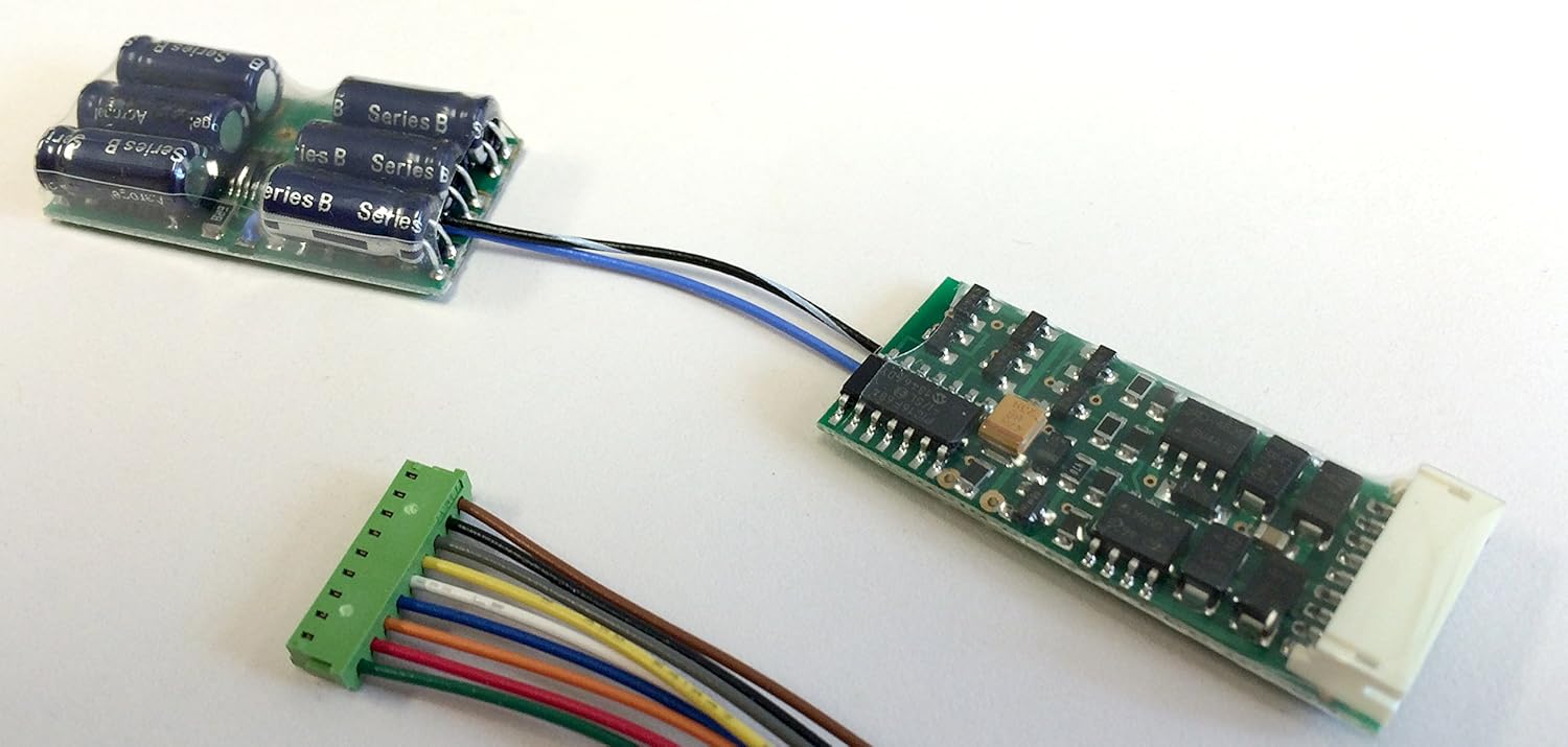 Connessione multiprotocollo: Supporta DC, DCC, Motorola con riconoscimento automatico del formato, compatibile con Railcom Regolazione di potenza: Offre 14, 27, 28 o 128 livelli di marcia, adatto anche per motori di ancoraggio a campana Uscite per luci e funzioni: 2 uscite per luci dipendenti dalla direzione e 2 uscite funzionali con molte funzioni Interfaccia SUSI e collegamento Powercap: Permette una facile connessione e integrazione con altri dispositivi Dimensioni ridotte: Con dimensioni di soli 24,0 mm x 14,0 mm x 2,1 mm, è facile da installare in spazi ristretti